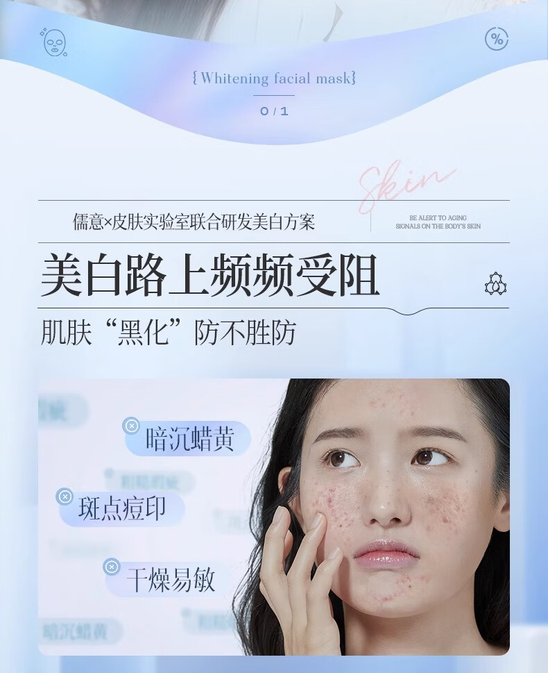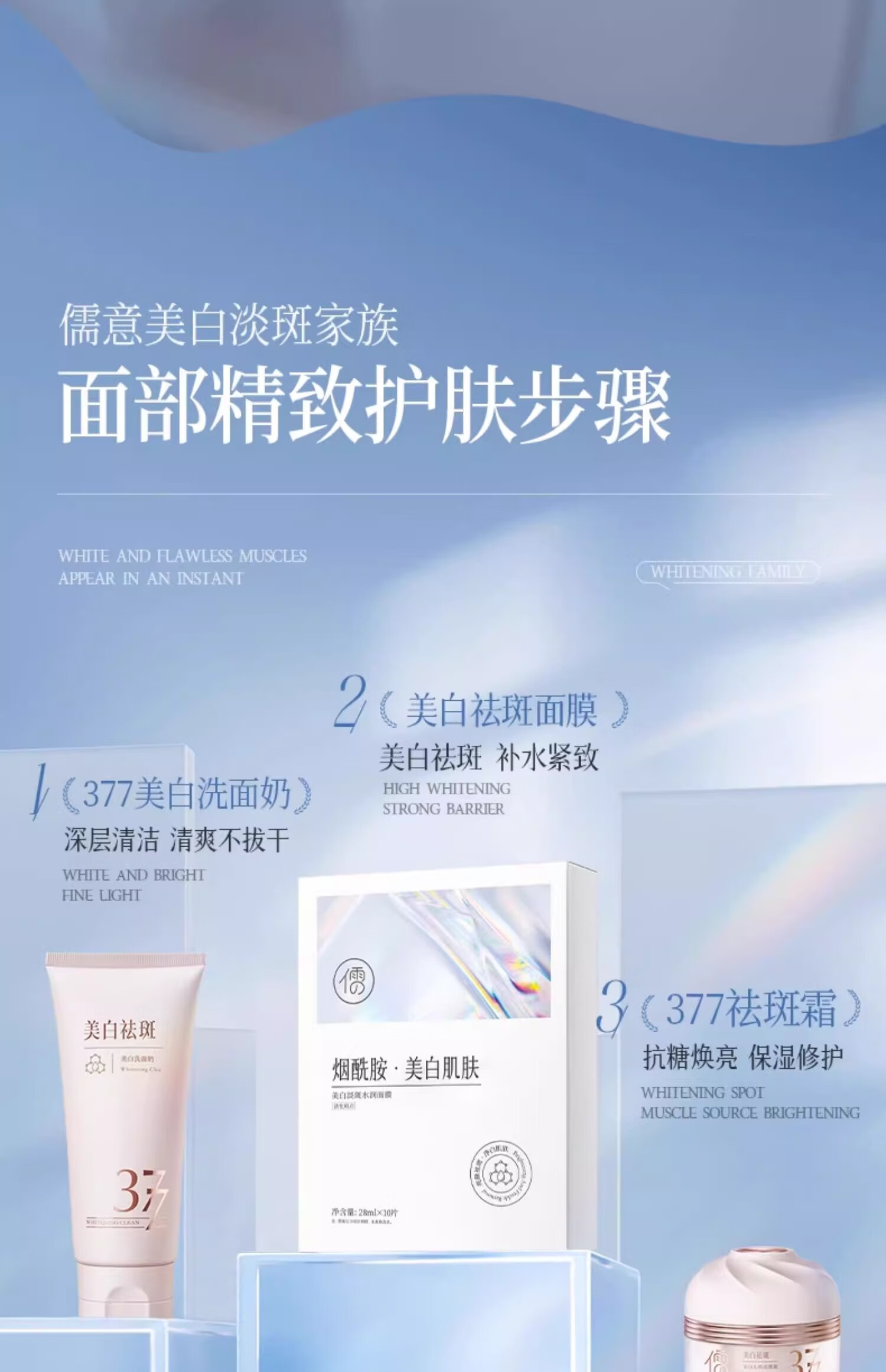 儒意377美白补水面膜淡斑提亮肤色女男士抗皱紧致衰男女士敏感肌 【加强美白】377补水面膜24条