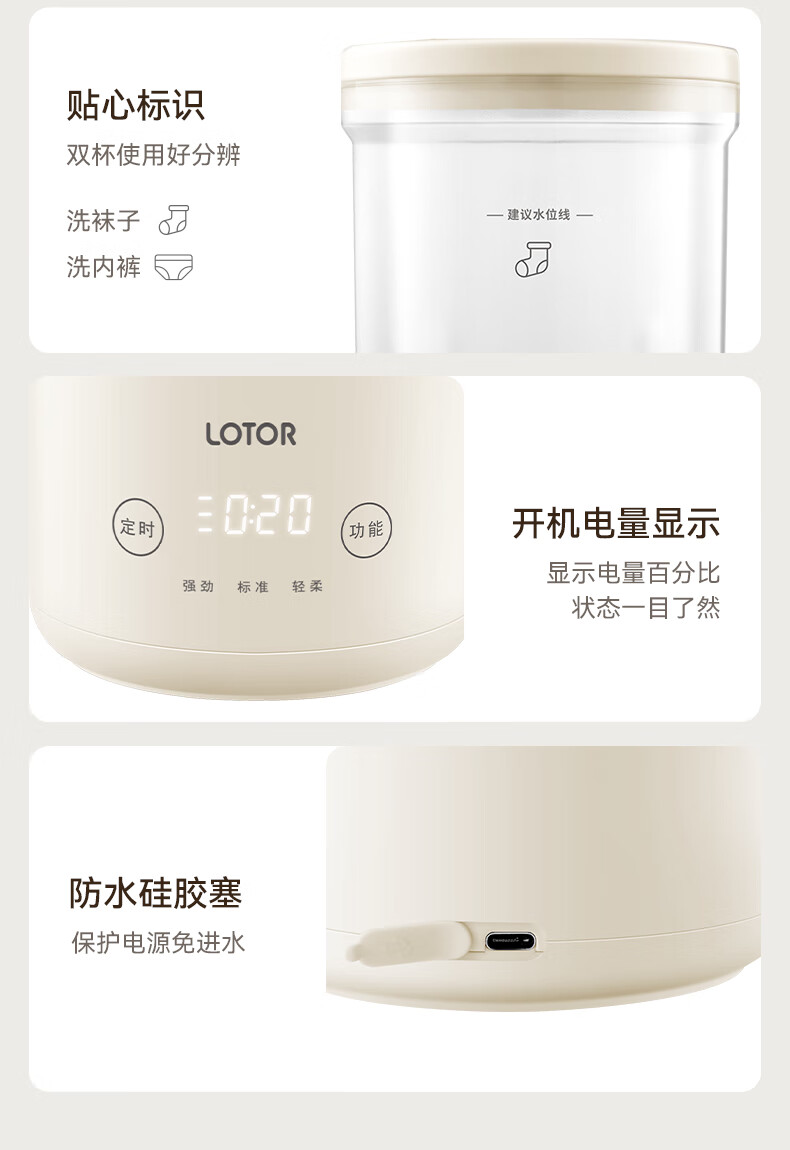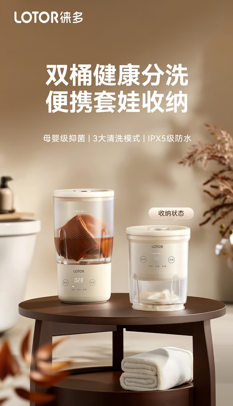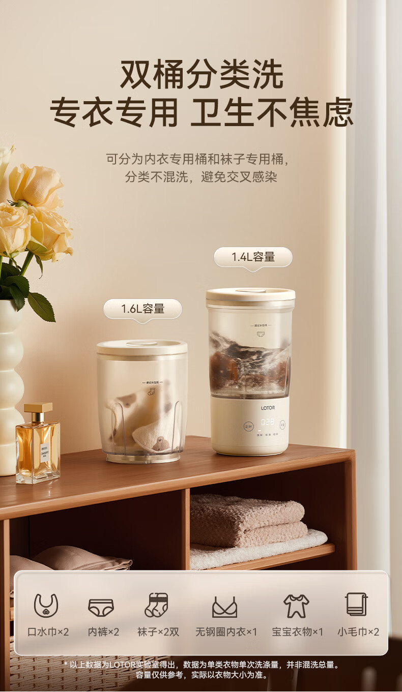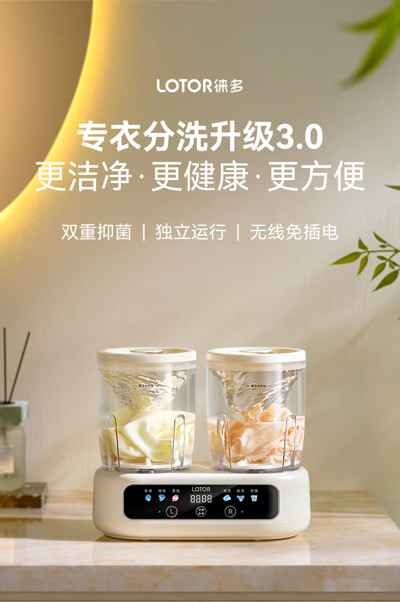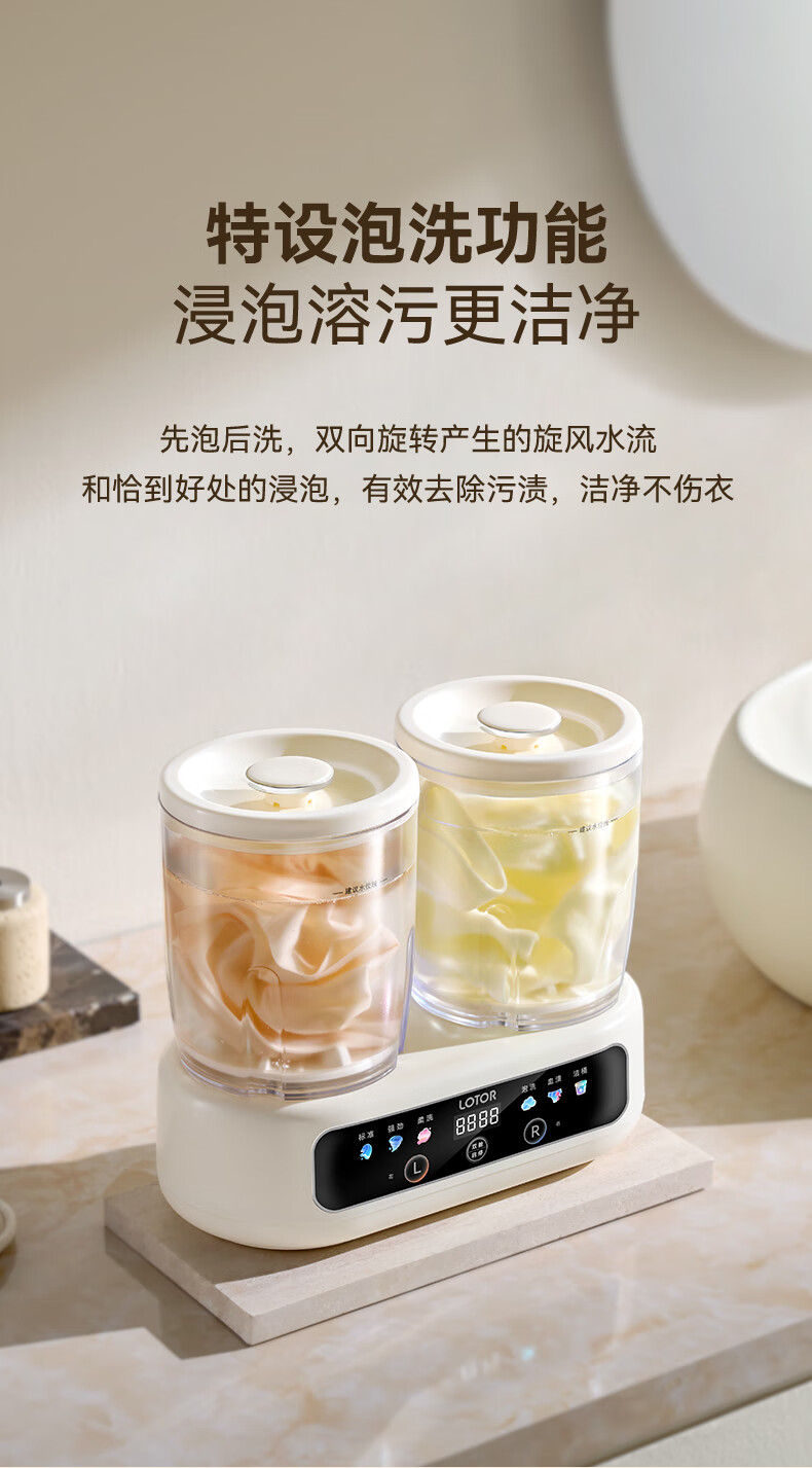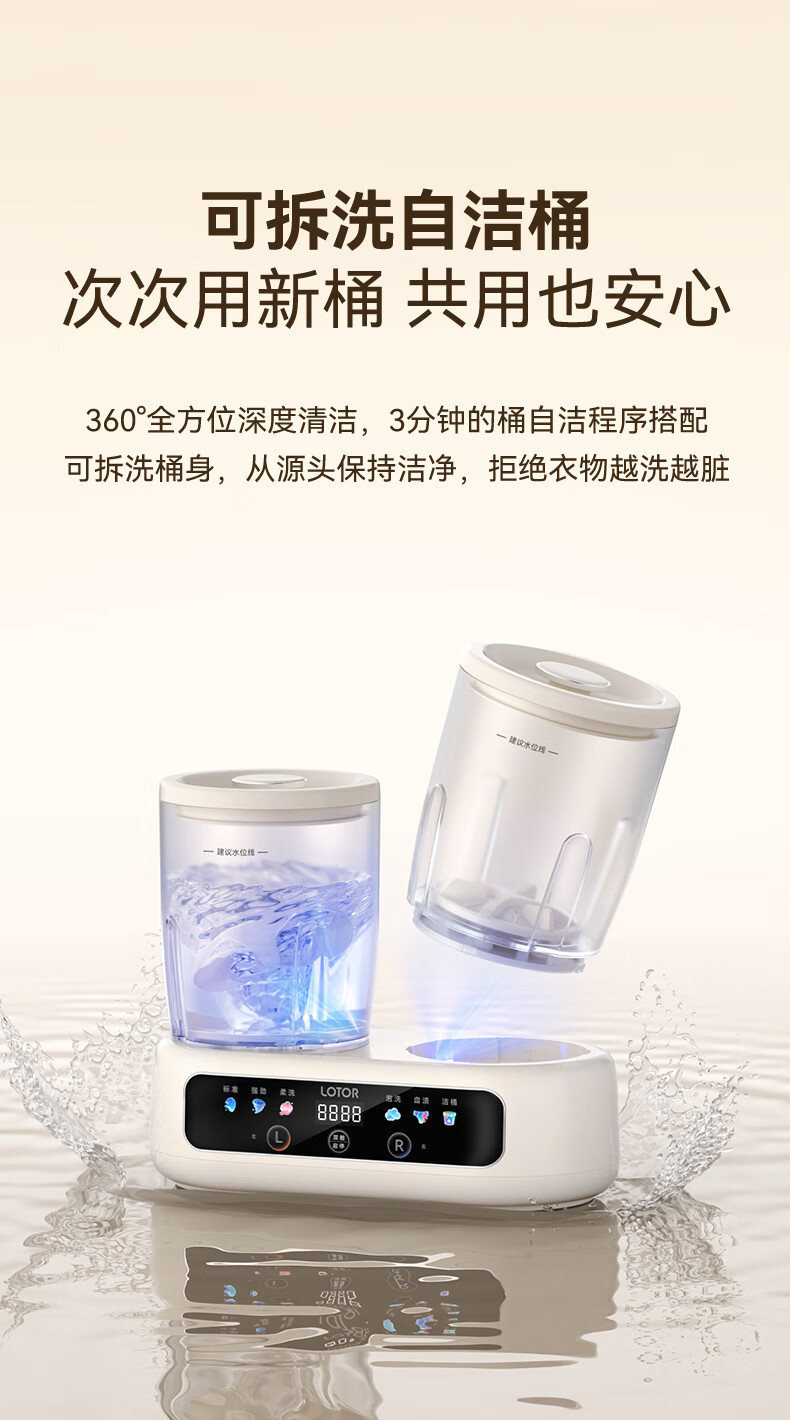 LOTOR徕多内衣洗衣杯 迷你洗衣机小型折叠洗衣机内裤洗衣机半自动懒人洗衣机宿舍便携式清洗机洗袜子机 分桶不串染+无线便携【双桶】