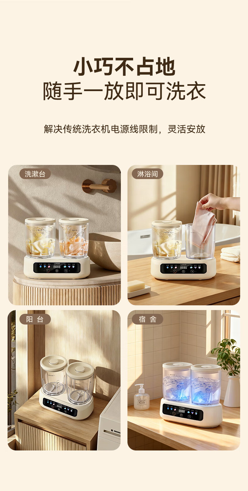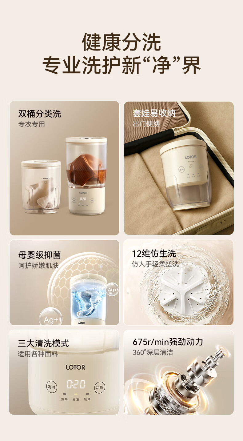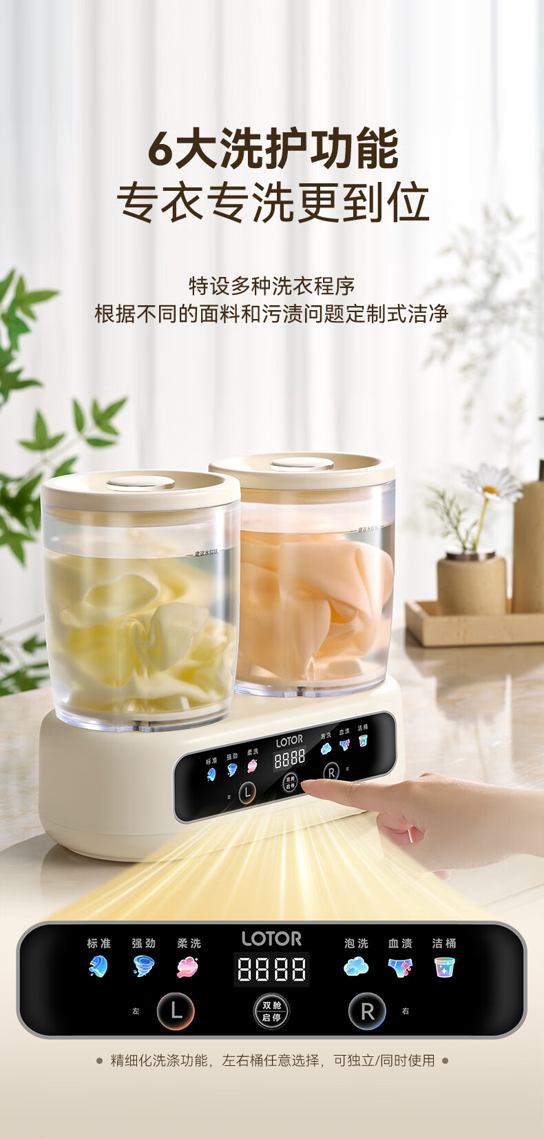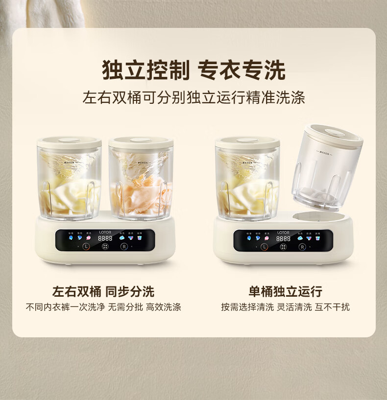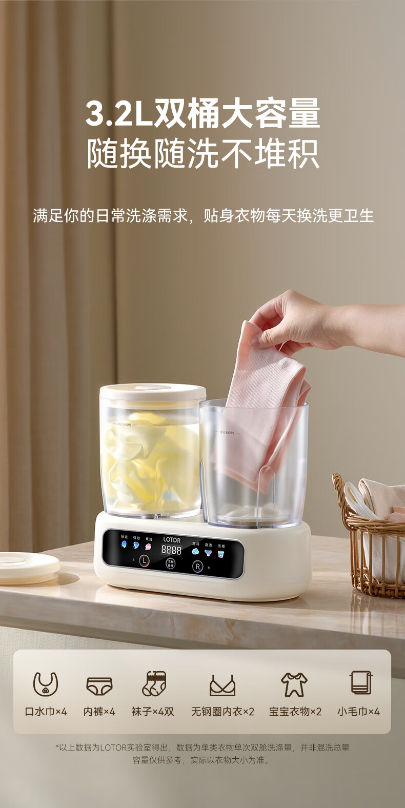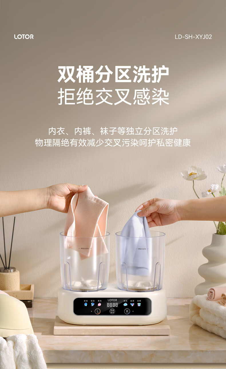 LOTOR徕多内衣洗衣杯 迷你洗衣机小型折叠洗衣机内裤洗衣机半自动懒人洗衣机宿舍便携式清洗机洗袜子机 分桶不串染+无线便携【双桶】