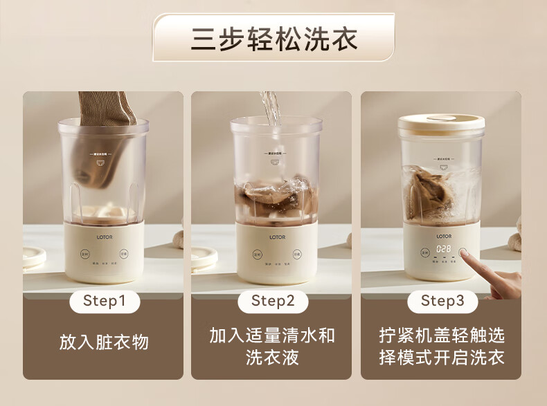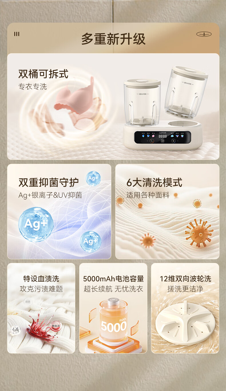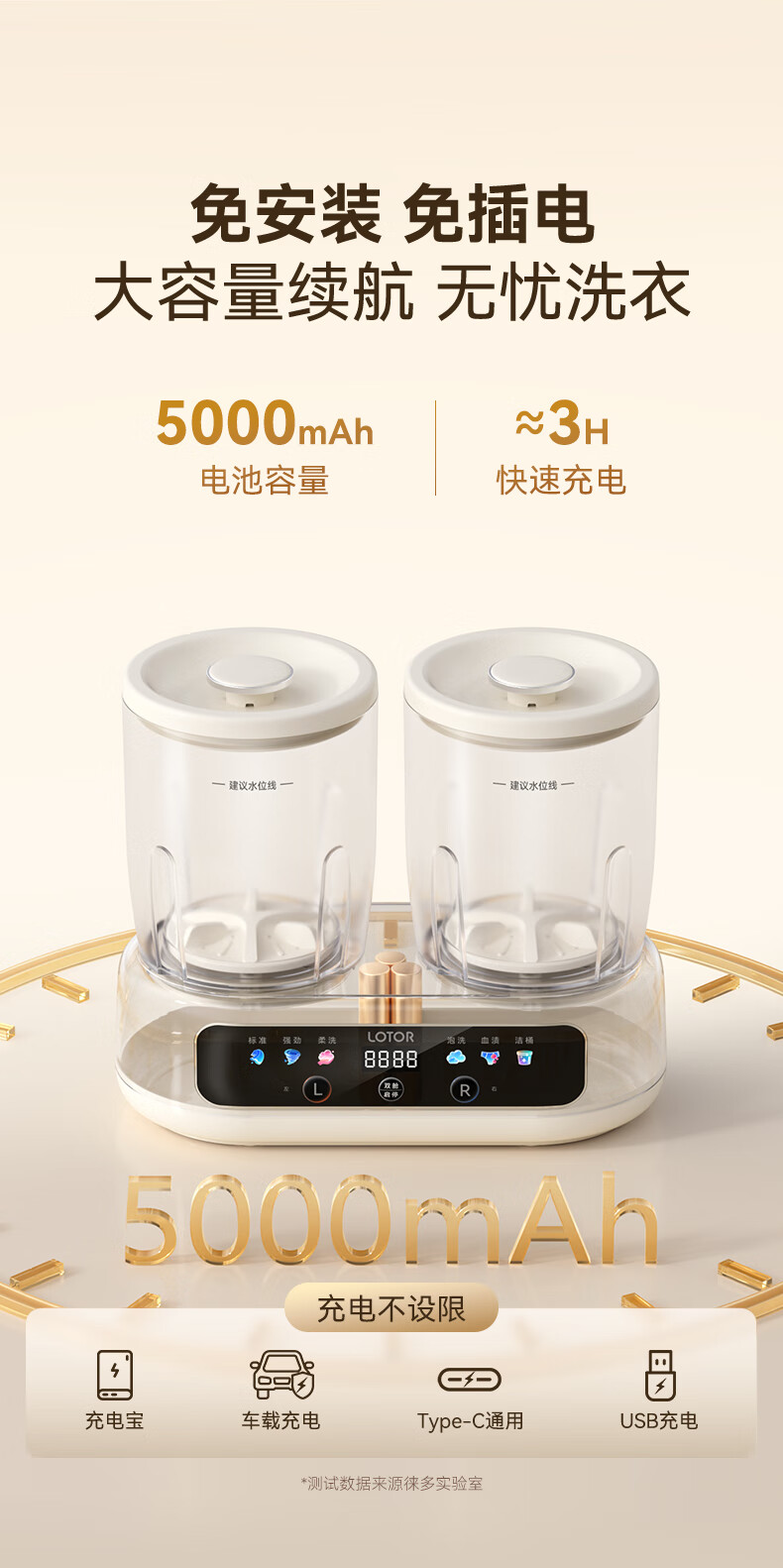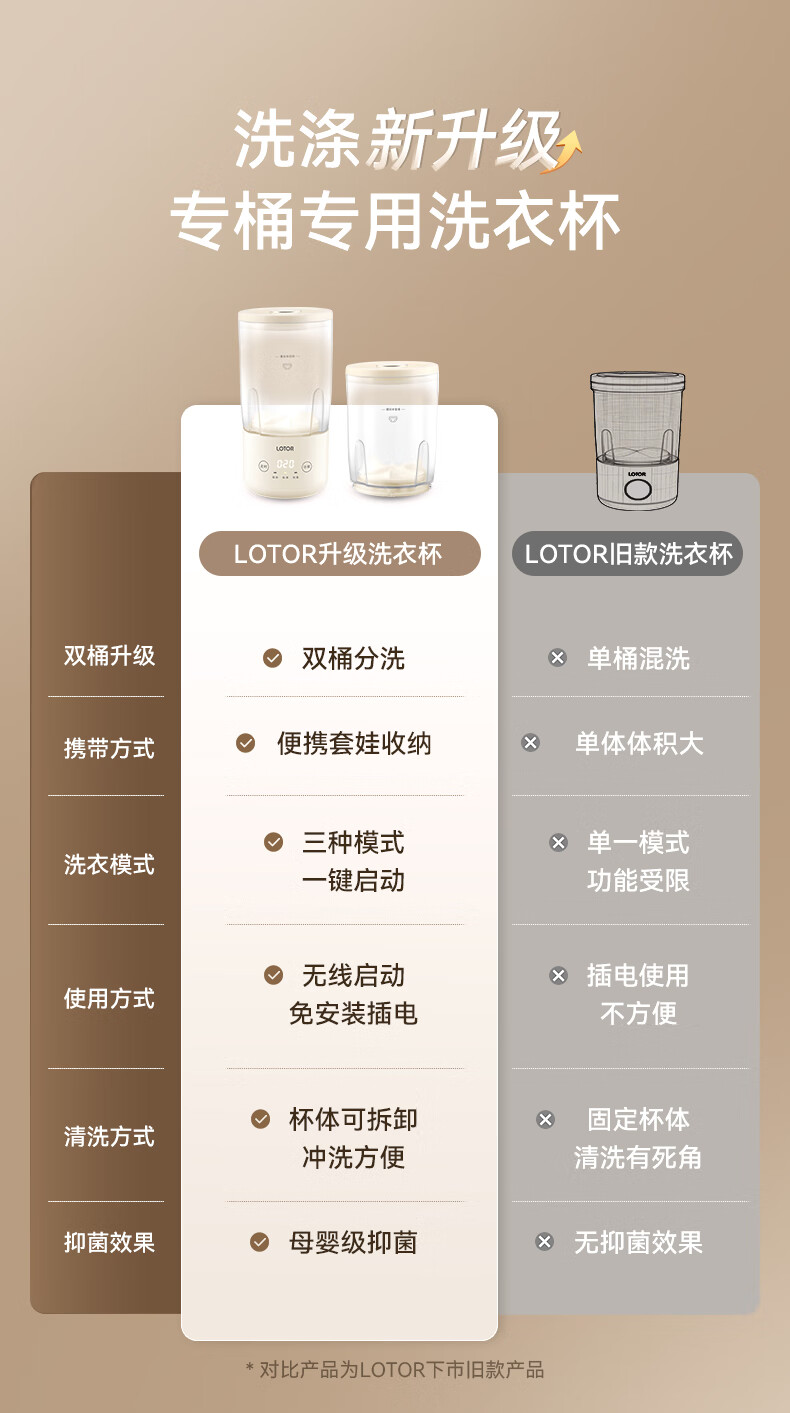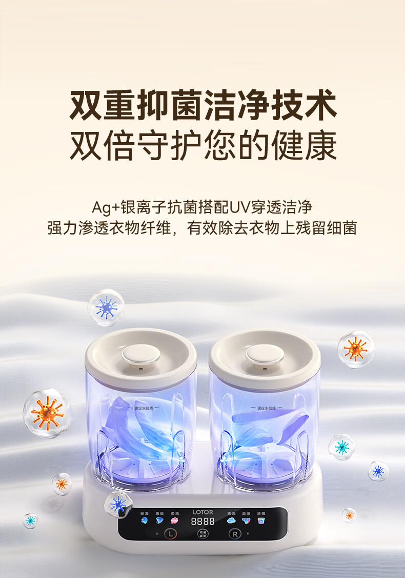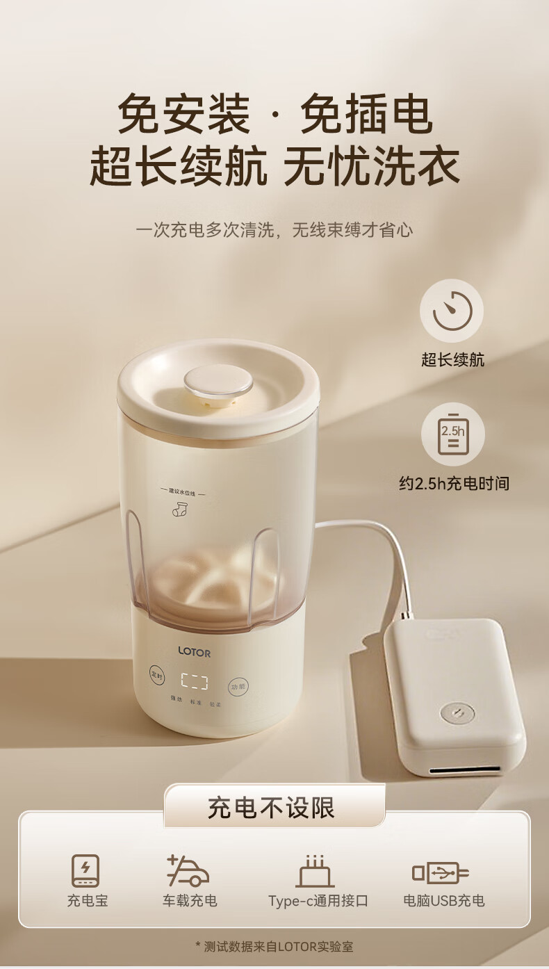 LOTOR徕多内衣洗衣杯 迷你洗衣机小型折叠洗衣机内裤洗衣机半自动懒人洗衣机宿舍便携式清洗机洗袜子机 分桶不串染+无线便携【双桶】