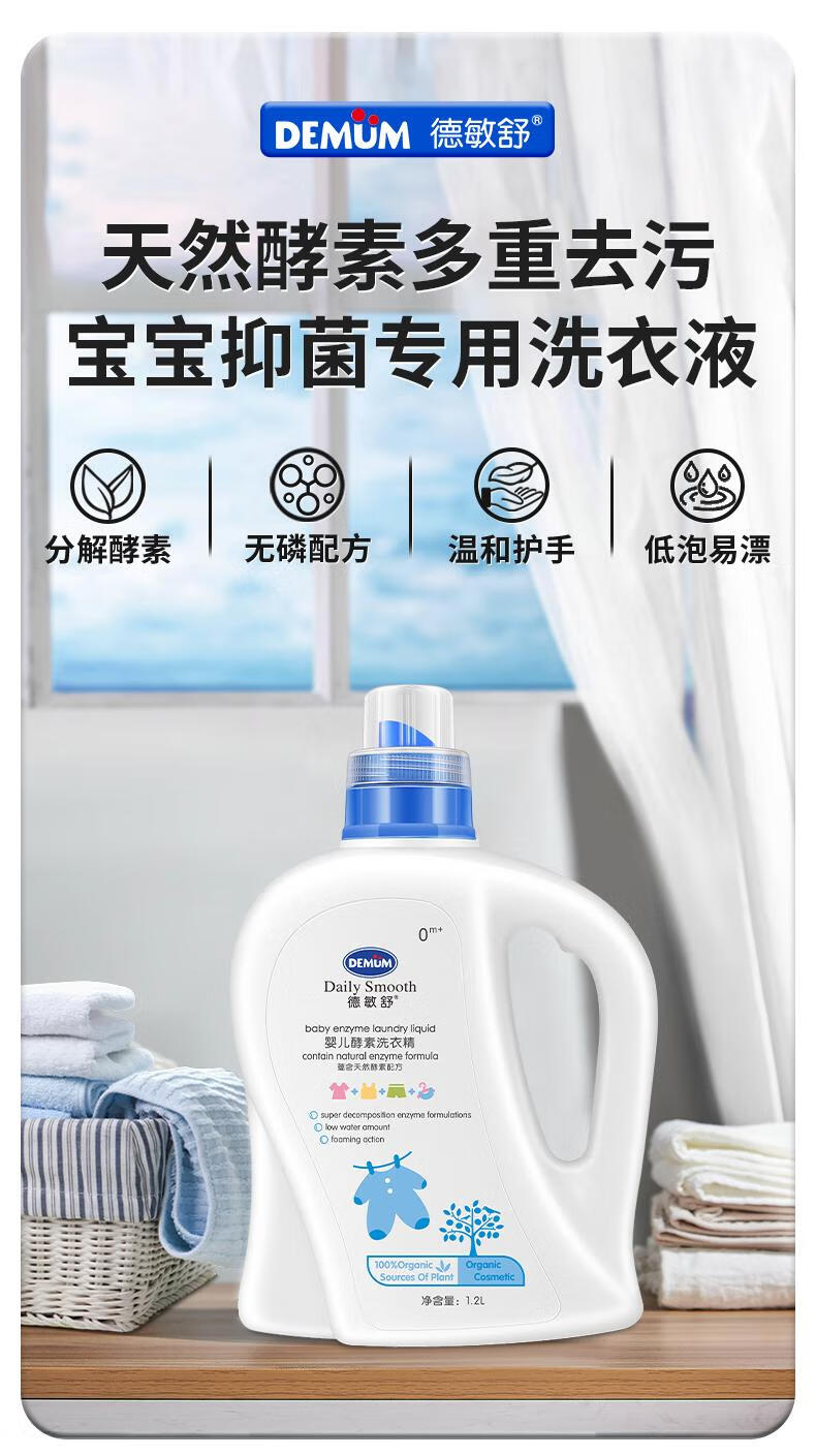 德敏舒婴儿洗衣液儿童宝宝 酵素去污抑菌除螨 新生儿洗衣皂液 植物清香 【到手5瓶】洗衣精1200ml *3