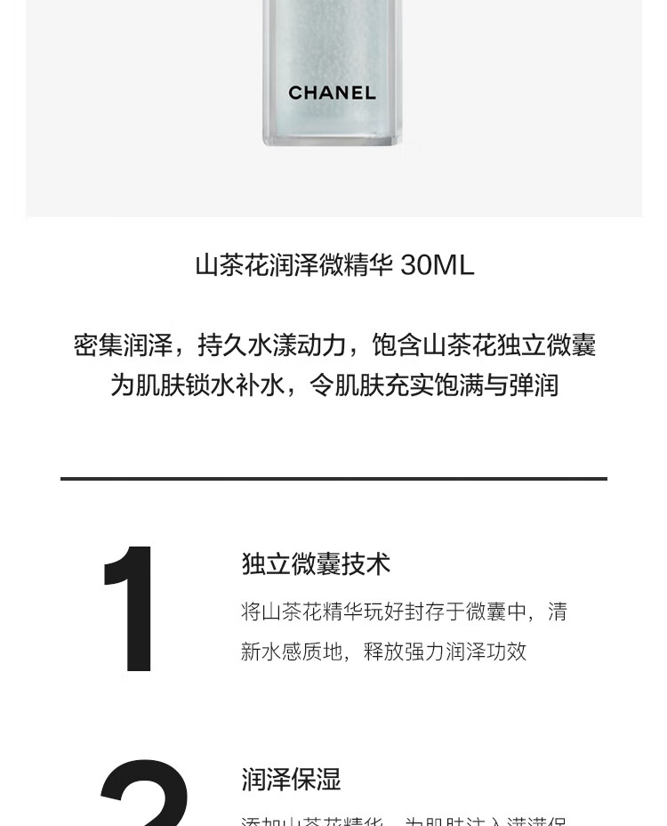 香奈儿(Chanel)山茶花保湿护肤2件套(润泽精华水+润泽乳液+山茶花洁面小样2支)