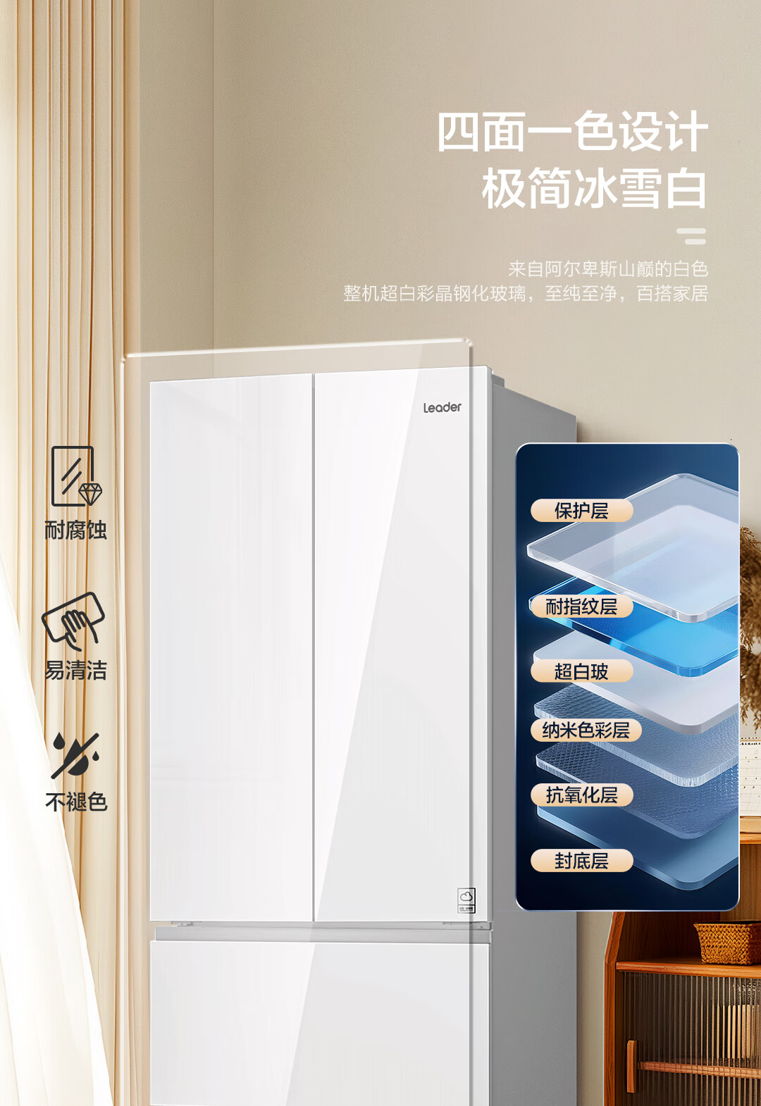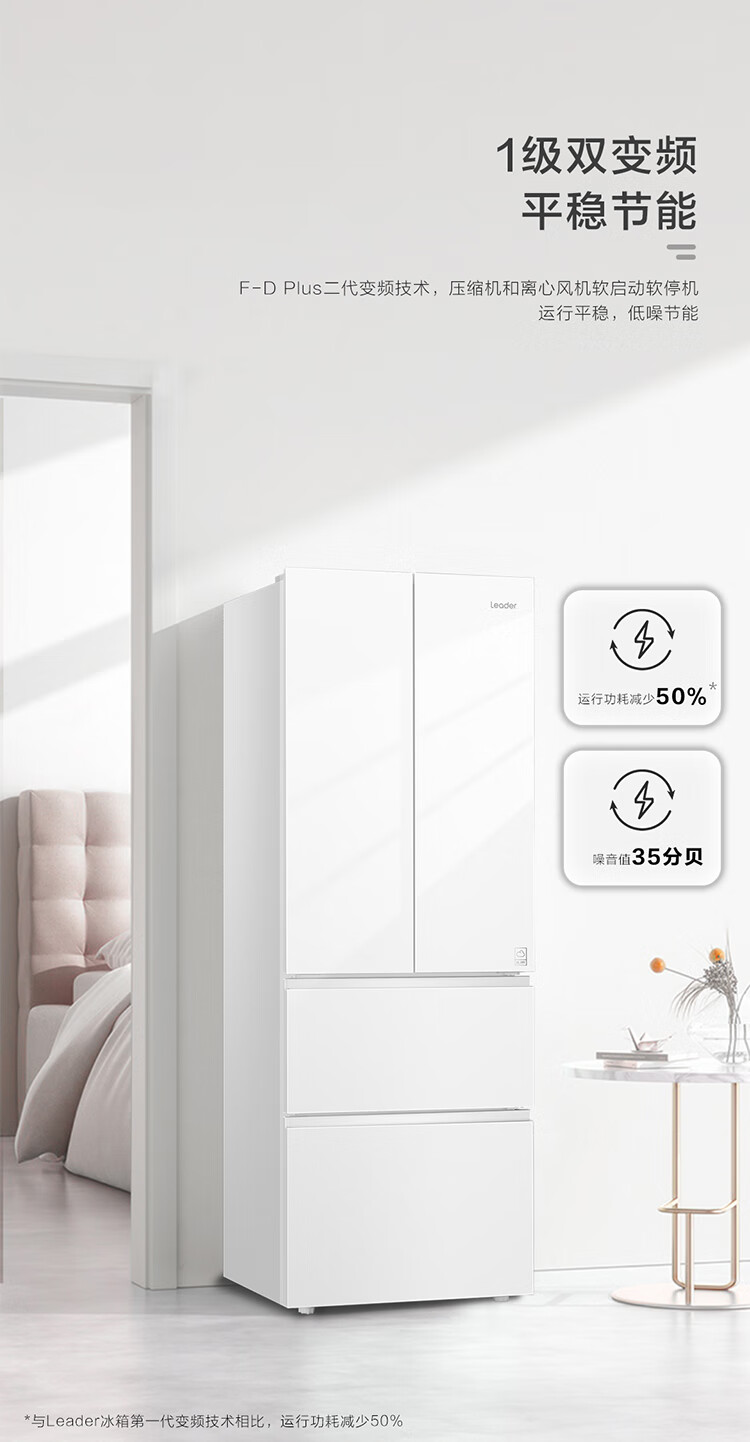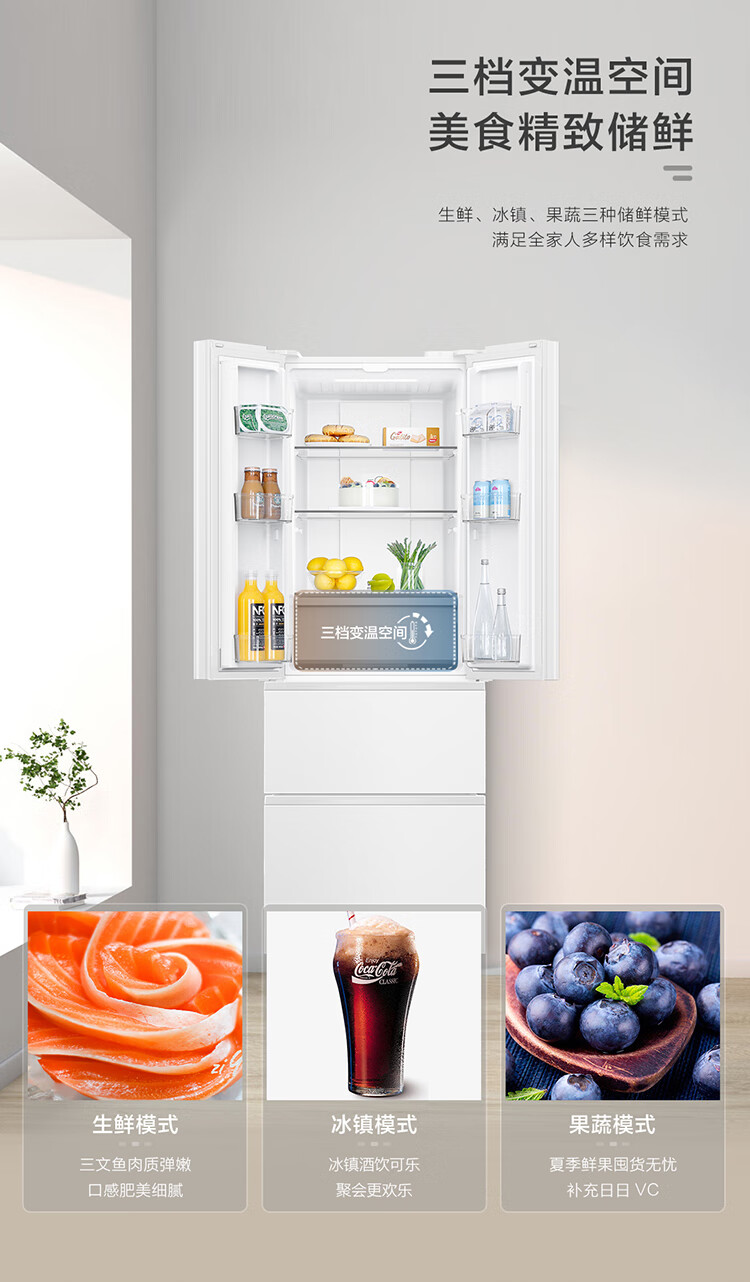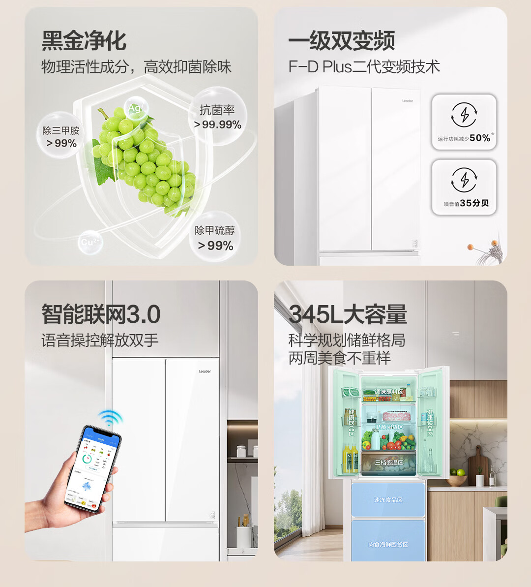 海尔(Haier)冰箱345升法式多门双开门四门一级能效双变频风冷无霜黑金抗菌三档变温超薄家用冰箱国家补贴统帅 345L冰雪白丨彩晶玻璃丨三档变温丨黑金净化