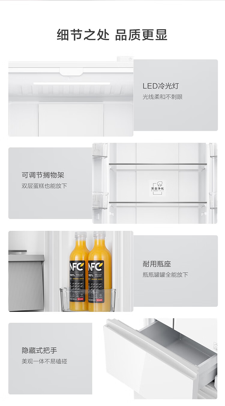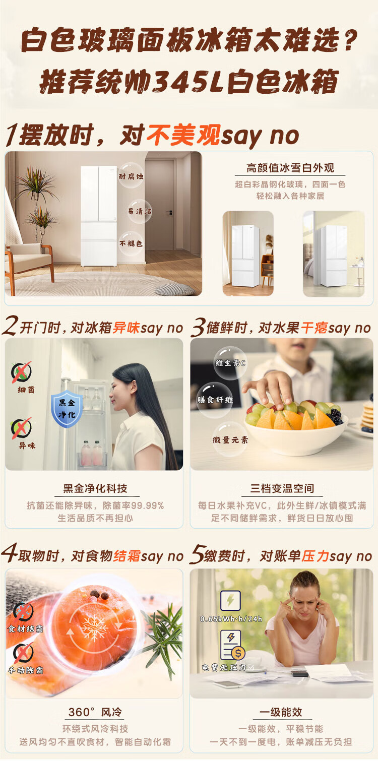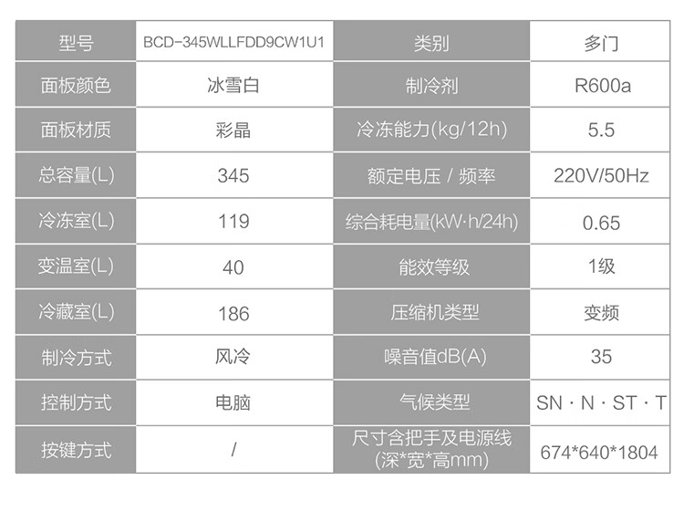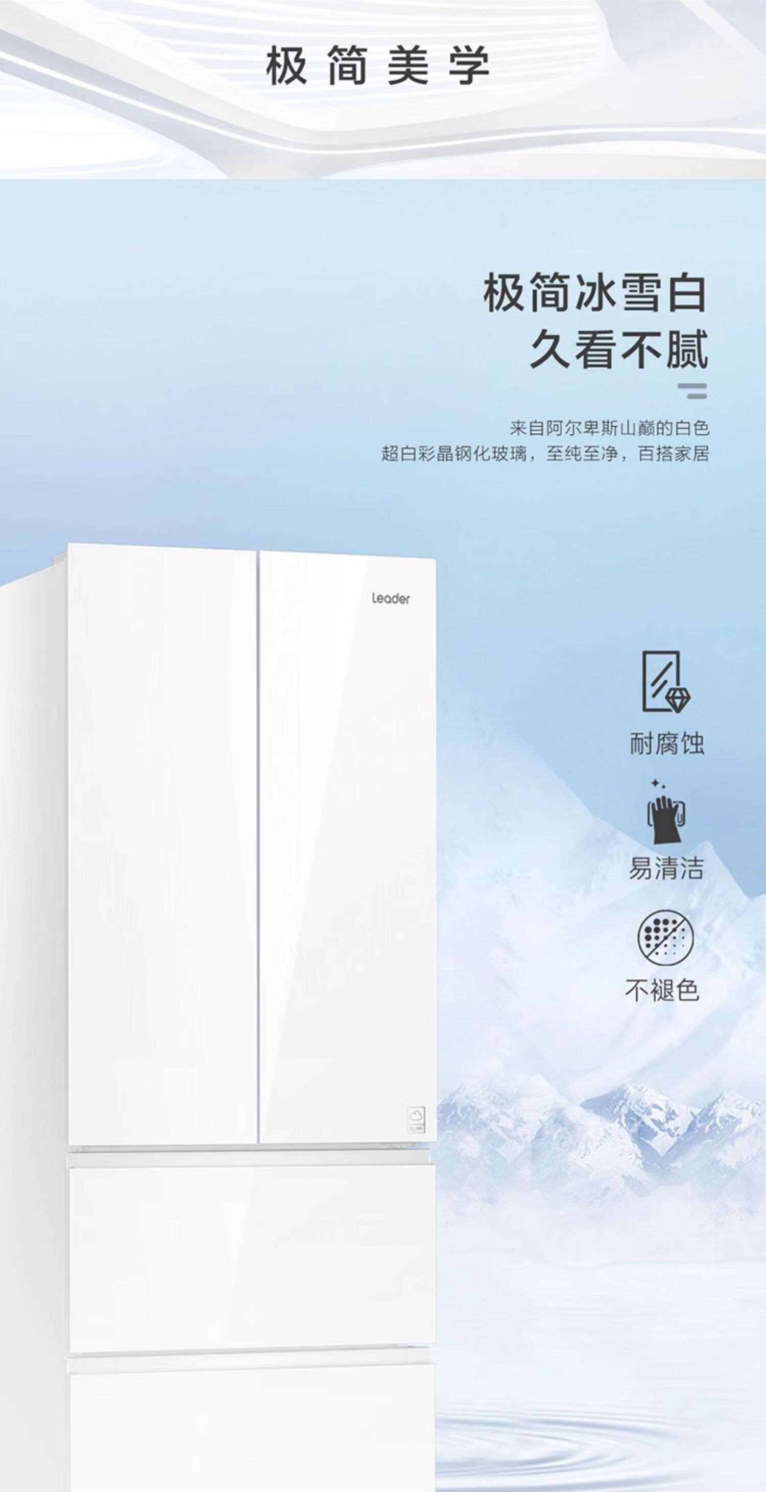 海尔(Haier)冰箱345升法式多门双开门四门一级能效双变频风冷无霜黑金抗菌三档变温超薄家用冰箱国家补贴统帅 345L冰雪白丨彩晶玻璃丨三档变温丨黑金净化