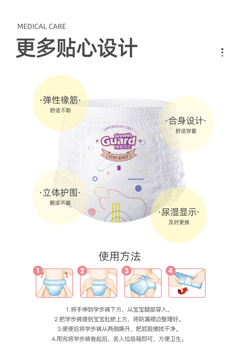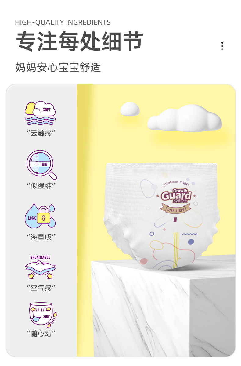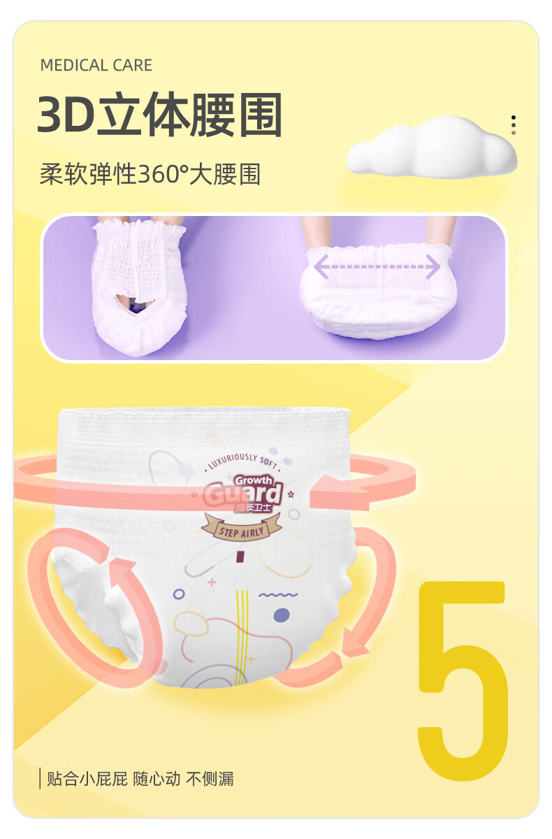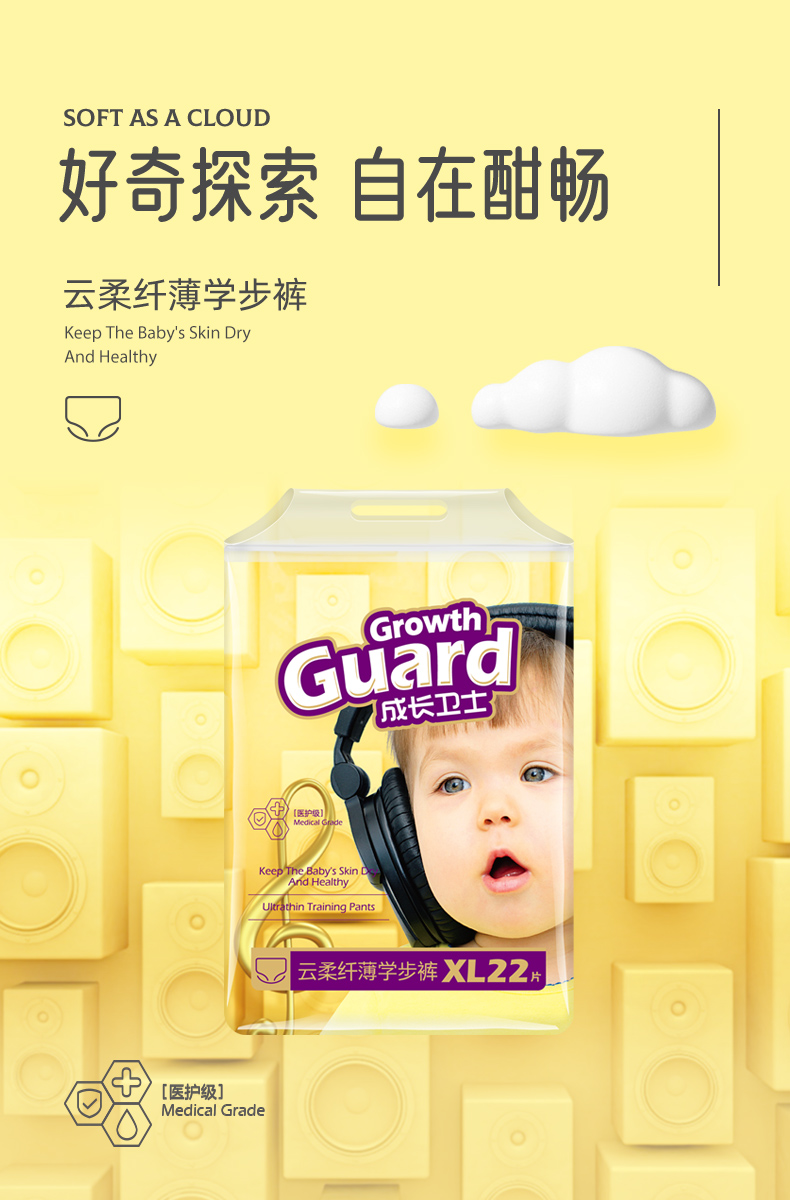 成长卫士云柔纤薄学步裤 婴儿拉拉裤 超薄透气干爽男女宝宝新生儿尿不湿 XXL码60片 (22-28斤) 拉拉裤