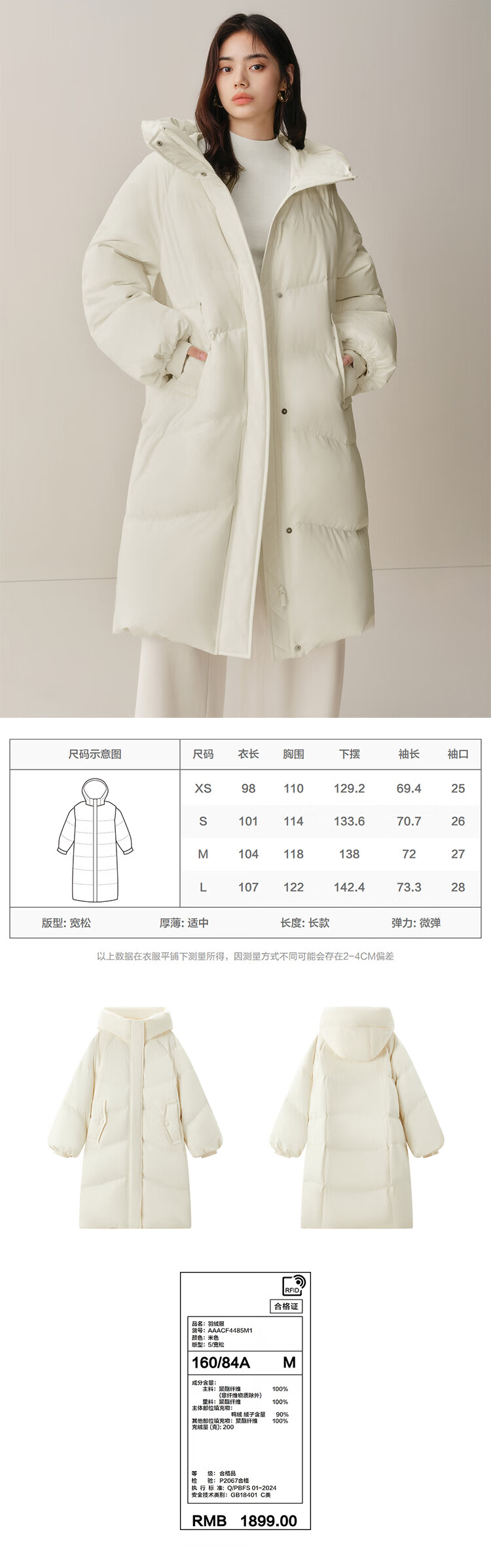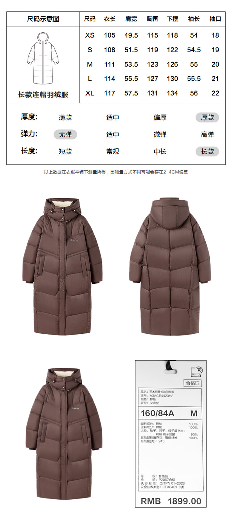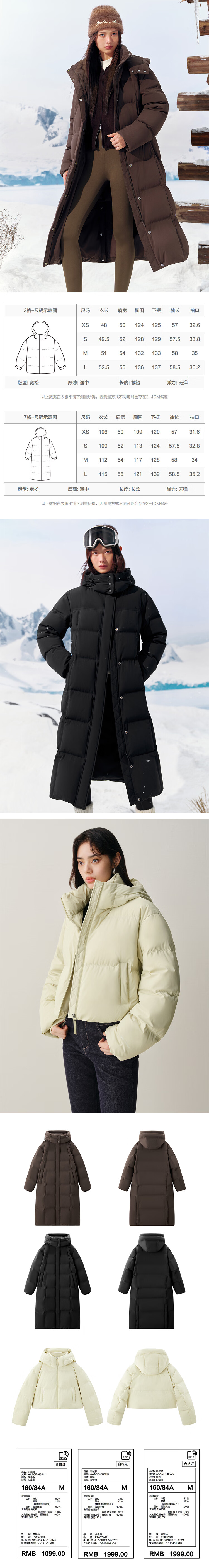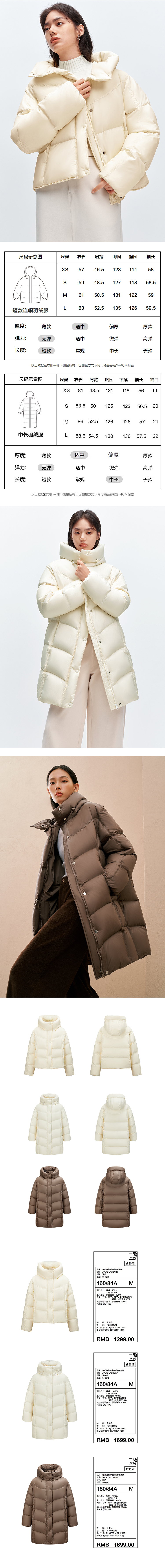太平鸟女装轻羽绒合集反季清仓白鸭绒羽绒服简约时尚短款中长款 咖色连帽中长款羽绒服 L