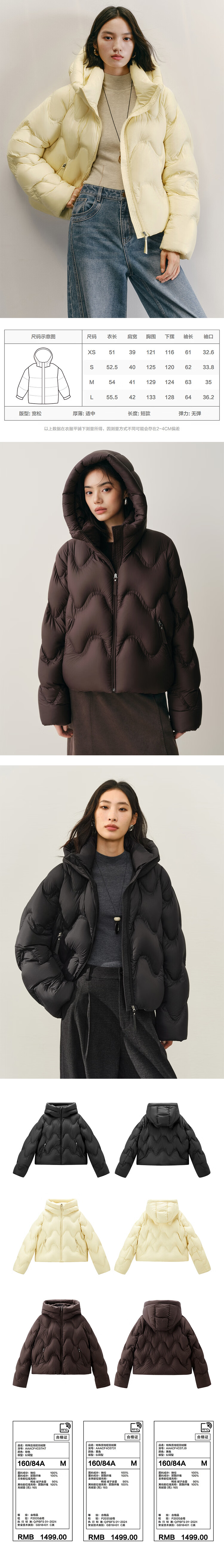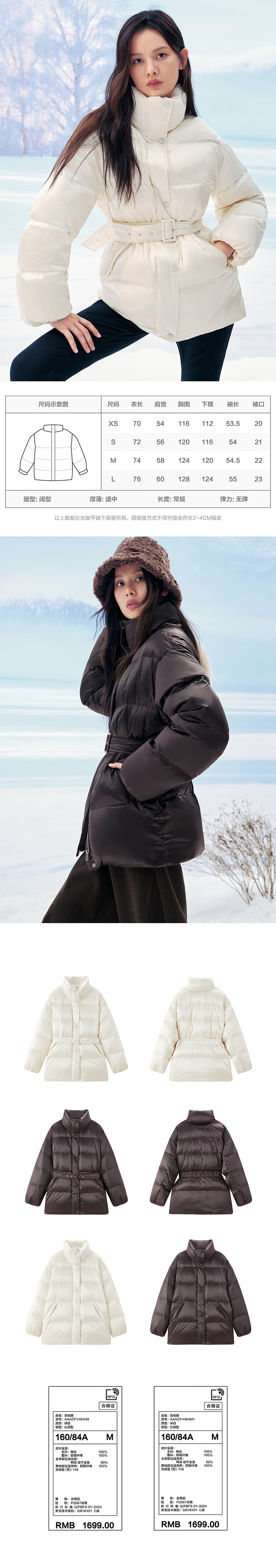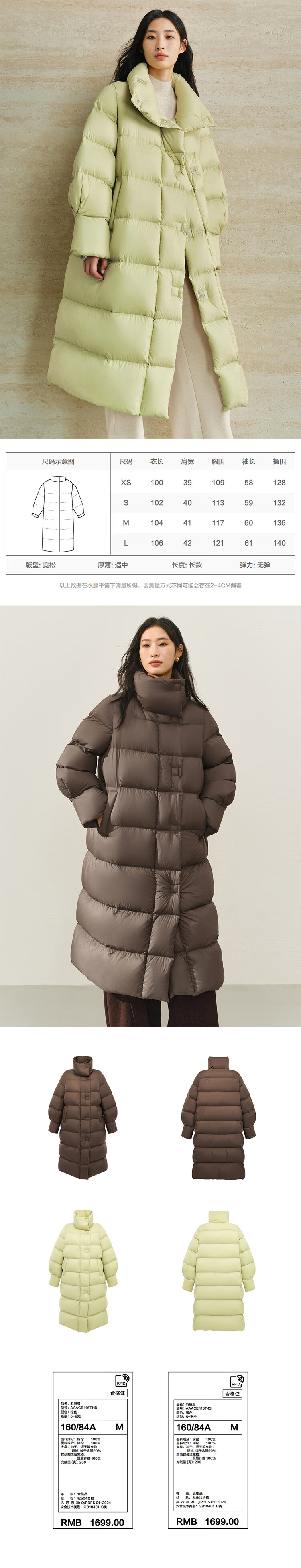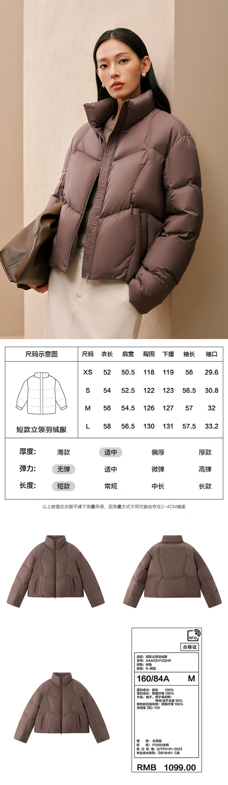 太平鸟女装轻羽绒合集反季清仓白鸭绒羽绒服简约时尚短款中长款 咖色连帽中长款羽绒服 L