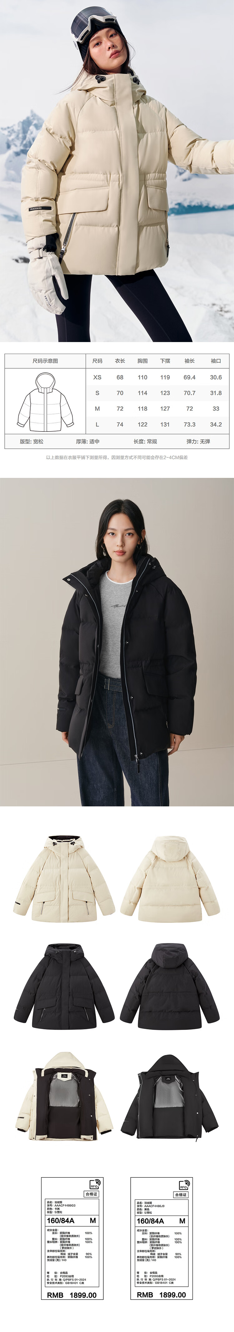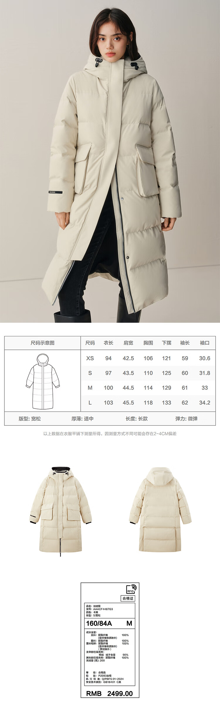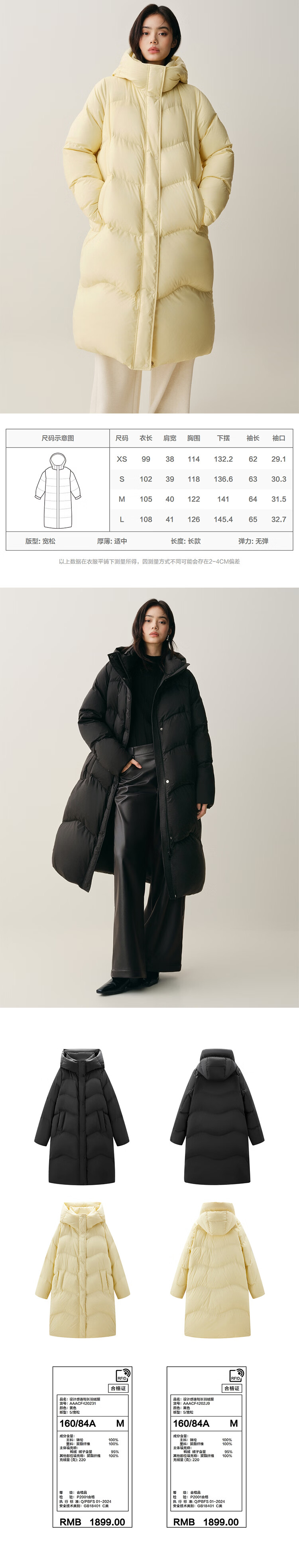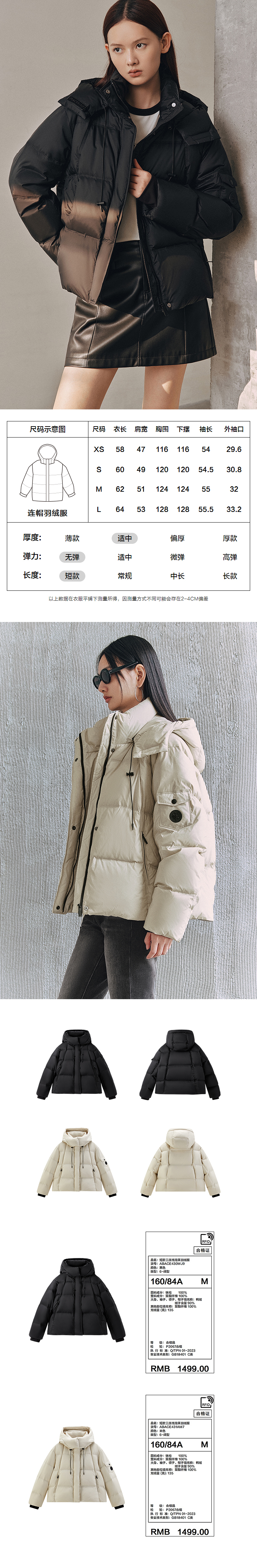 太平鸟女装轻羽绒合集反季清仓白鸭绒羽绒服简约时尚短款中长款 咖色连帽中长款羽绒服 L