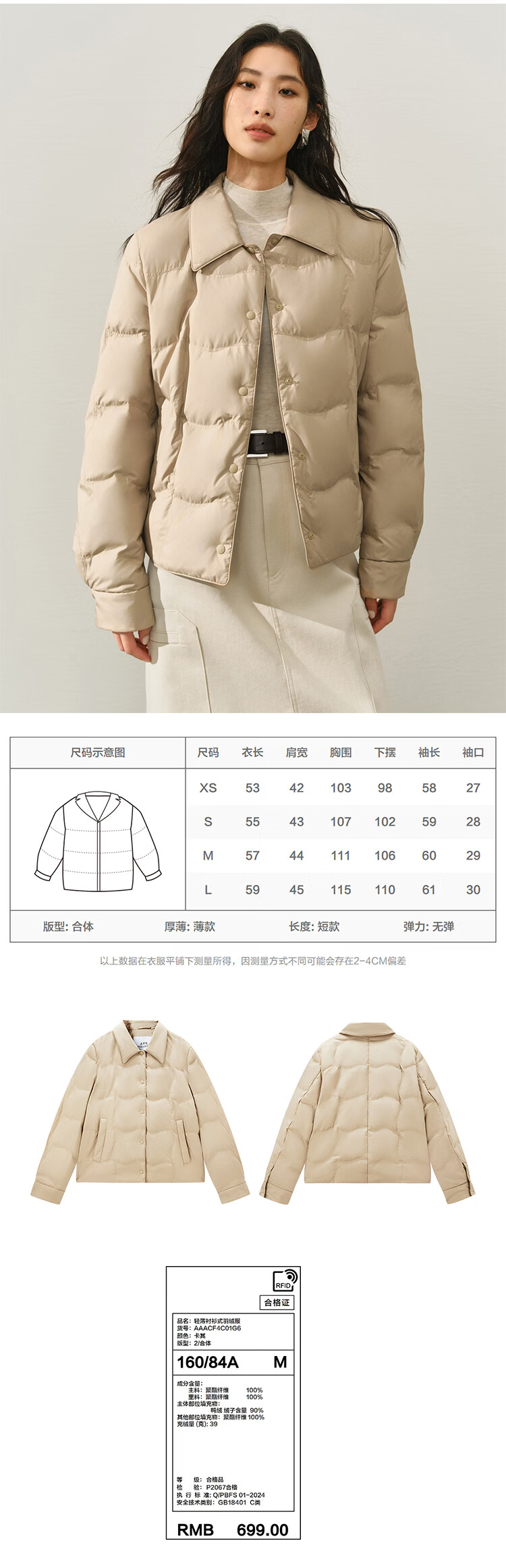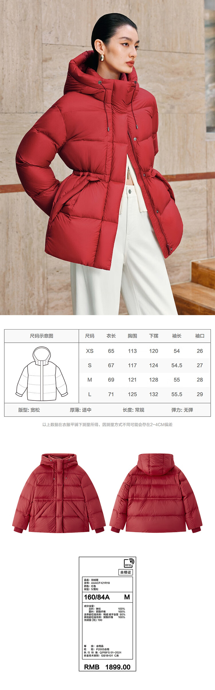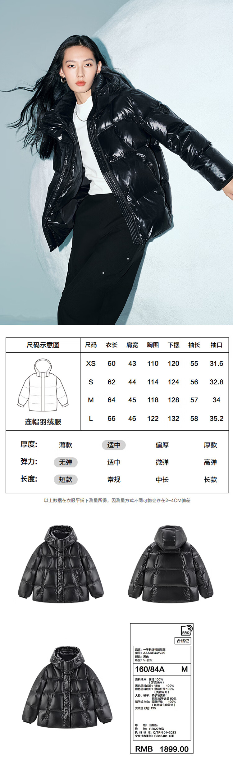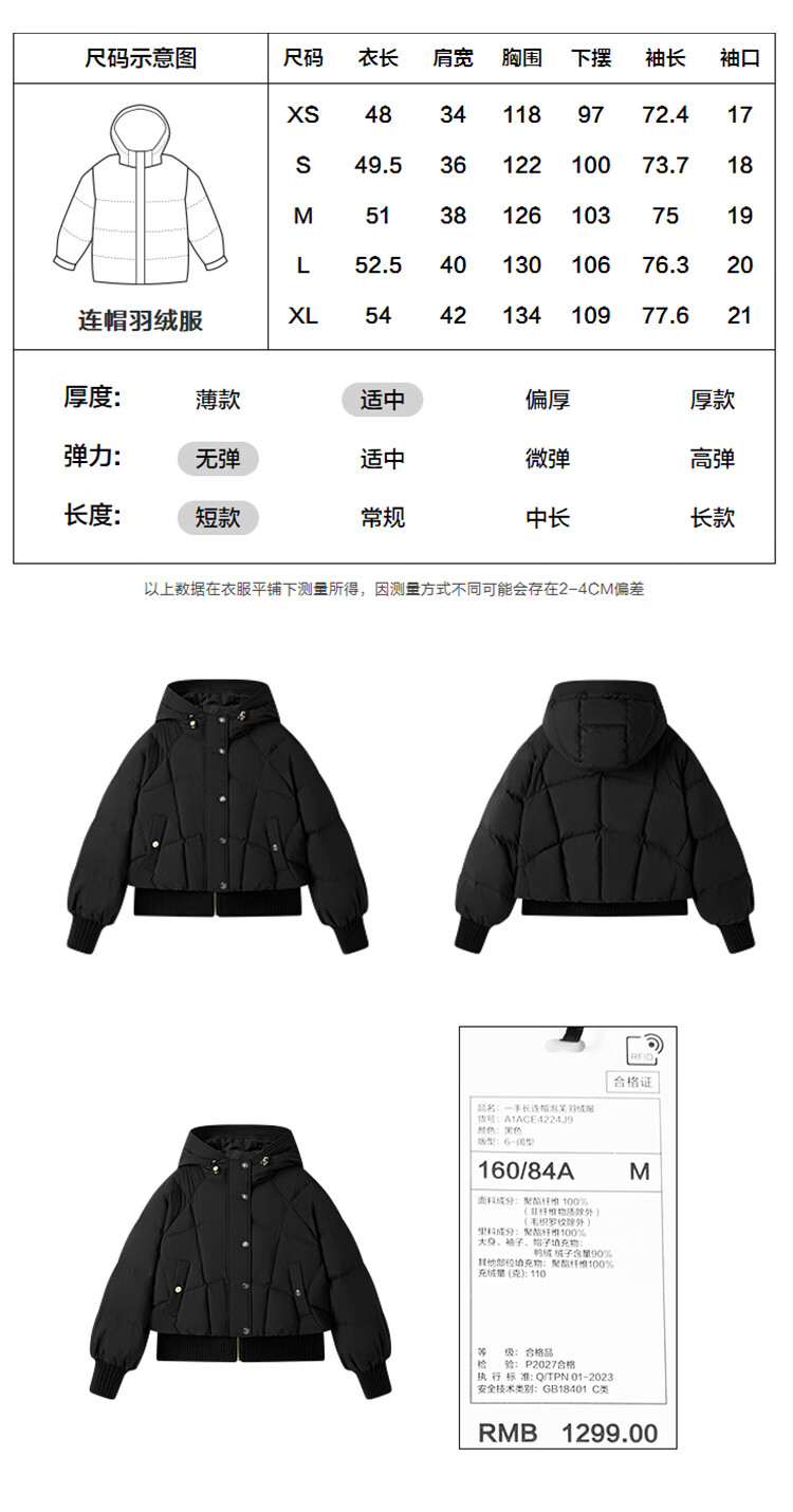 太平鸟女装轻羽绒合集反季清仓白鸭绒羽绒服简约时尚短款中长款 咖色连帽中长款羽绒服 L