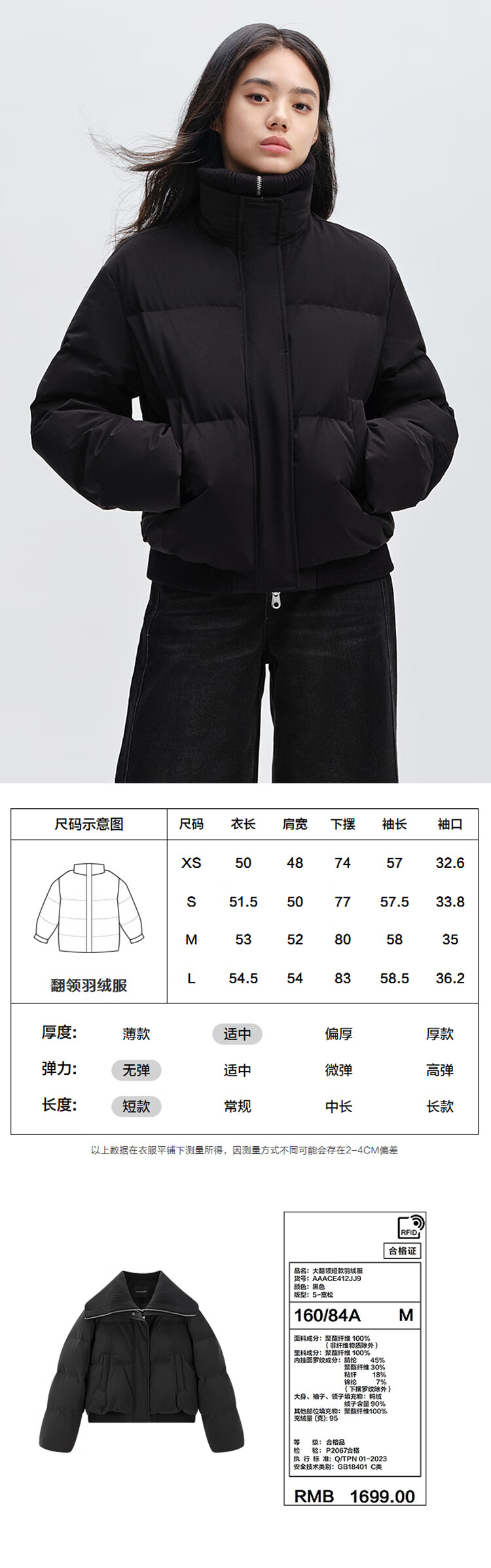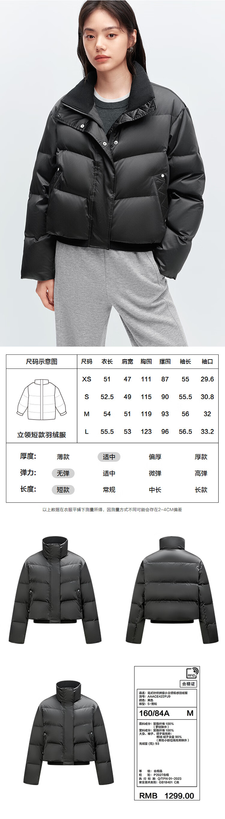 海澜之家(HLA)羽绒服男25新款立领石墨烯保暖挺括外套男冬季 黑色1A L 175/92A 推荐140-160斤