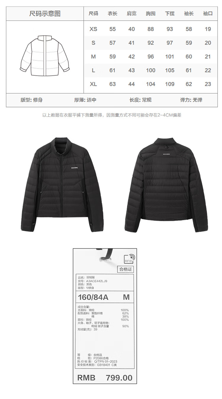 海澜之家(HLA)羽绒服男25新款运动SPORTSDAY抗静电外套男冬季 黑色3C L 175/92A 推荐140-160斤