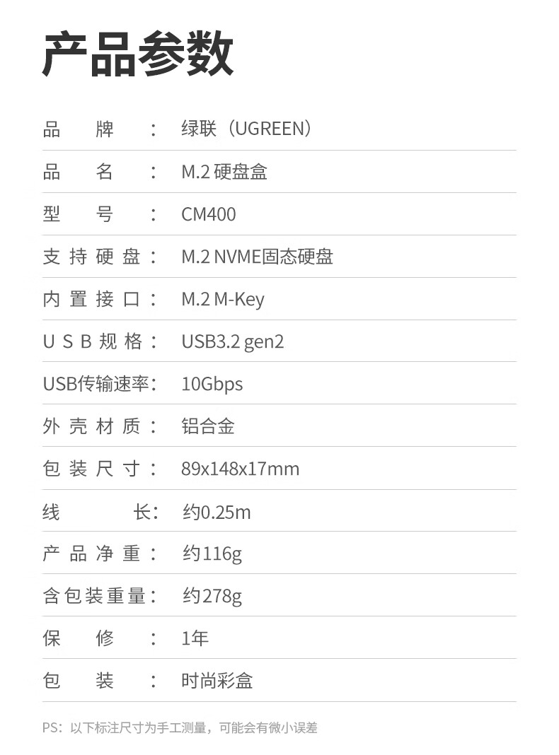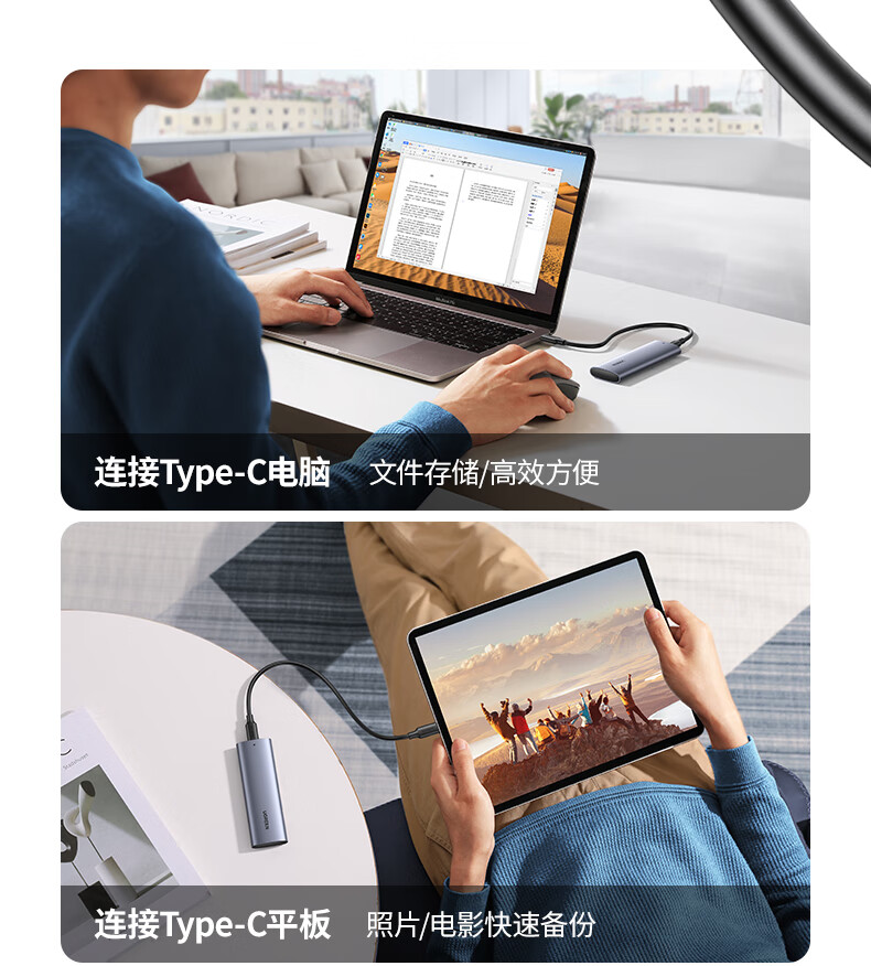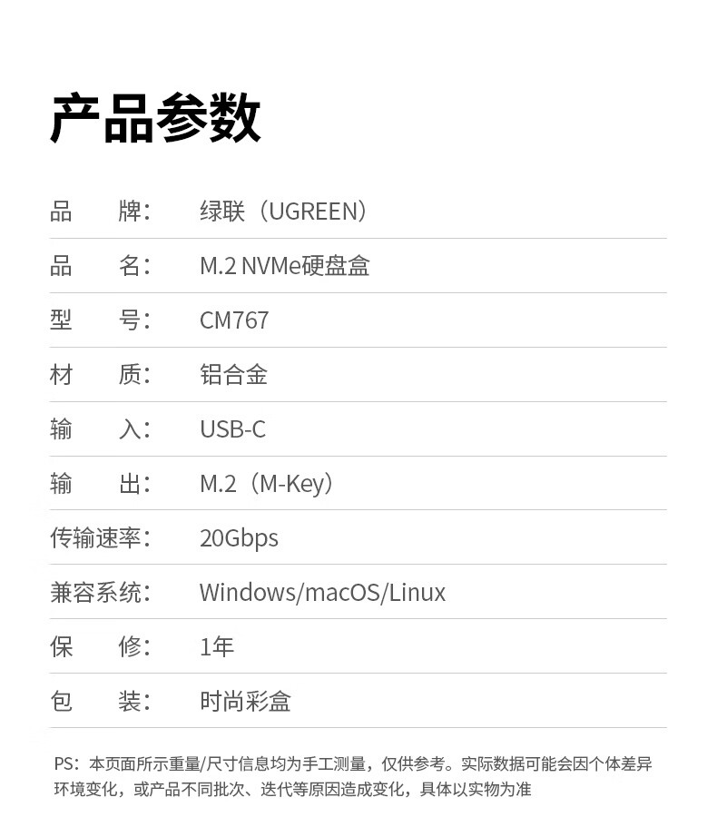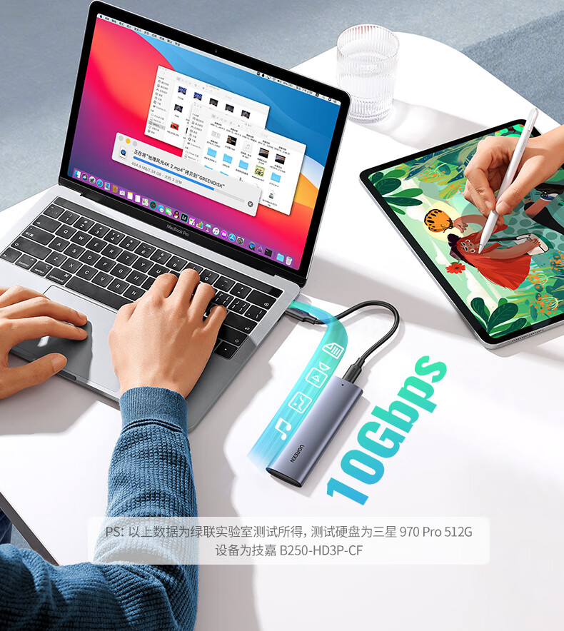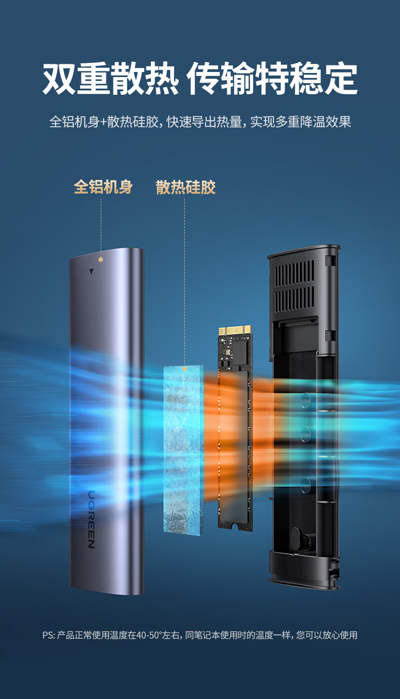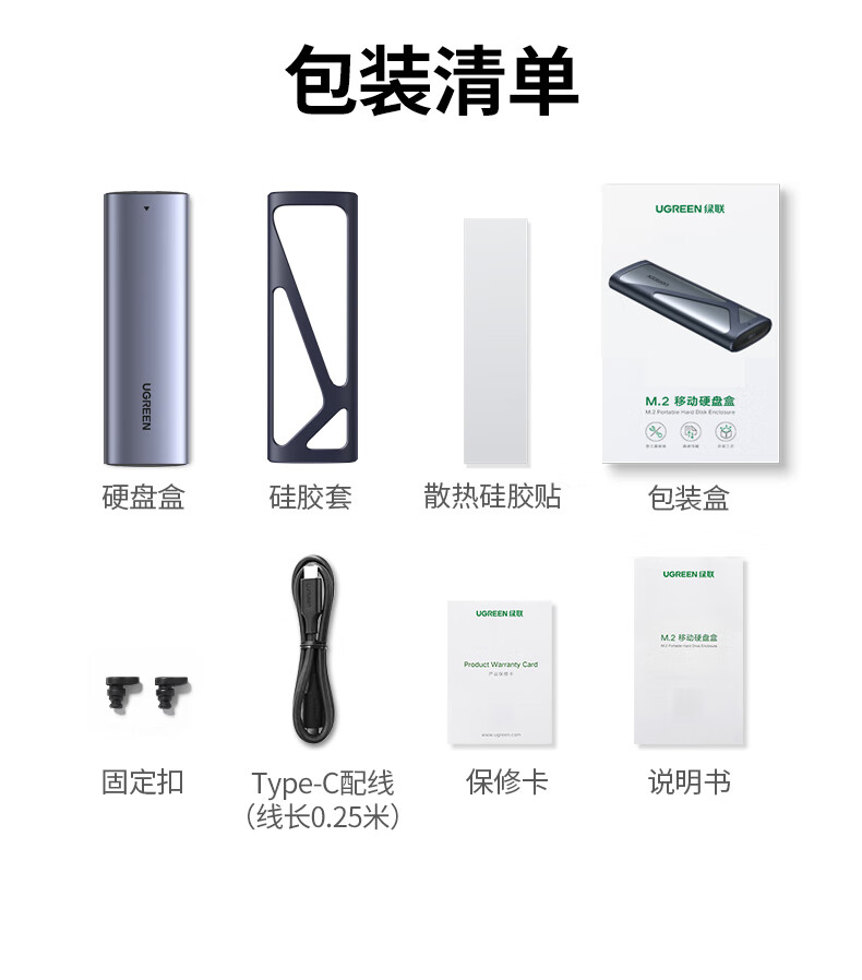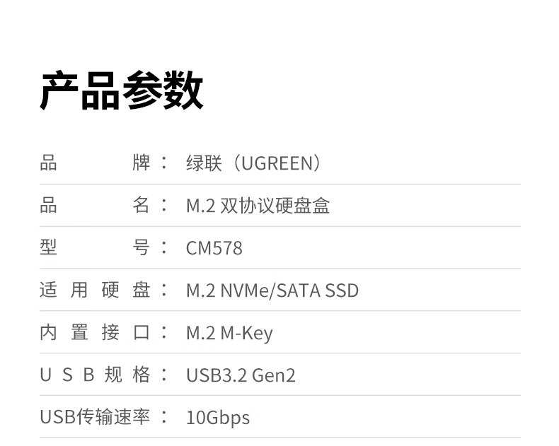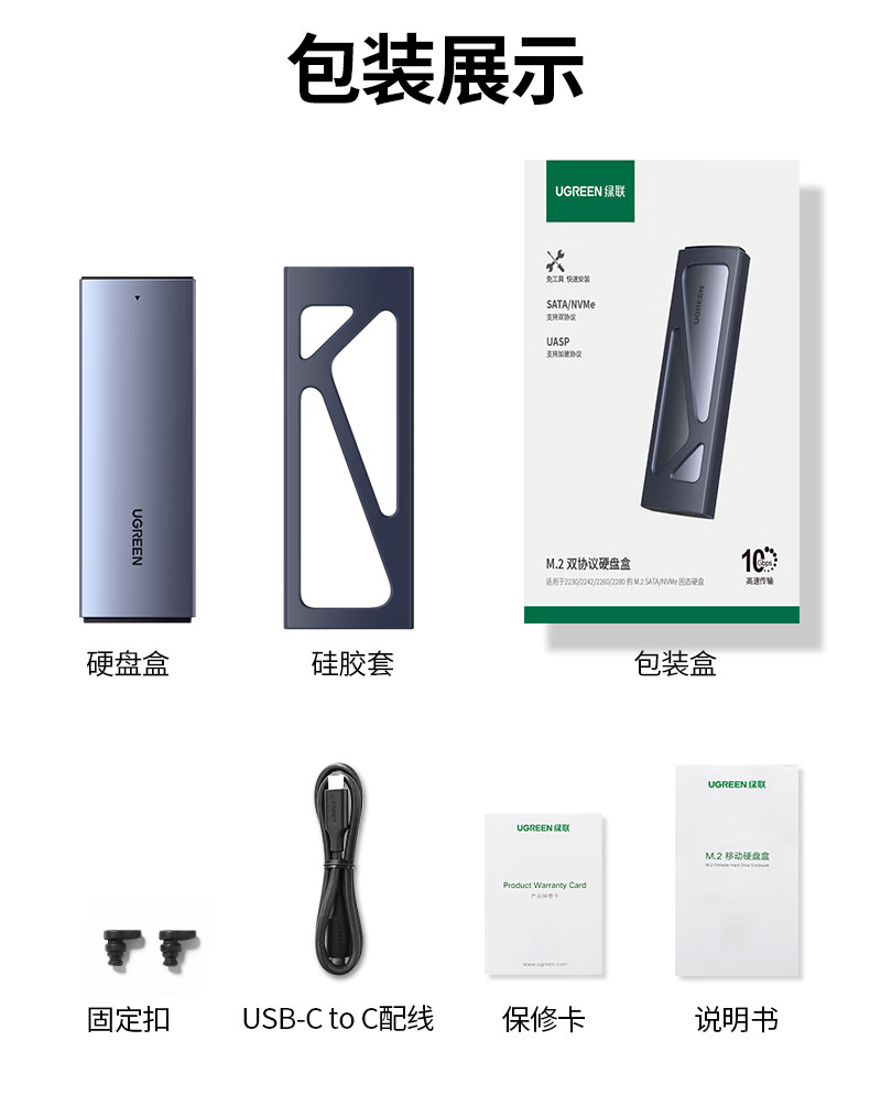 绿联 M.2 NVMe/SATA移动固态硬盘盒Type-C3.2移动硬盘盒 SSD机械硬盘外接硬盘盒 适用笔记本电脑苹果16 NVMe/SATA【10Gbps】配Type-C线