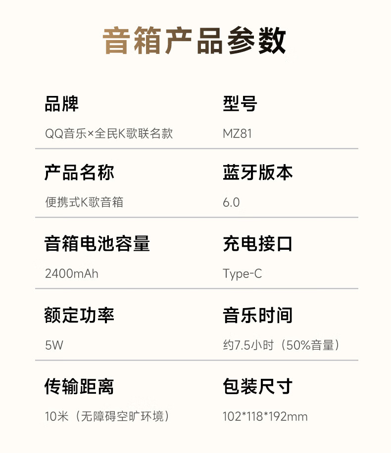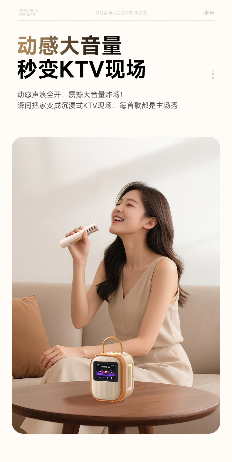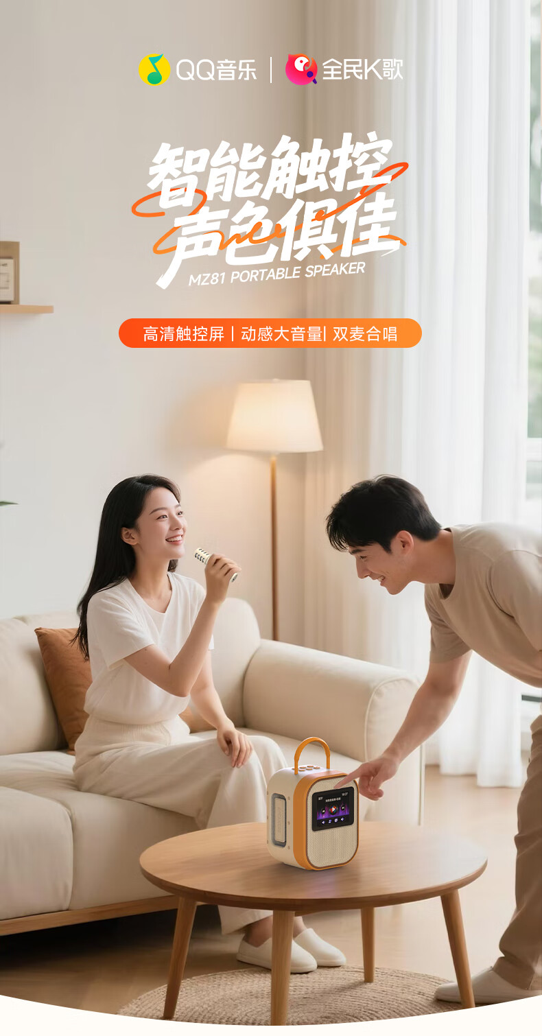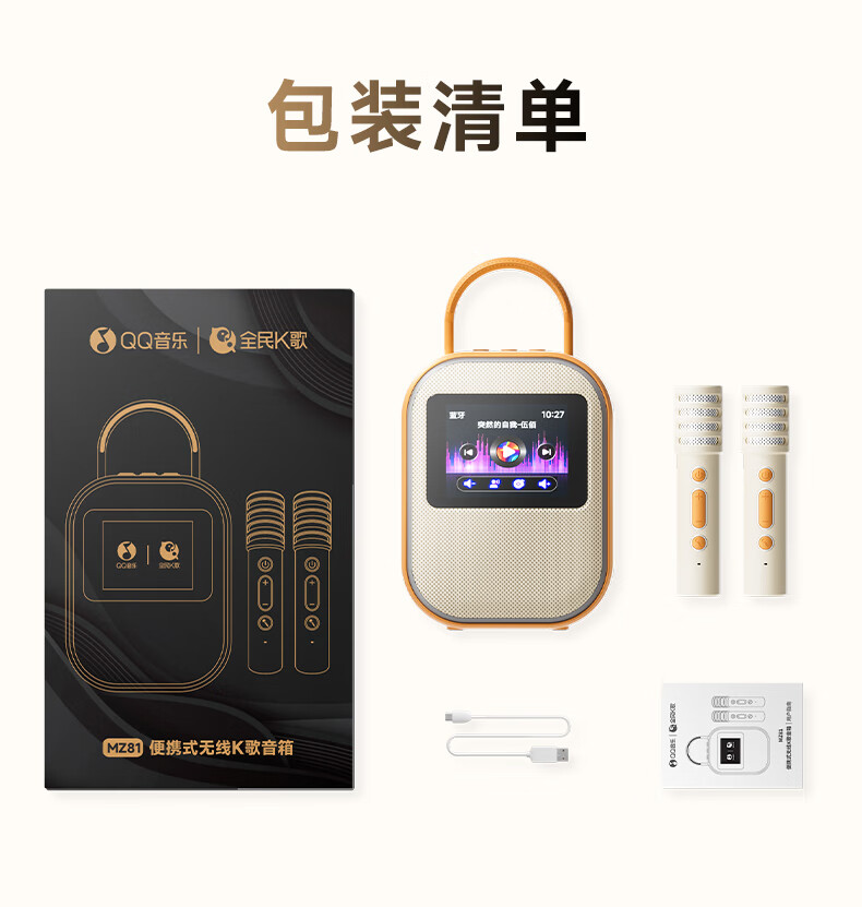 全民K歌联合QQ音乐定制触屏动态歌词音箱双麦麦克风KTV家庭音响唱歌蓝牙智能电视一体话筒家用k歌MZ81杏色