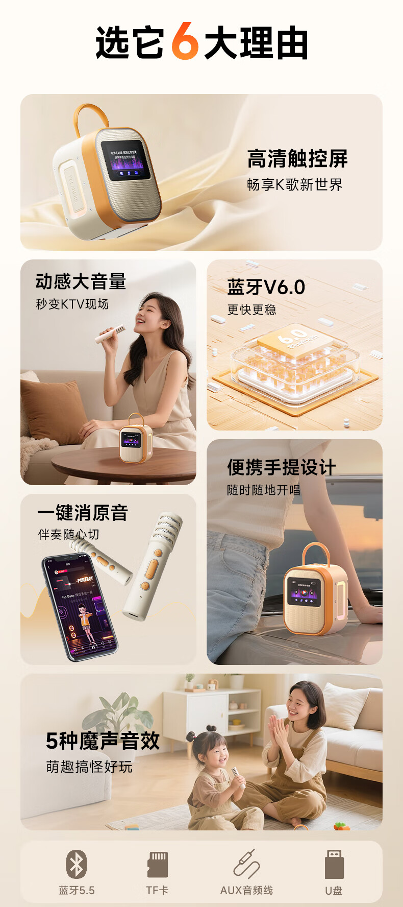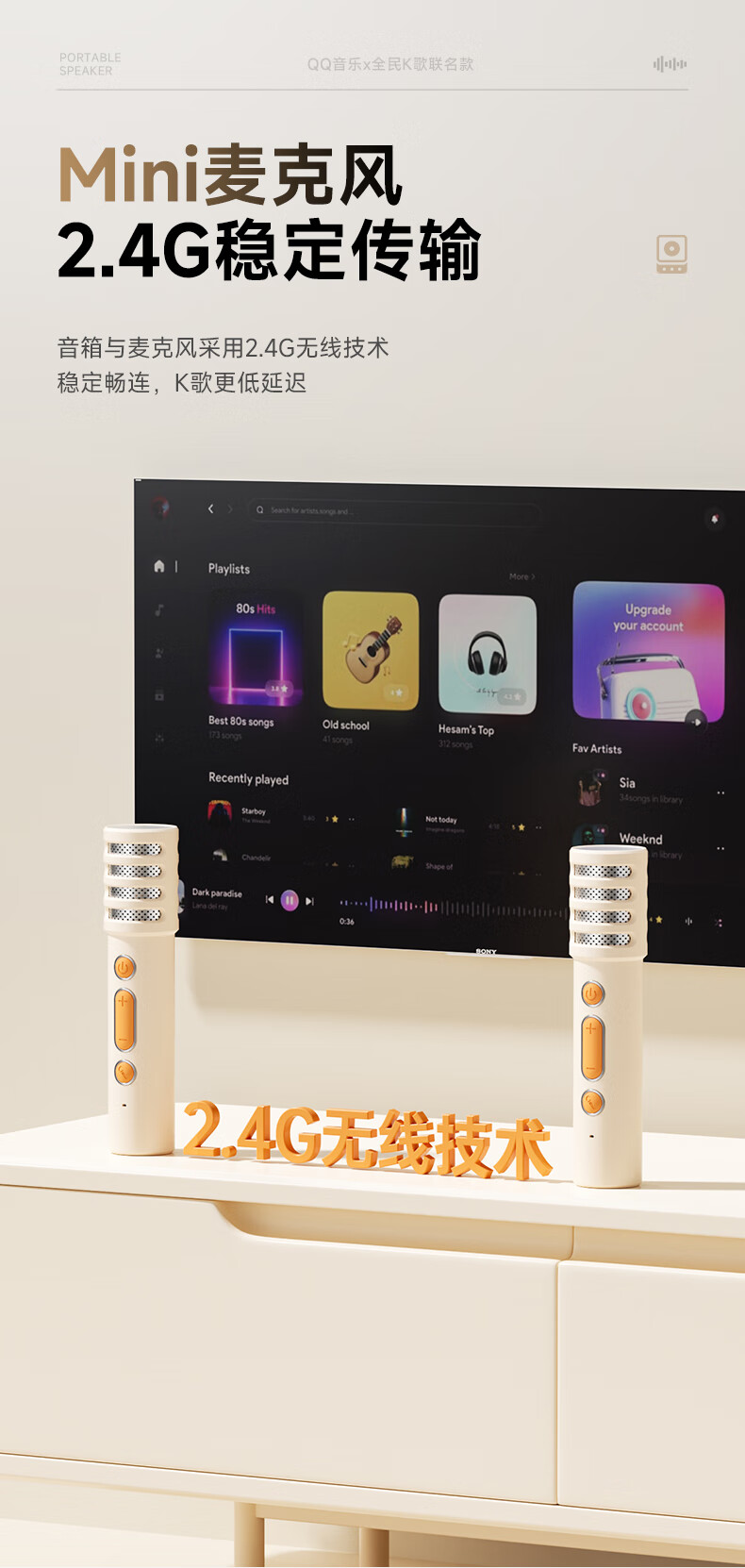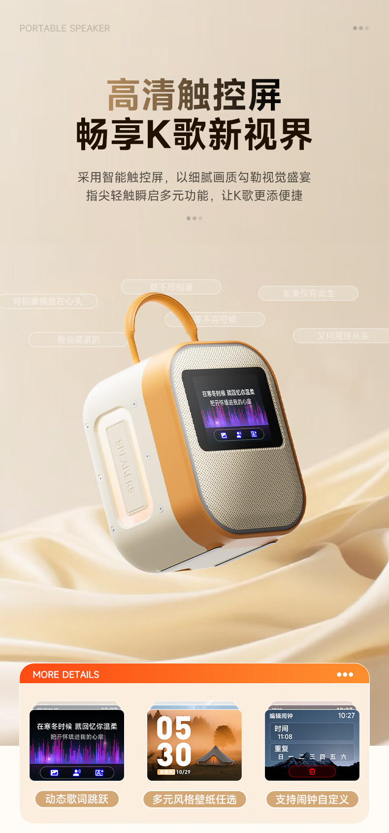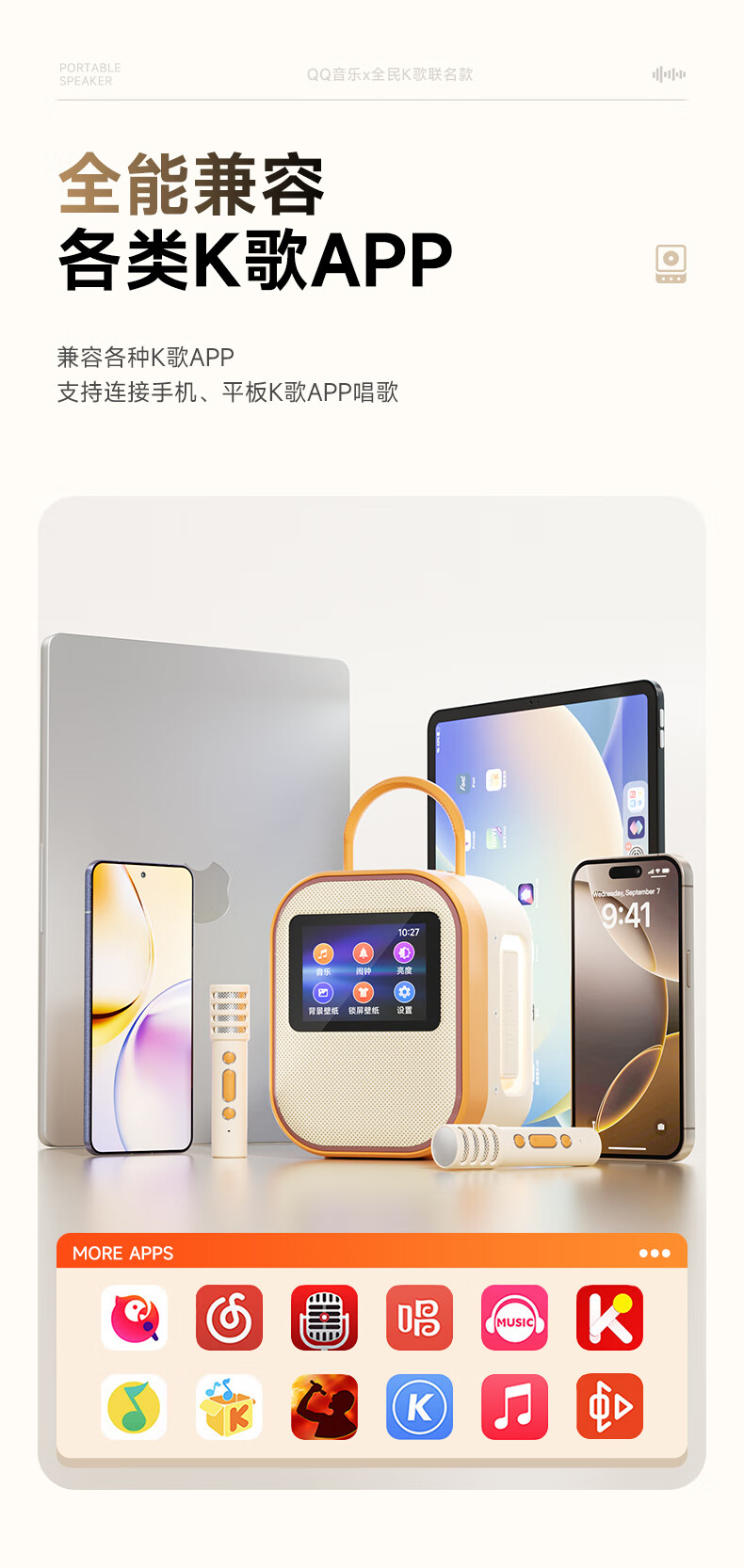 全民K歌联合QQ音乐定制触屏动态歌词音箱双麦麦克风KTV家庭音响唱歌蓝牙智能电视一体话筒家用k歌MZ81杏色