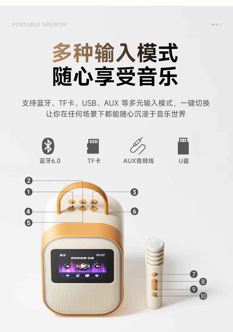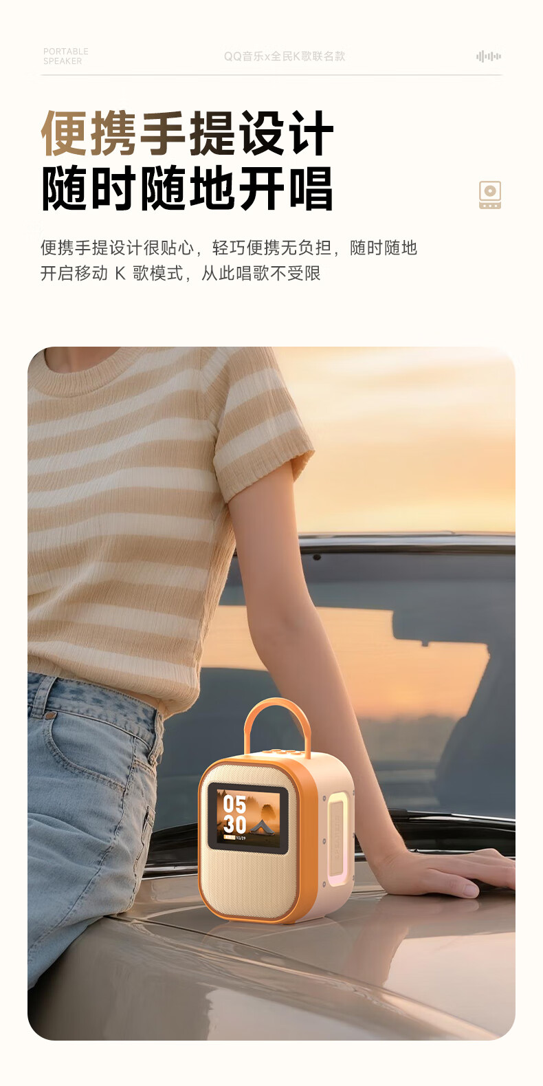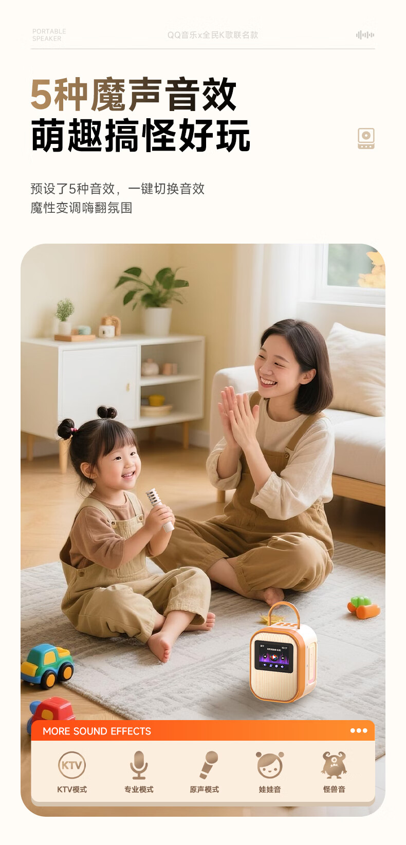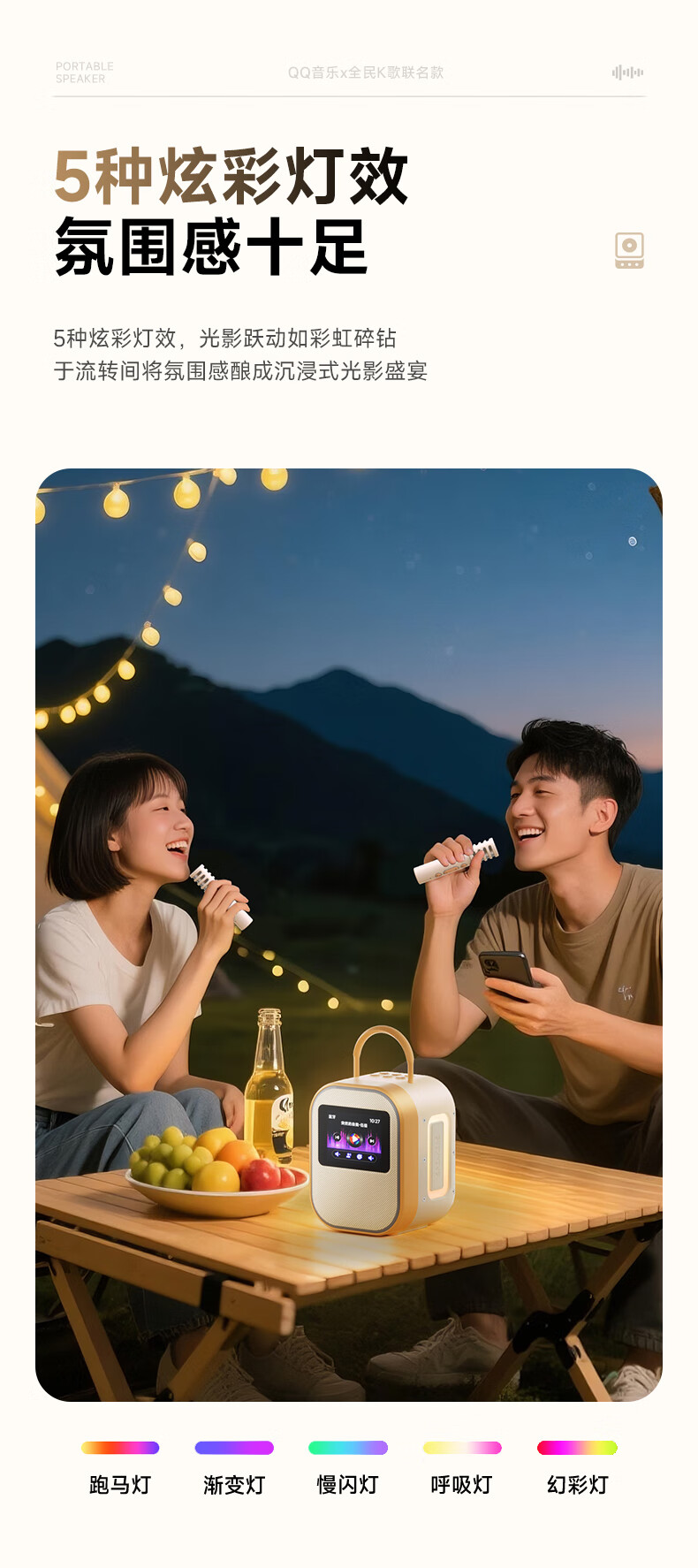 全民K歌联合QQ音乐定制触屏动态歌词音箱双麦麦克风KTV家庭音响唱歌蓝牙智能电视一体话筒家用k歌MZ81杏色
