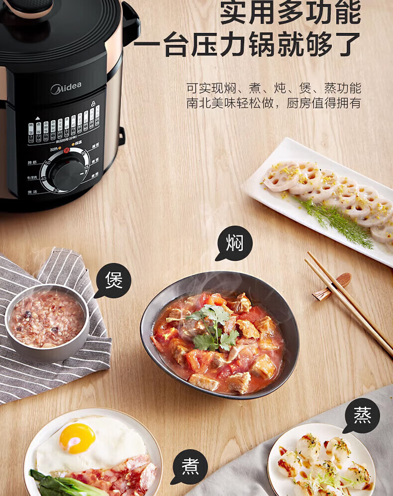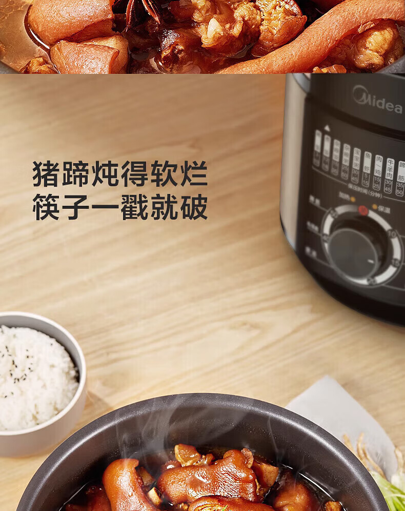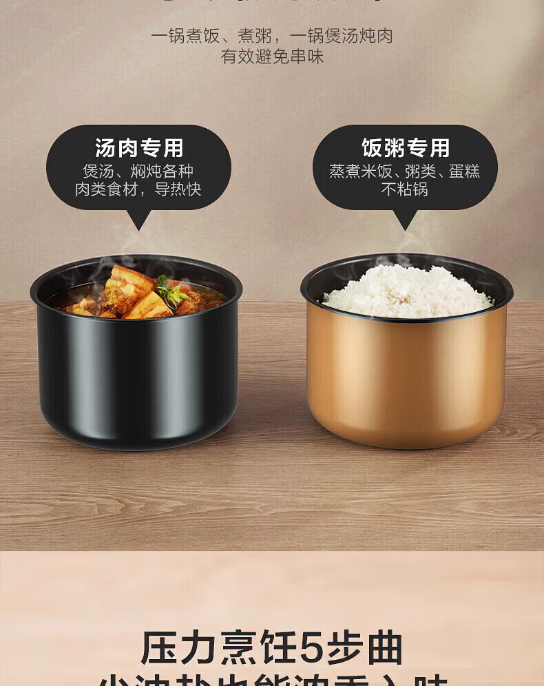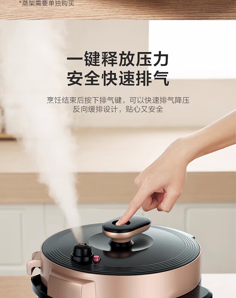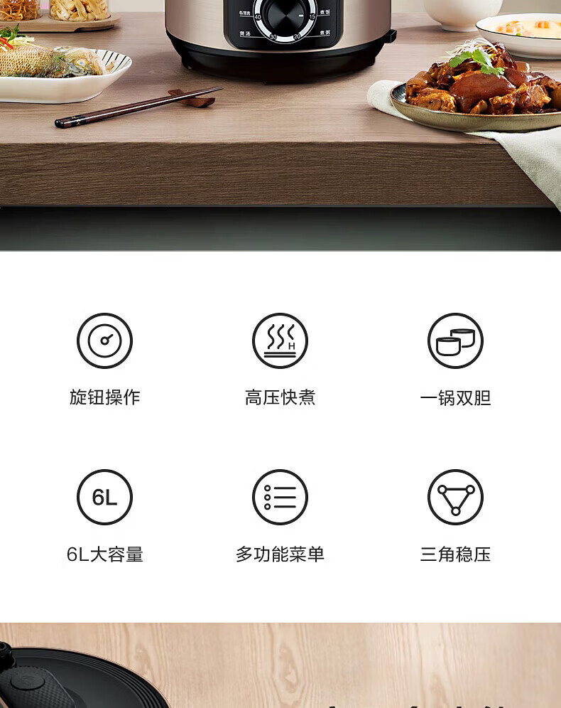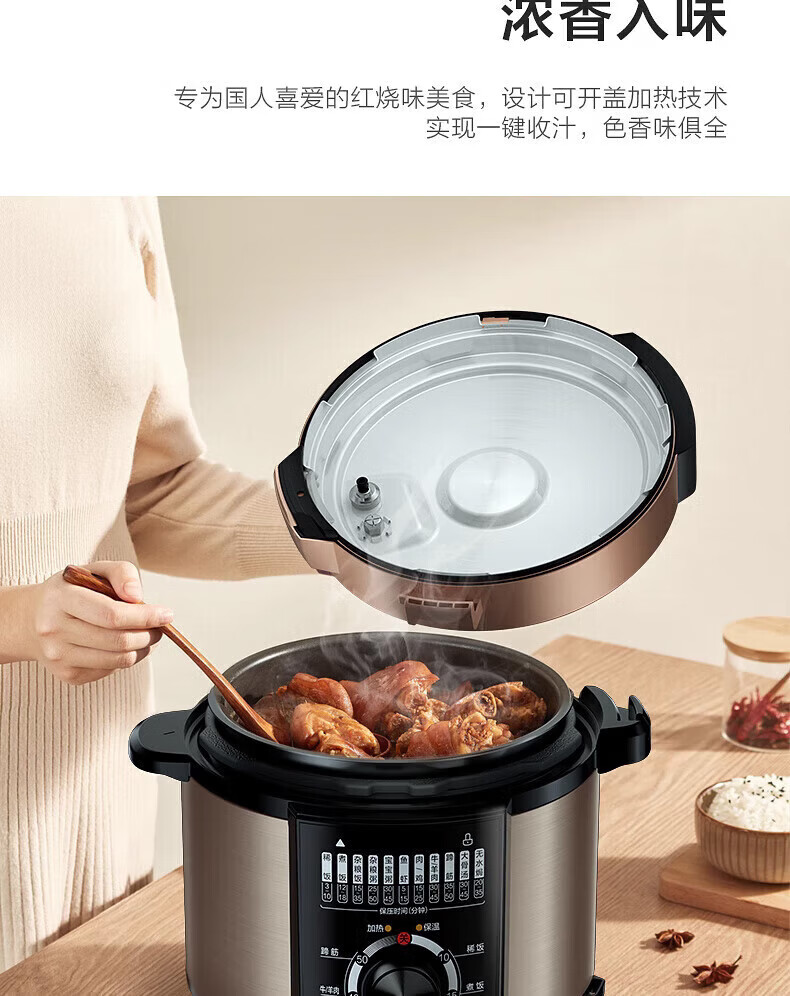 美的(Midea)电压力锅电高压锅 家用6L大容量多功能电饭煲高压电饭锅不粘双胆 智能煮饭煲汤 一键排气 【6升一锅双胆】高压快煮 6L