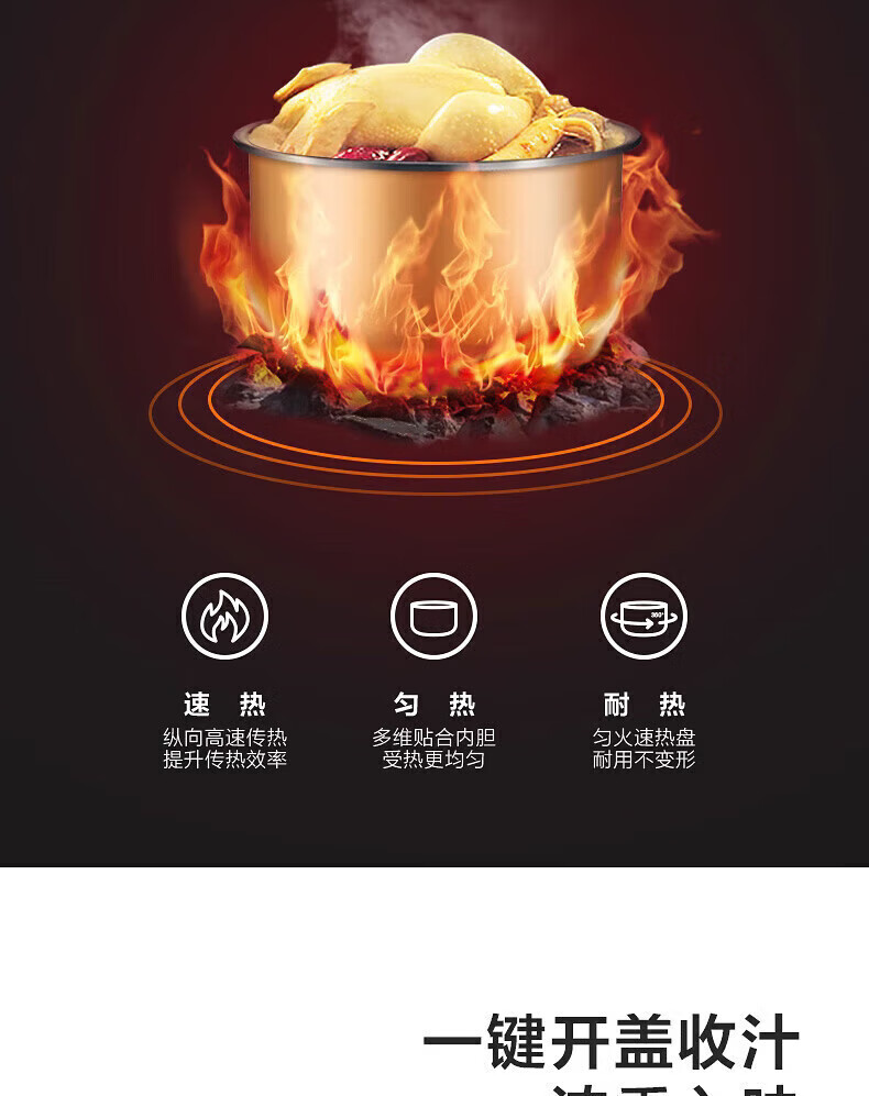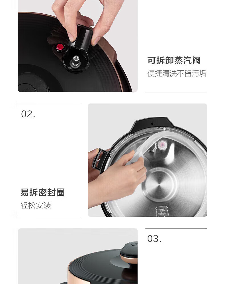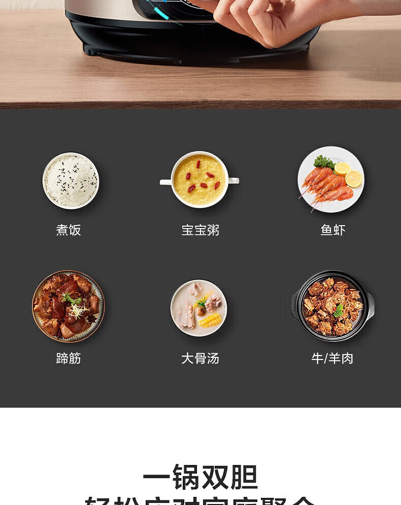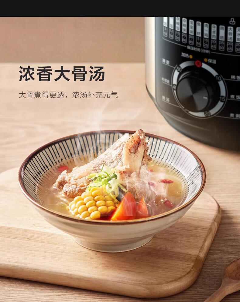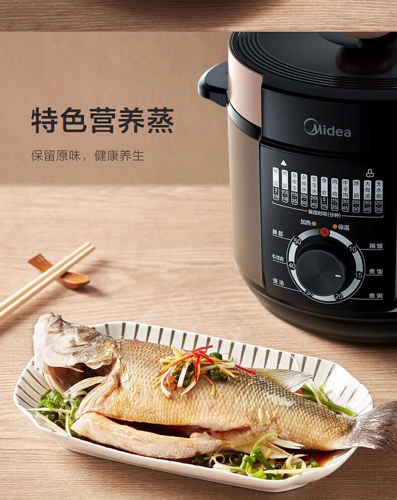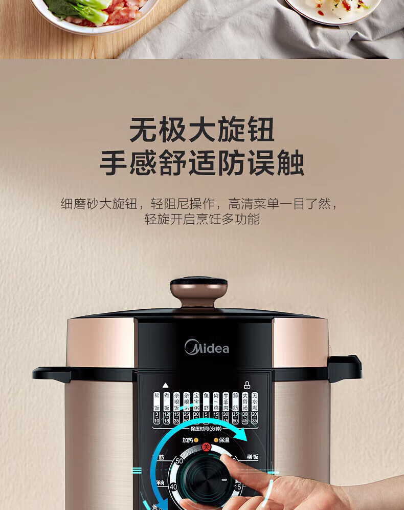 美的(Midea)电压力锅电高压锅 家用6L大容量多功能电饭煲高压电饭锅不粘双胆 智能煮饭煲汤 一键排气 【6升一锅双胆】高压快煮 6L
