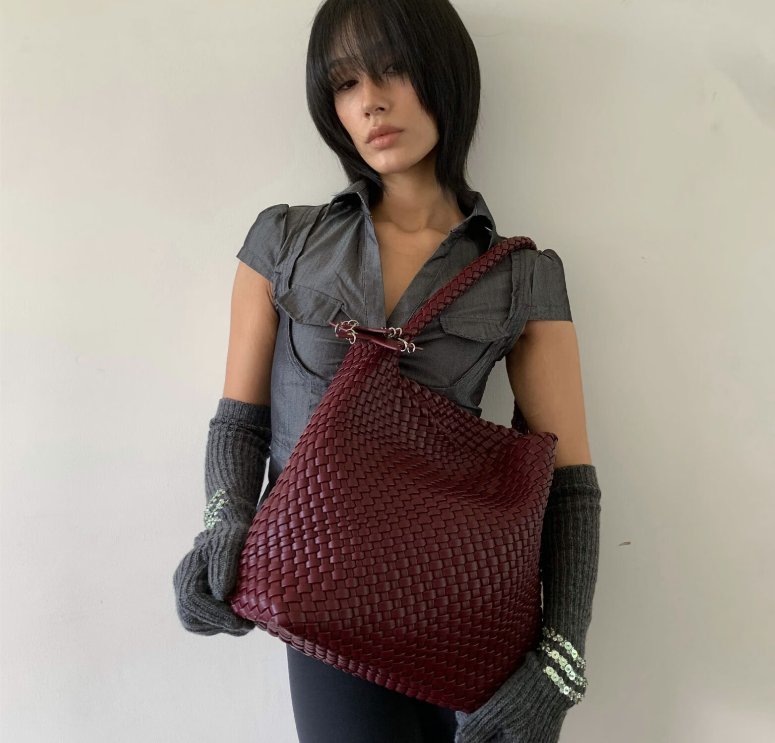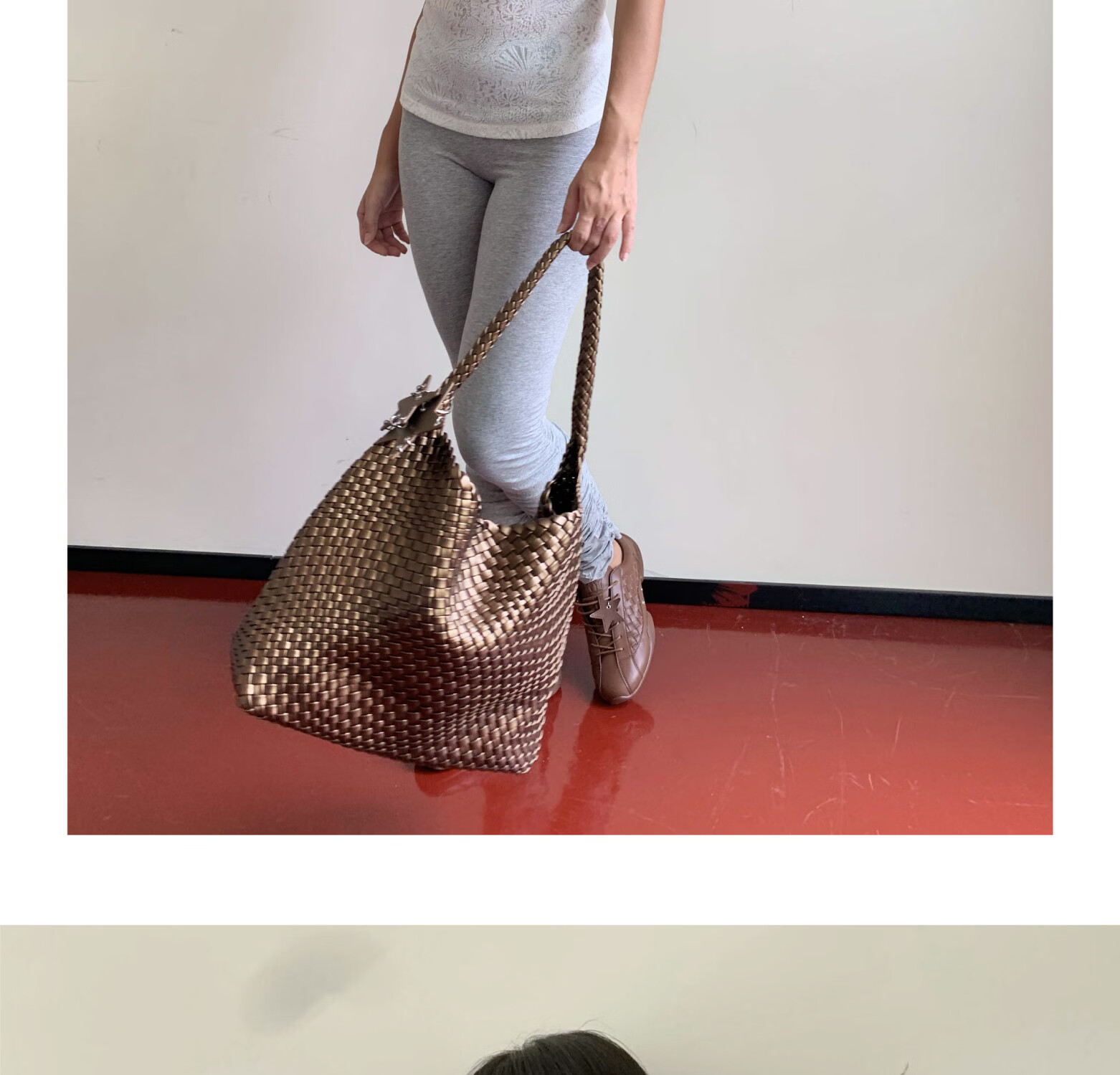 ECODAY原创设计香槟色托特包高级感编织包大容量单肩包男女同款婚包礼物 香槟色(大号)