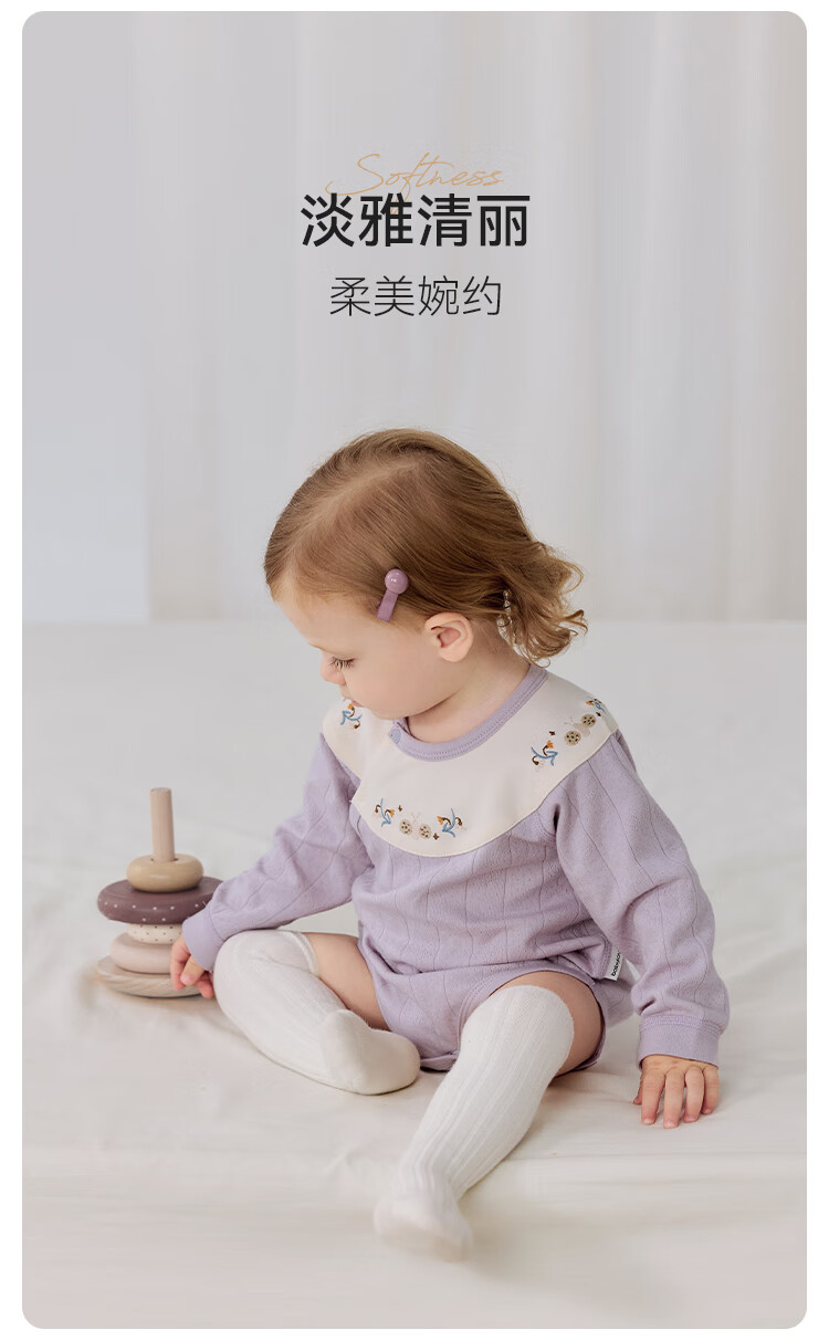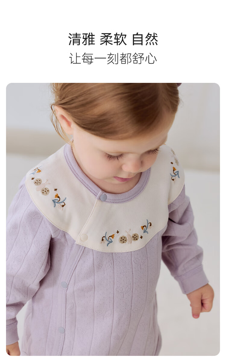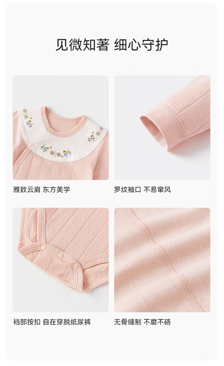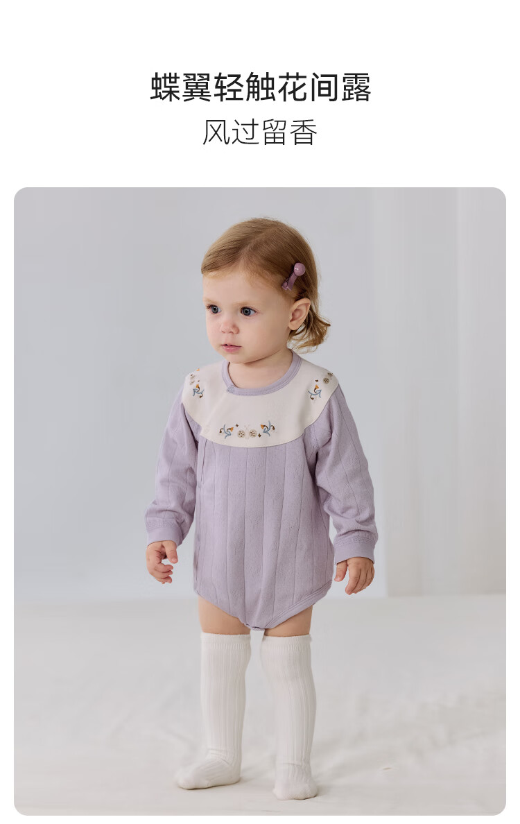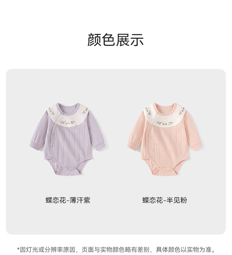 babylove女宝宝包屁衣春秋季纯棉三角哈衣婴儿提花衣服可爱外出服 蝶恋花-半见粉 90cm