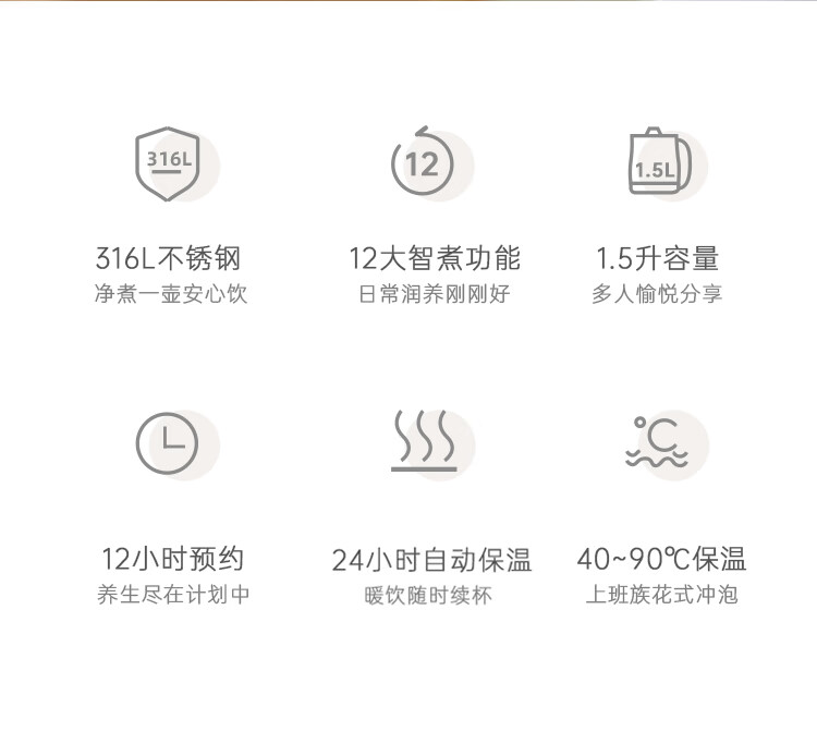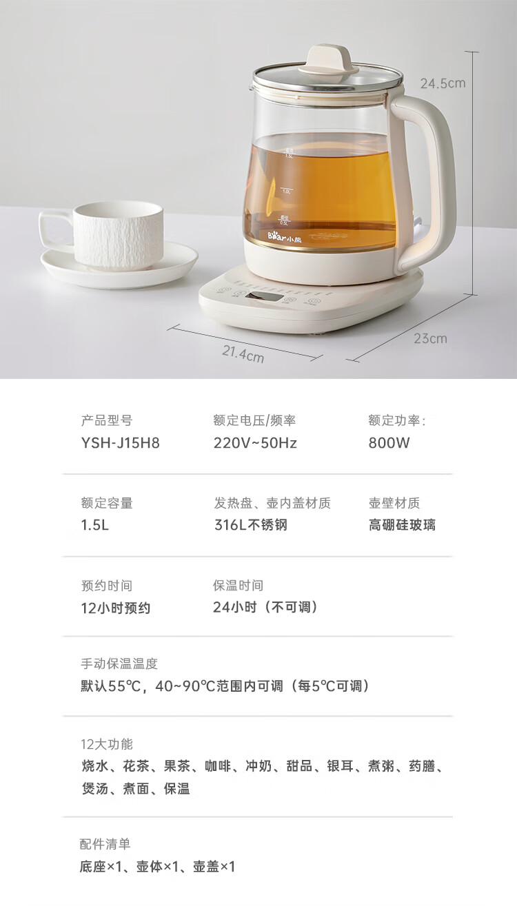 小熊(Bear)养生壶 煮茶壶 恒温水壶 保温烧水一体电热水壶花茶壶 316L不锈钢 1.5L大容量 YSH-J15H8