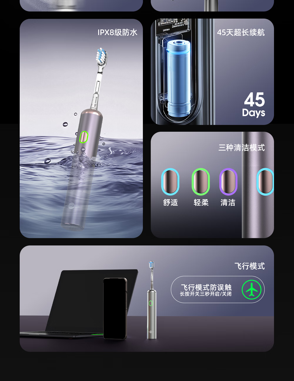 博皓(prooral)铝合金电动牙刷扫振智能牙刷青少年成人牙刷 深度清洁护龈 送学生情侣礼物 LS-1 银色