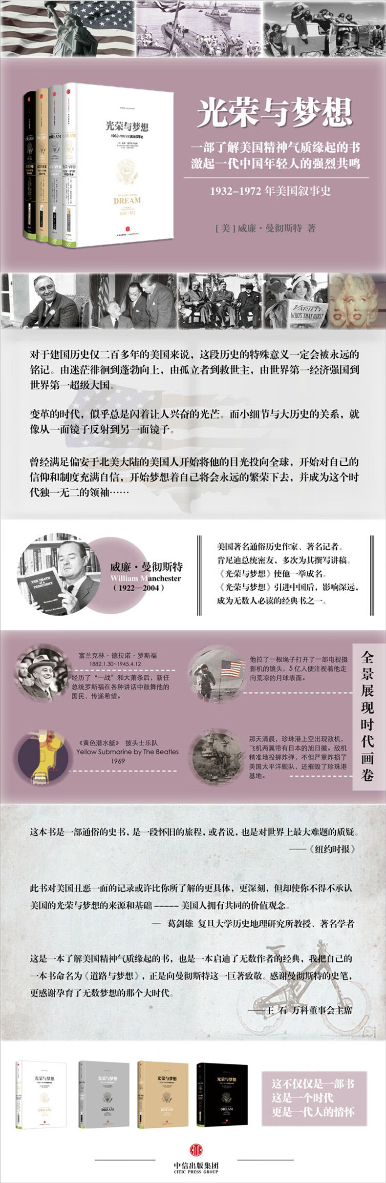 光荣与梦想系列 威廉曼彻斯特 罗辑思维罗振宇推荐 中信出版社图书 光荣与梦想·精装版(套装全4册)