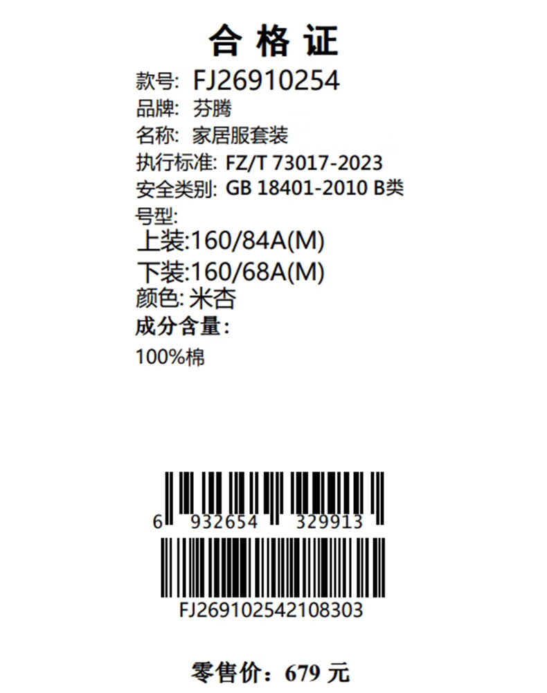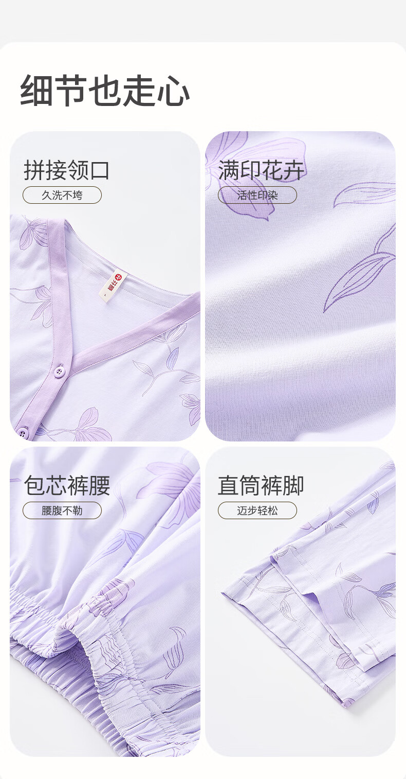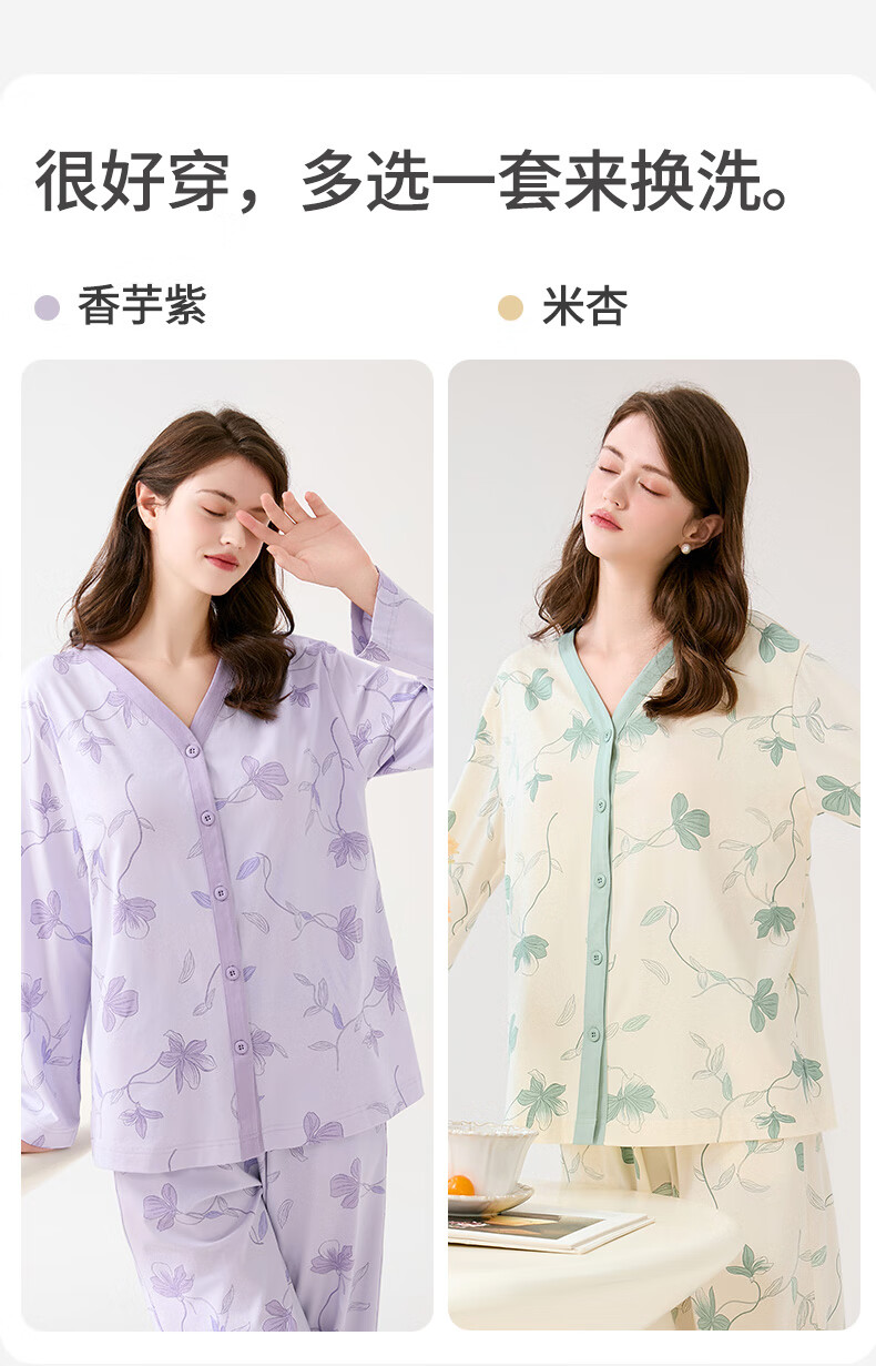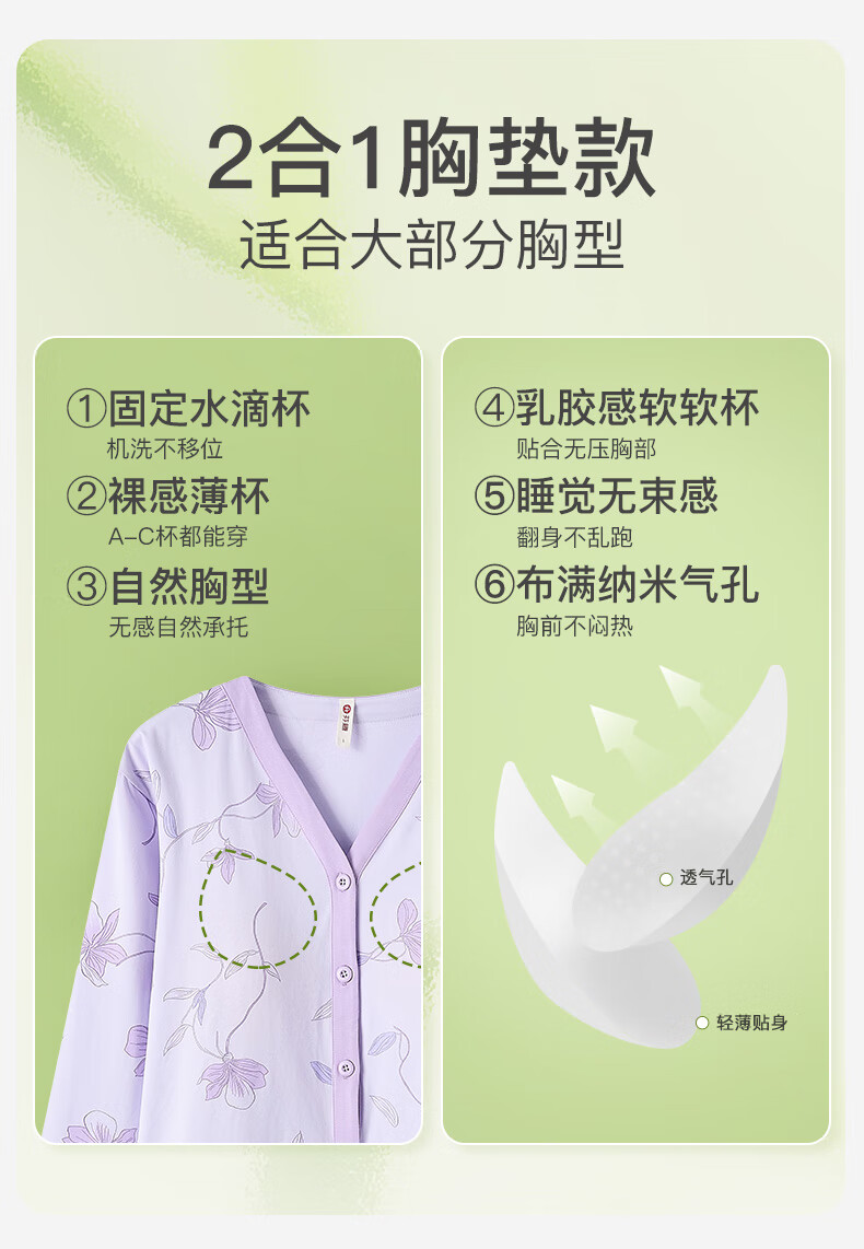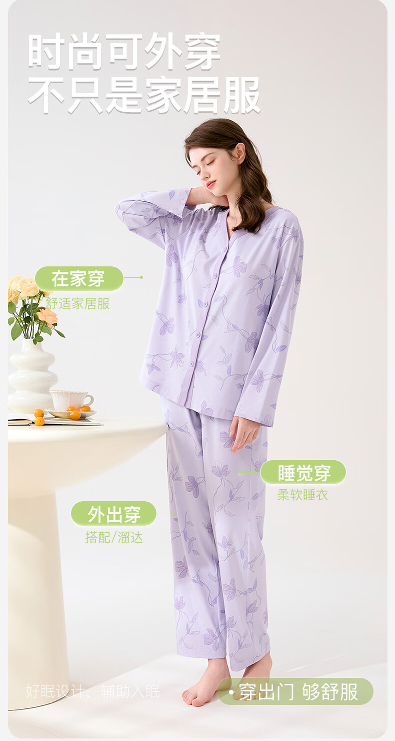 芬腾睡衣女士纯棉带胸垫新疆棉2025年春季V领开衫长袖套装软棉棉