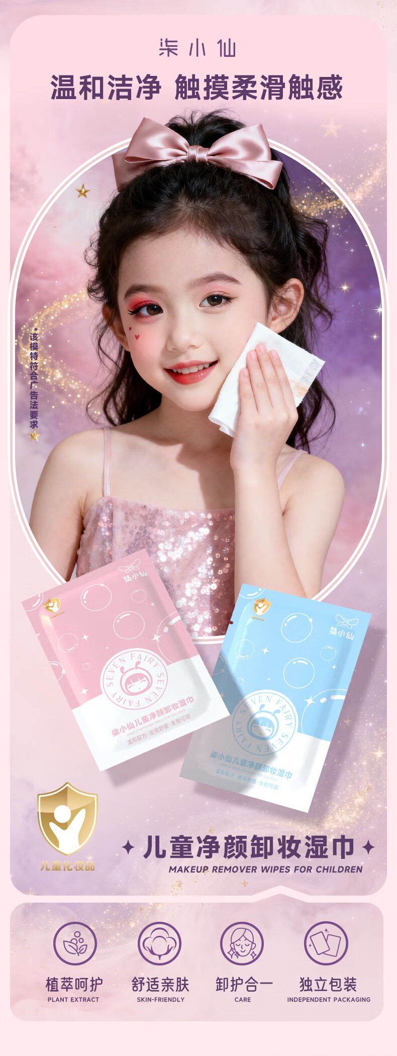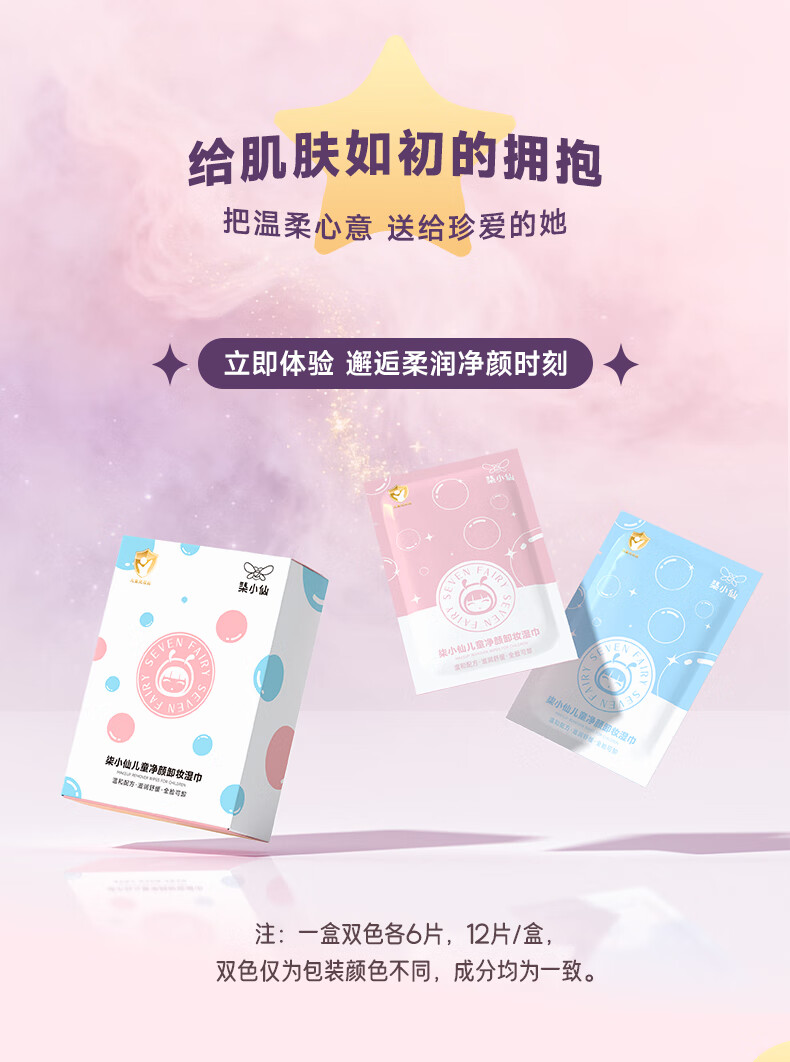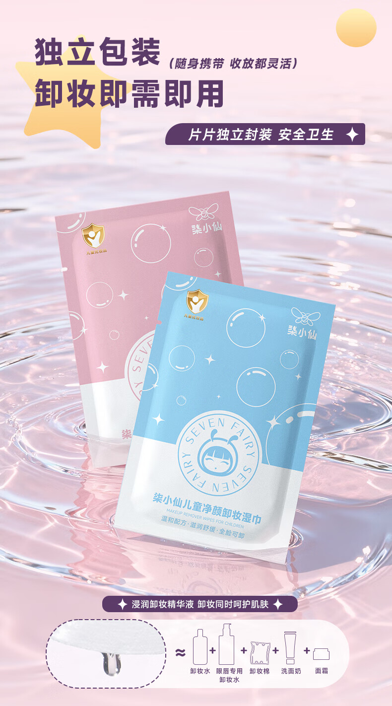 柒小仙 儿童卸妆洁面巾 卸妆洁面棉青少年学生专用温和深层清洁脸部无刺 外出压缩毛巾(干湿两用)(6个)