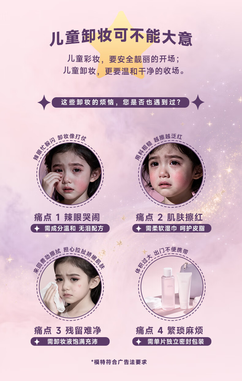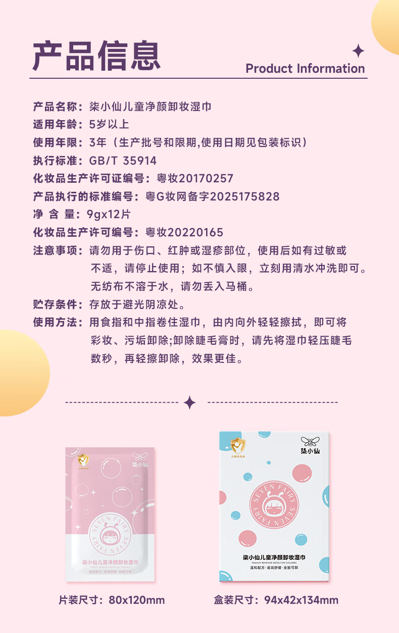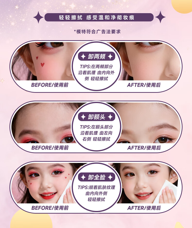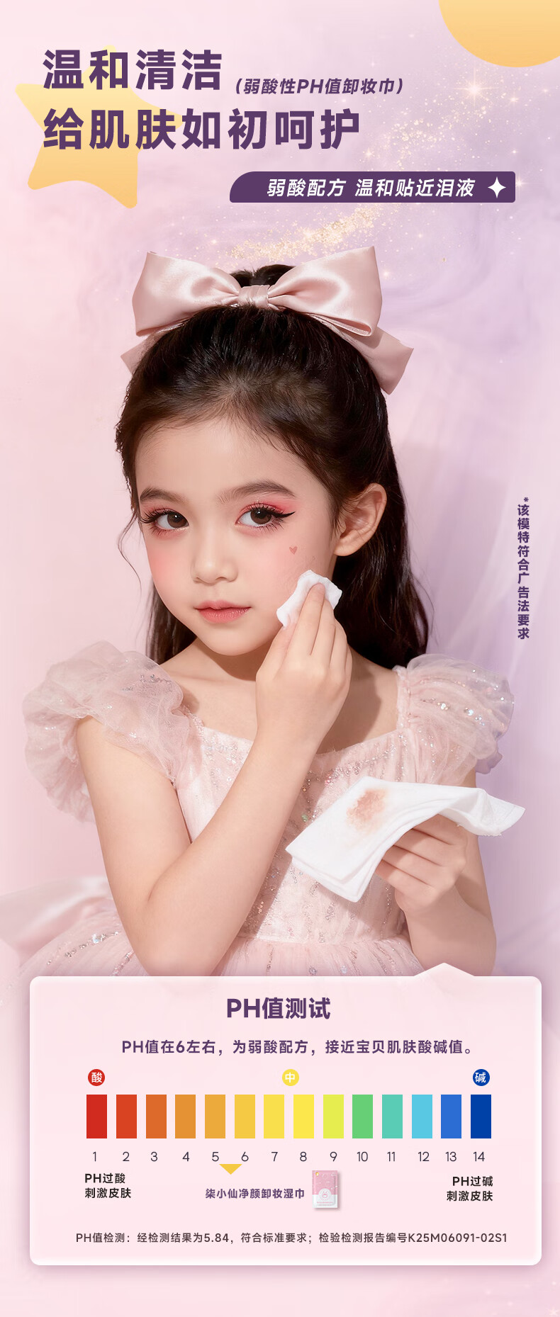 柒小仙 儿童卸妆洁面巾 卸妆洁面棉青少年学生专用温和深层清洁脸部无刺 外出压缩毛巾(干湿两用)(6个)