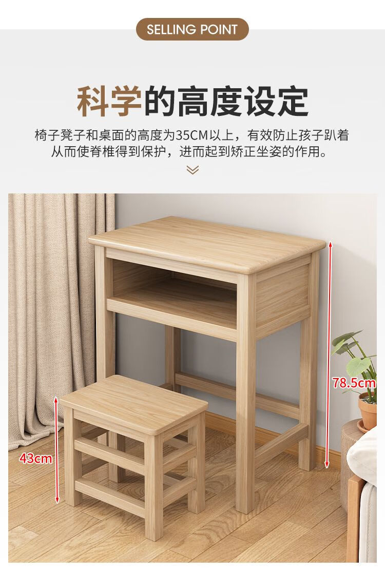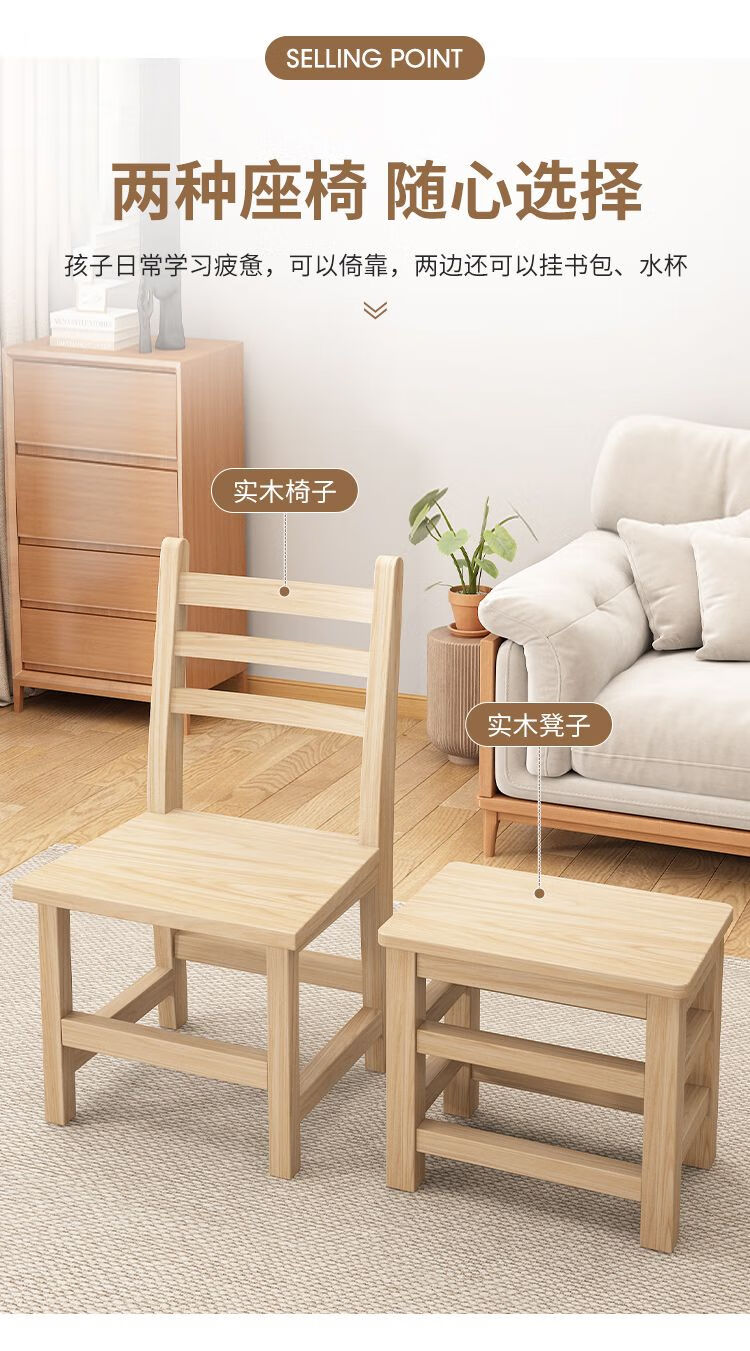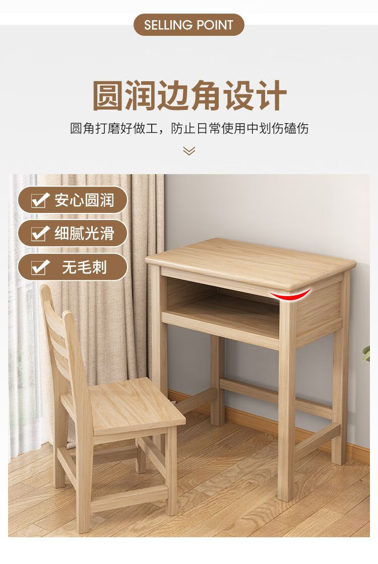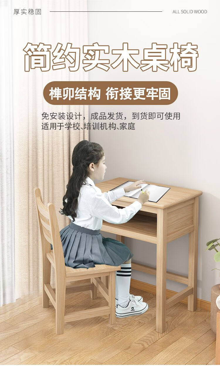 弘星隆京东配送实木课桌椅中小学生学校培训班桌椅凳套装家用课桌 【实木打造】学生椅*2