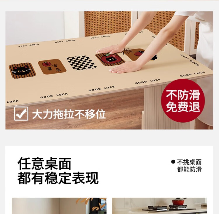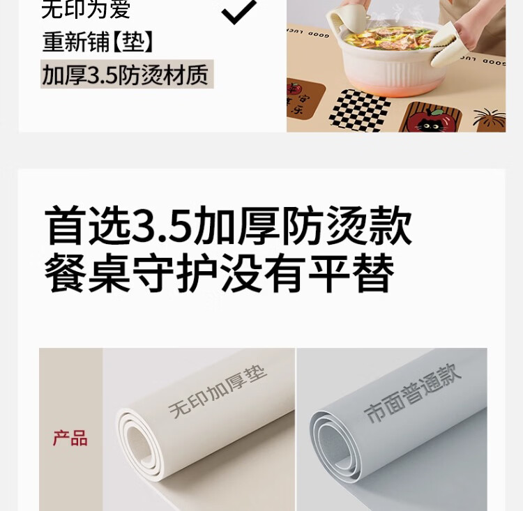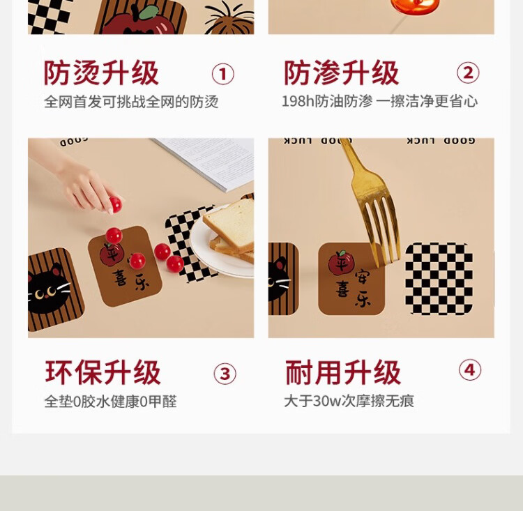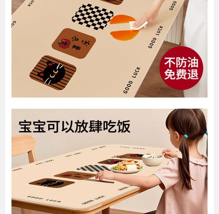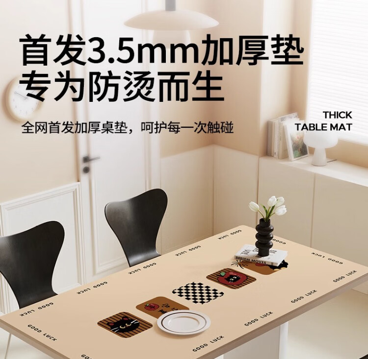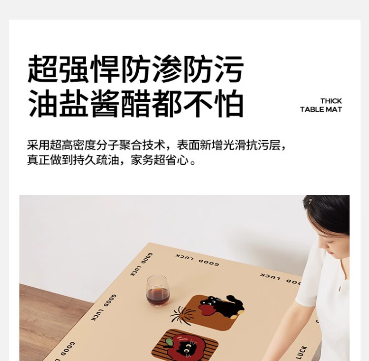 无印良品【加厚防烫】餐桌垫高级轻奢感防水防油免洗桌布茶几桌面保护垫 3.5mm加厚款-古趣喵纹【隔热防烫】 60*60cm【加厚款超防烫】