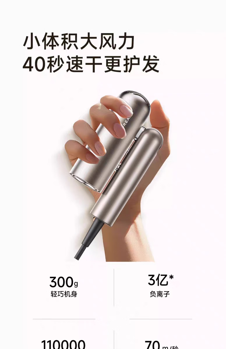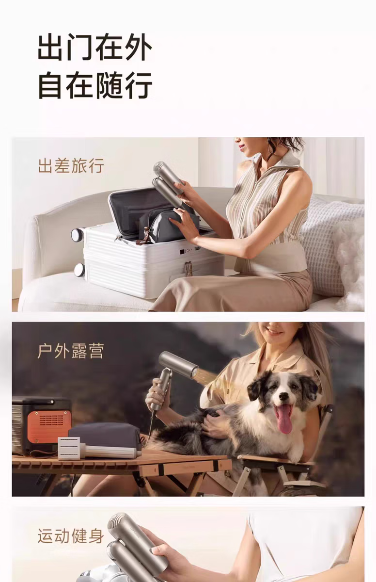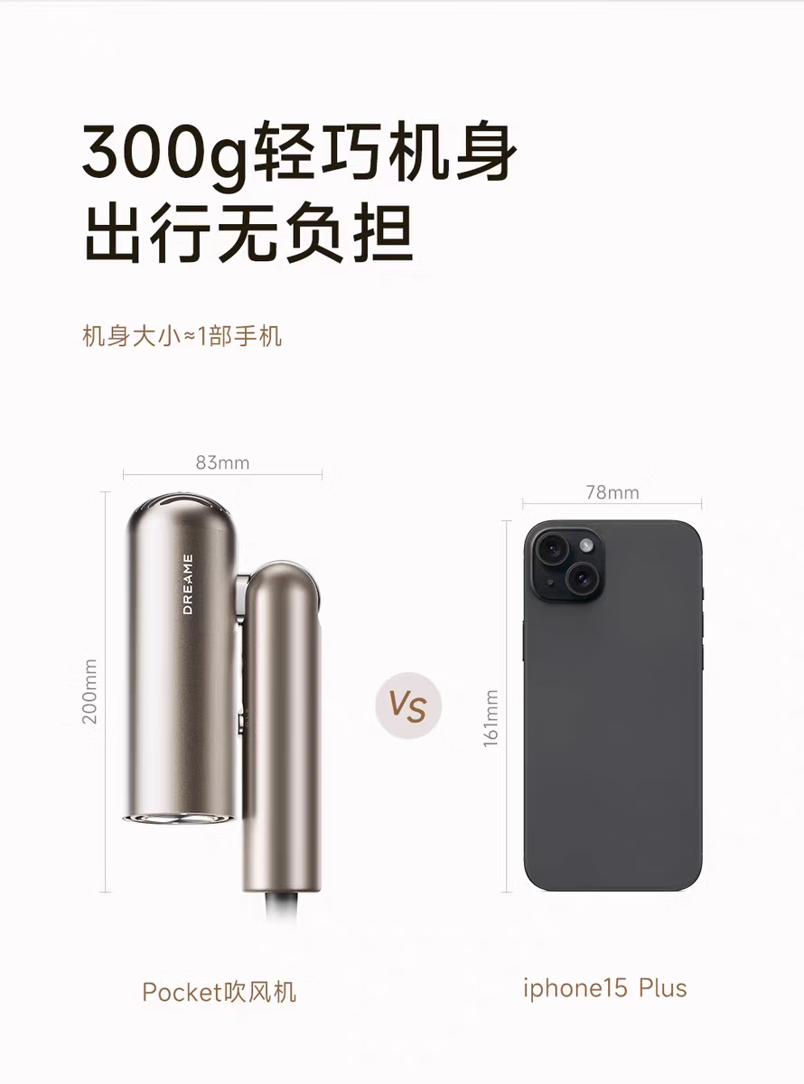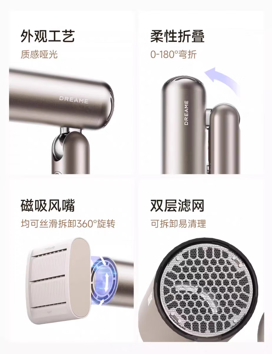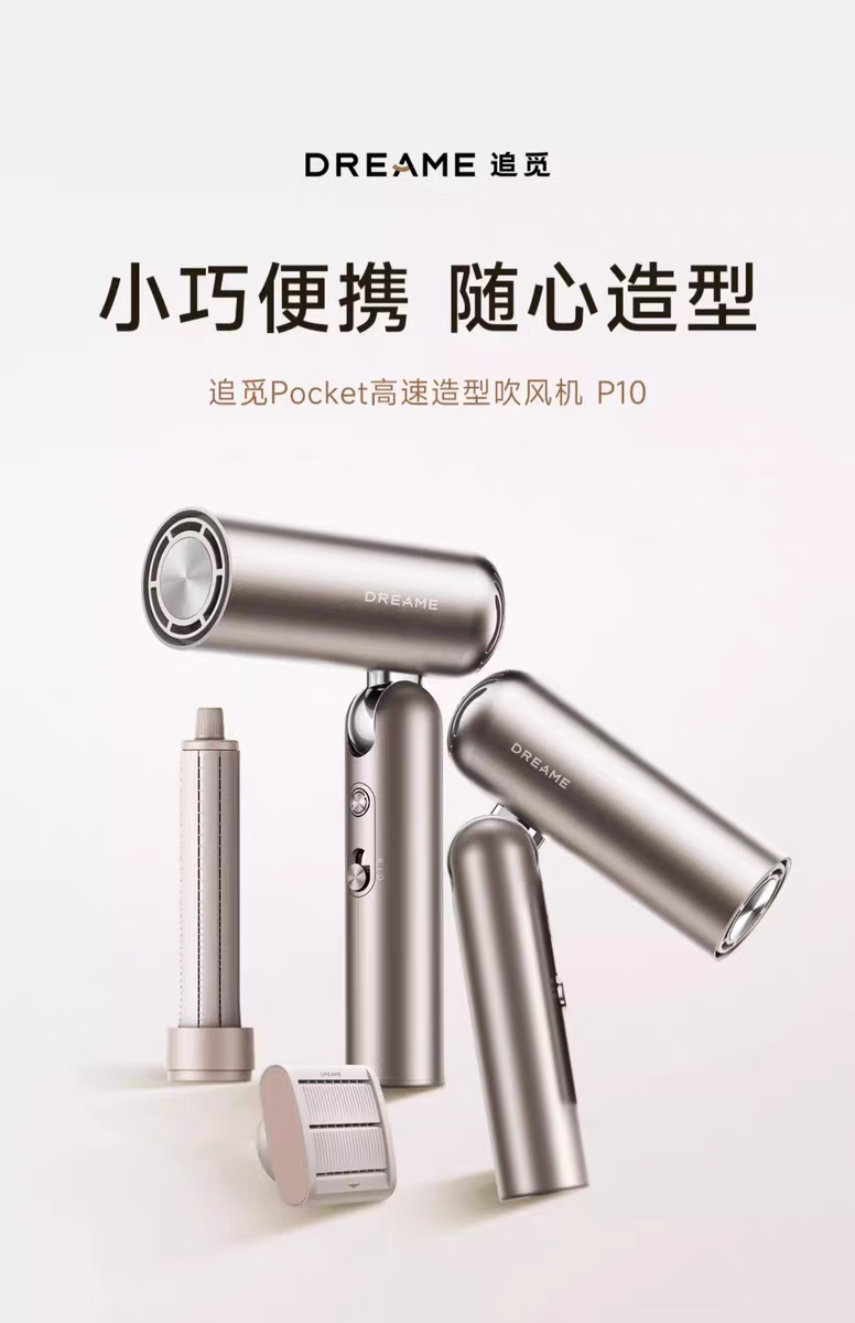 追觅吹风机P10 Pocket便携折叠迷你高速口袋造型师护发吹风筒快速干发低噪电吹风家用官翻机 P10 P 钛金色【小熨斗+卷发风嘴+收纳包】-B级