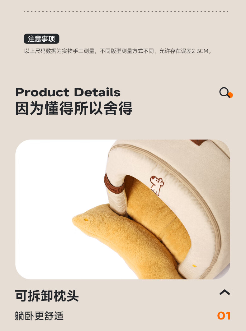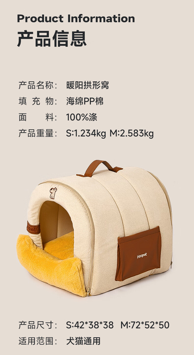 华元宠具(hoopet)暖绒拱形窝小狗小猫咪睡觉窝宠物睡袋小型犬可拆洗猫狗秋冬保暖窝