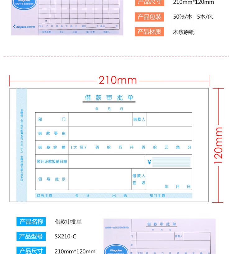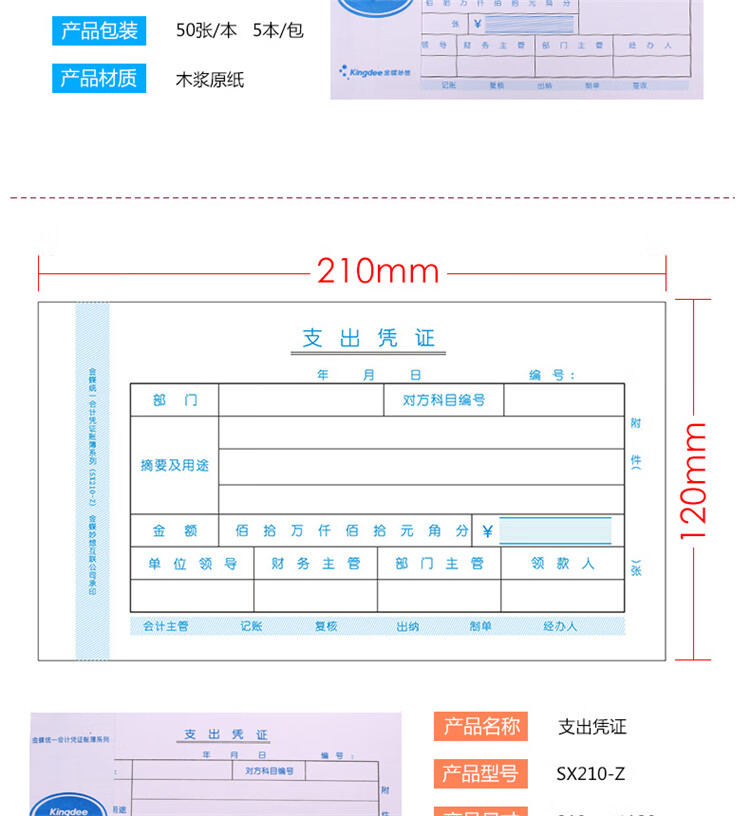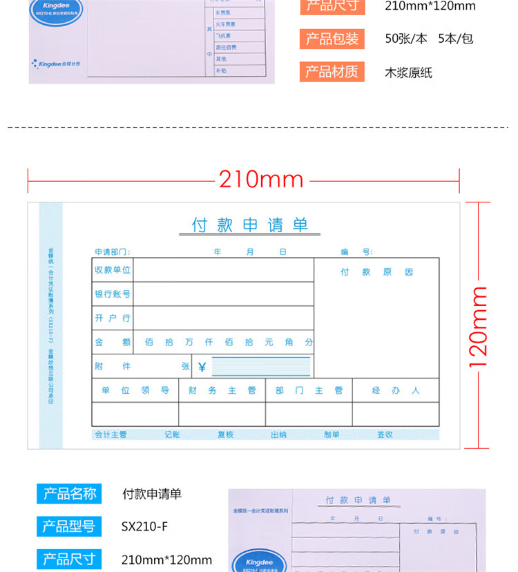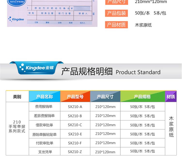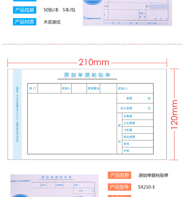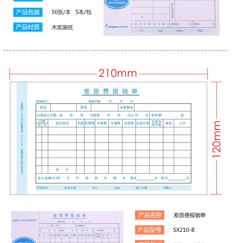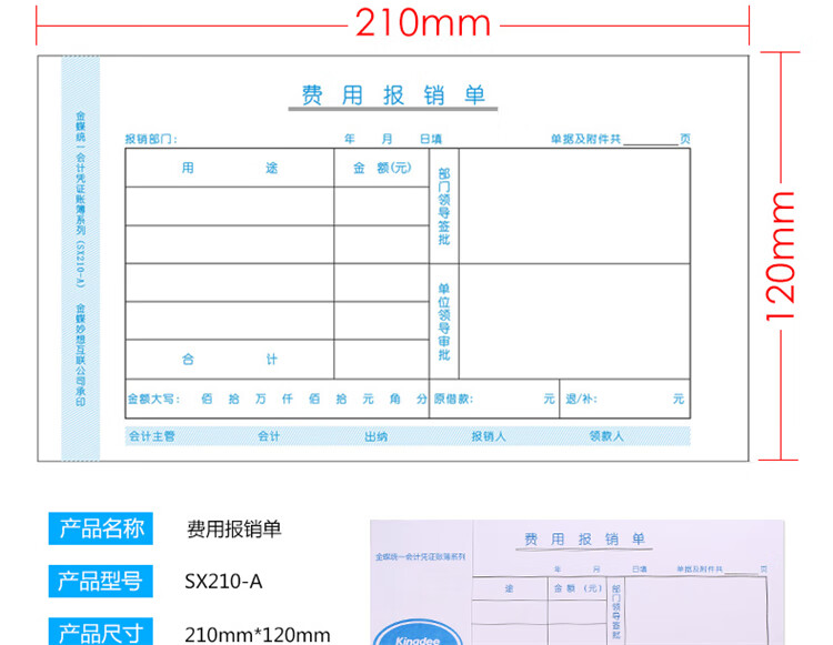 金蝶(kingdee)费用报销单通用财务手写单据210*120mm 5本/包 SX210-A