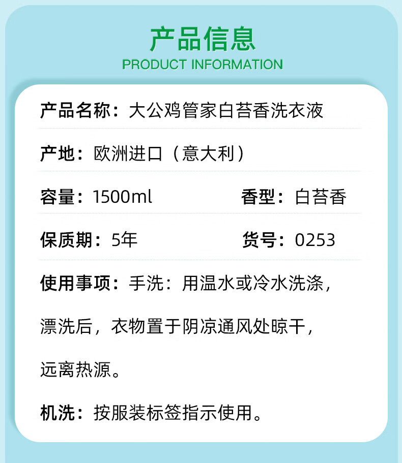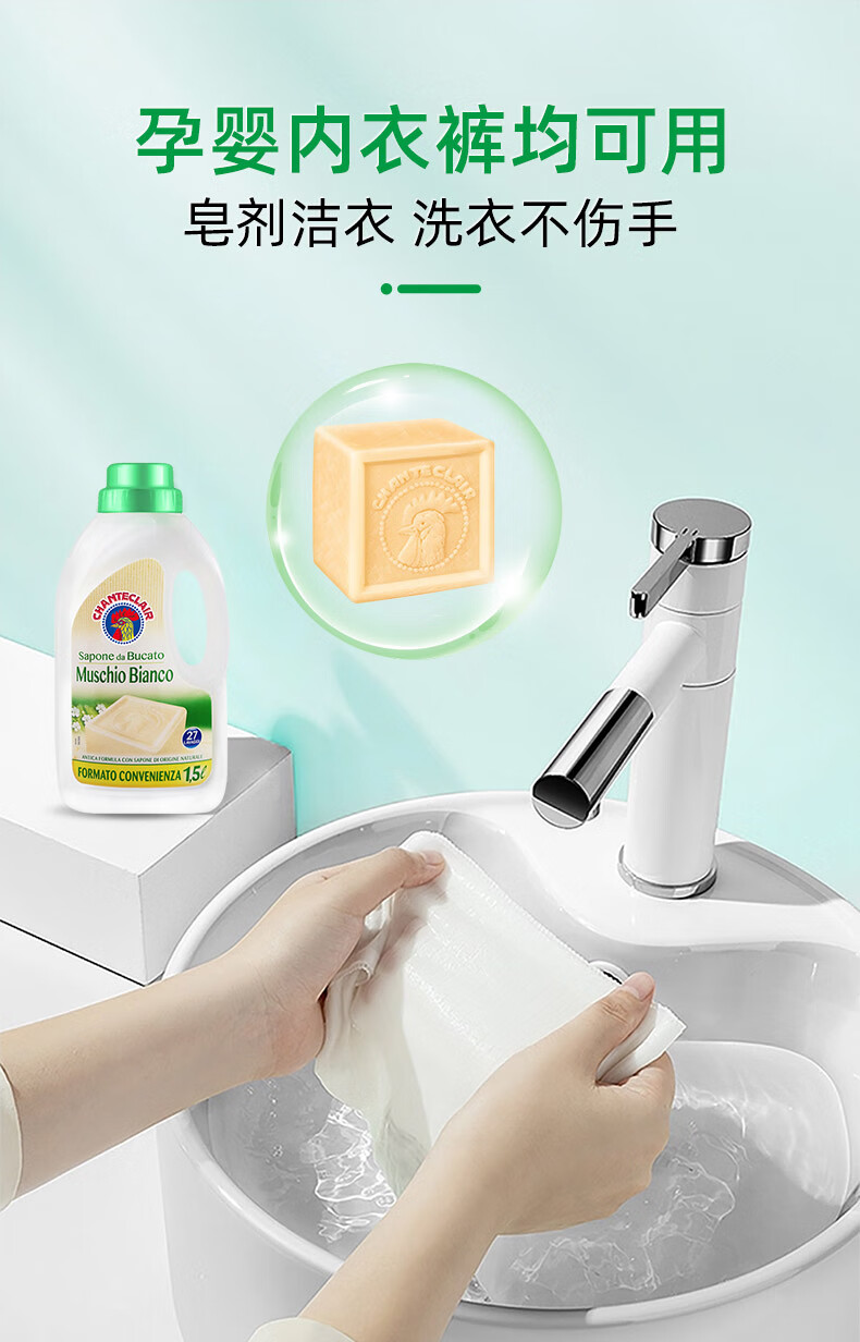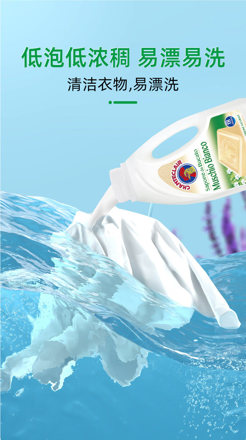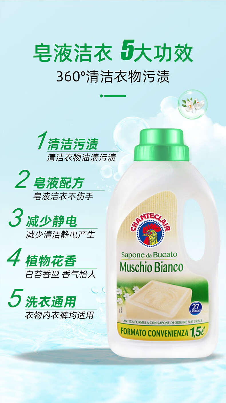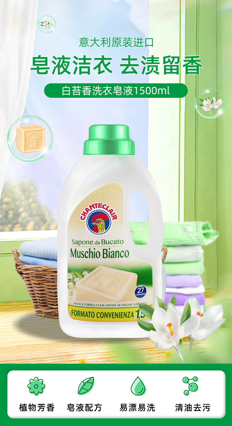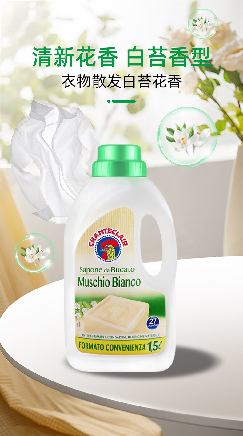 大公鸡管家意大利大公鸡管家液态洗衣皂洗衣液 衣物洗涤剂 易漂洗温和不伤手 白苔香洗衣液1500ml*3瓶