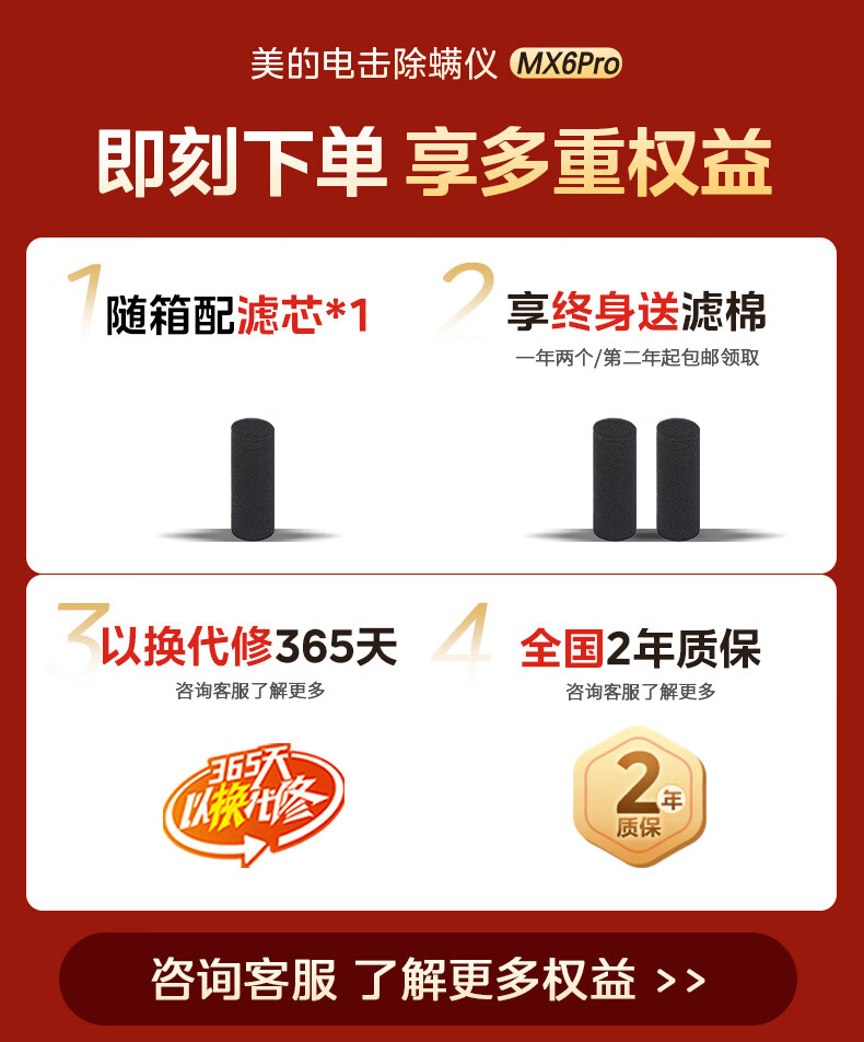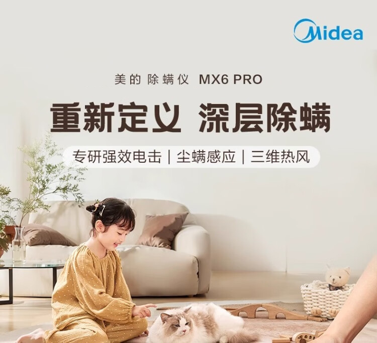 美的(Midea)除螨仪MX6pro【母婴级】双杯专利电击除螨虫 床宝床上吸尘器家用 手持吸尘除螨一体机政府补贴