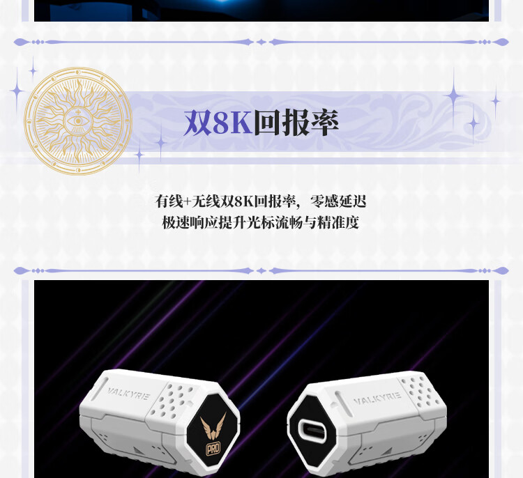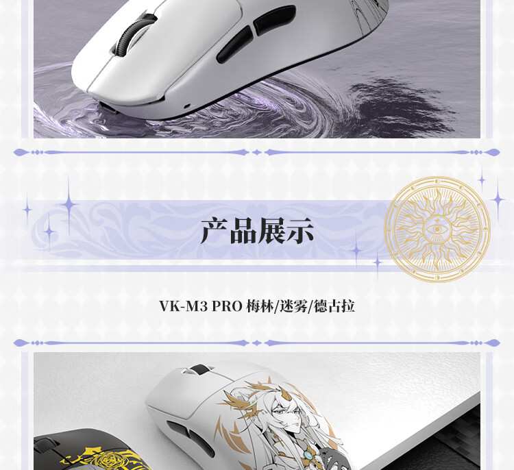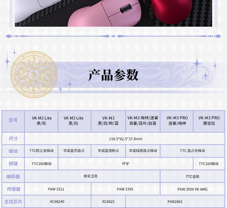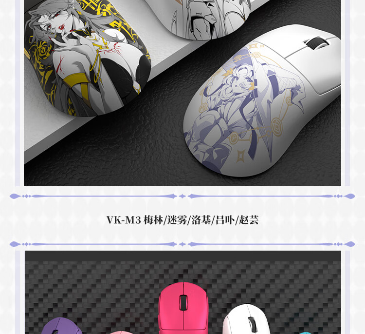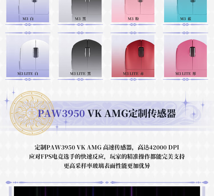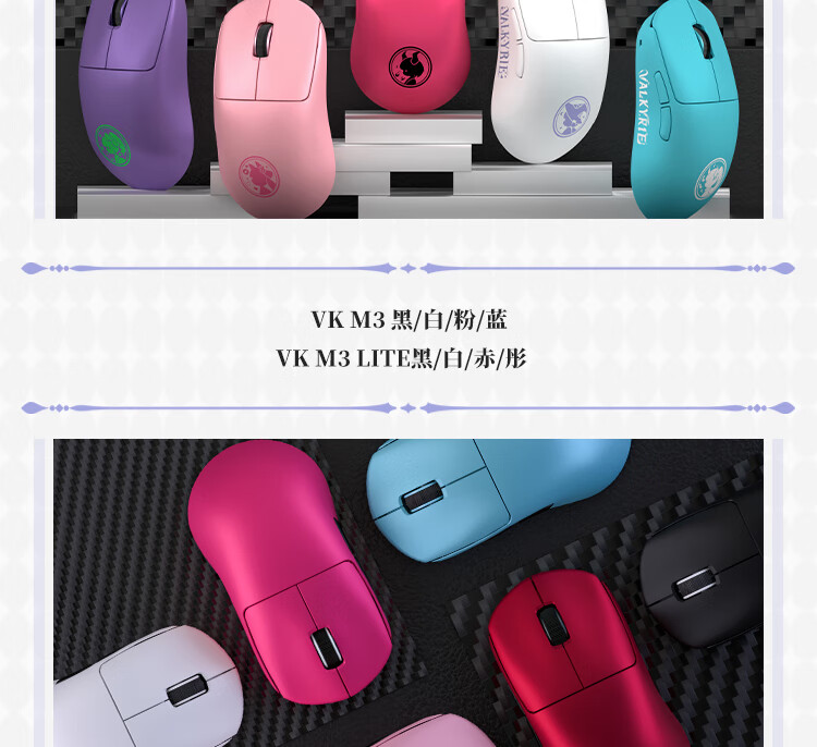 瓦尔基里(VALKYRIE)VK M3 有线/2.4G/蓝牙三模电竞鼠标 8K无线接收器 40g轻量化 对称收腰电竞鼠 VK M3 Lite 彤+防滑贴