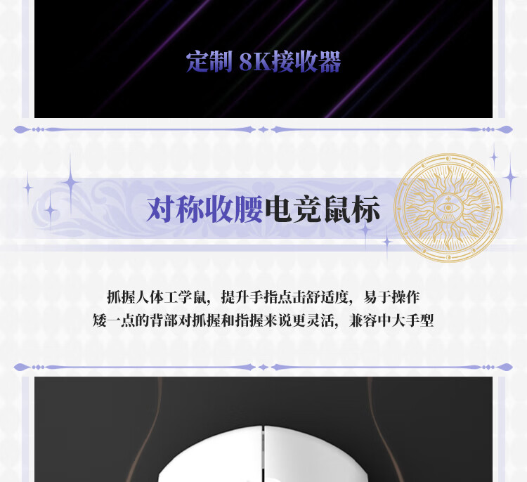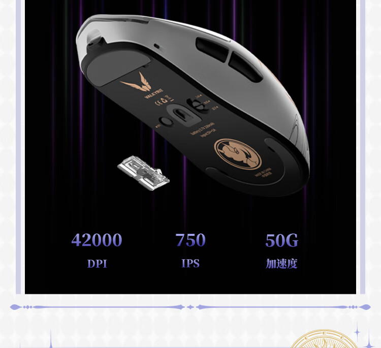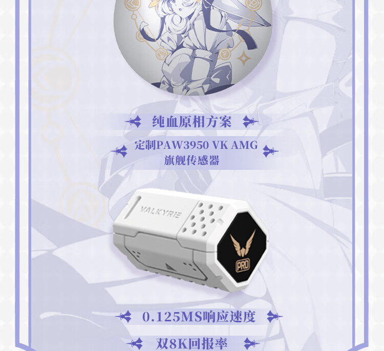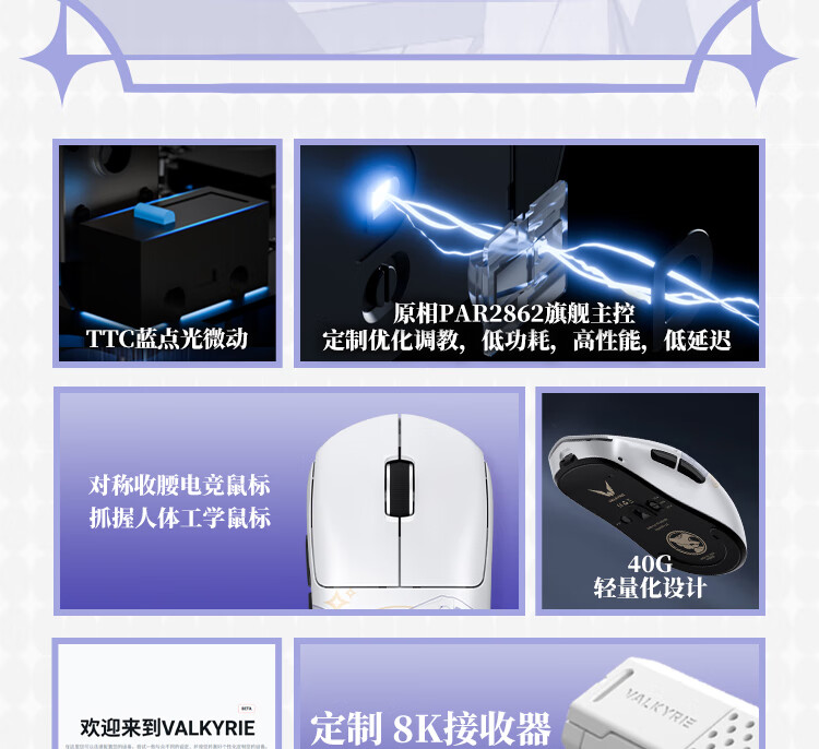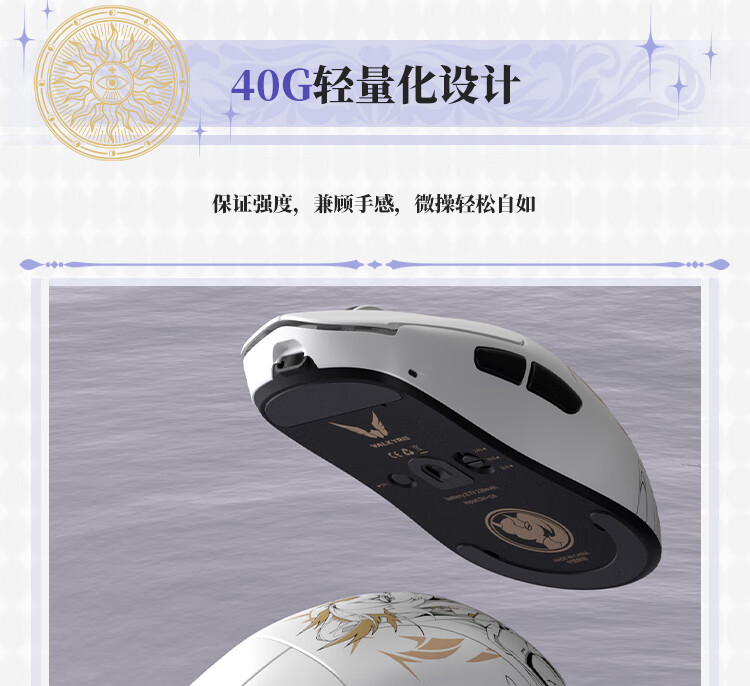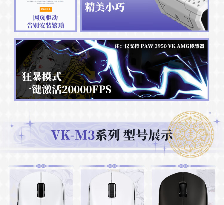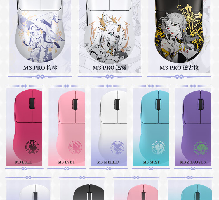 瓦尔基里(VALKYRIE)VK M3 有线/2.4G/蓝牙三模电竞鼠标 8K无线接收器 40g轻量化 对称收腰电竞鼠 VK M3 Lite 彤+防滑贴