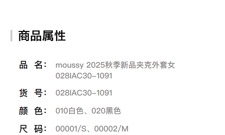 moussy 2025冬季新品撞色90立领短款羽绒夹克外套女028IAC30-1091 010白色 S