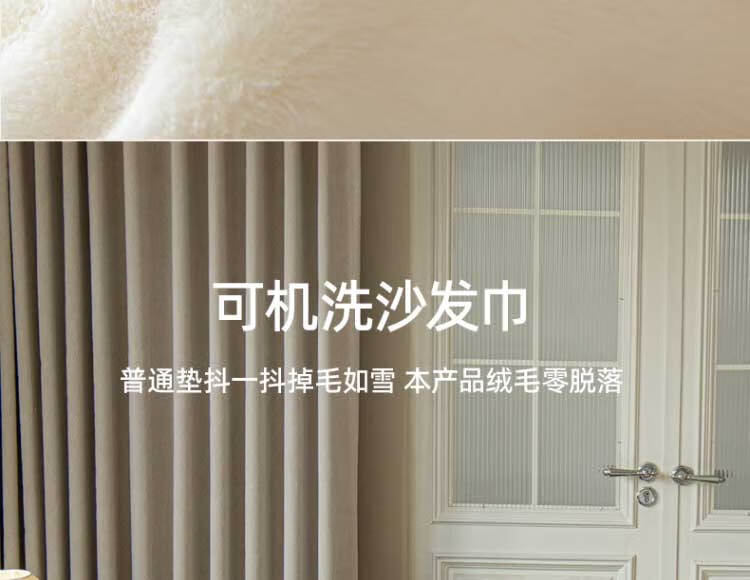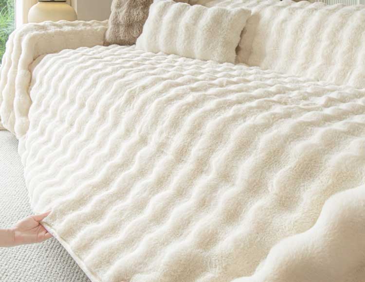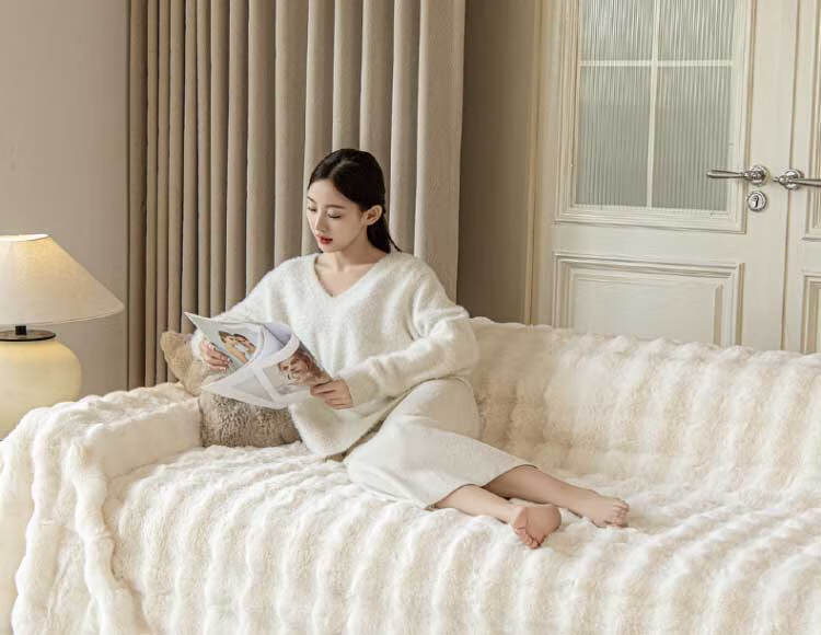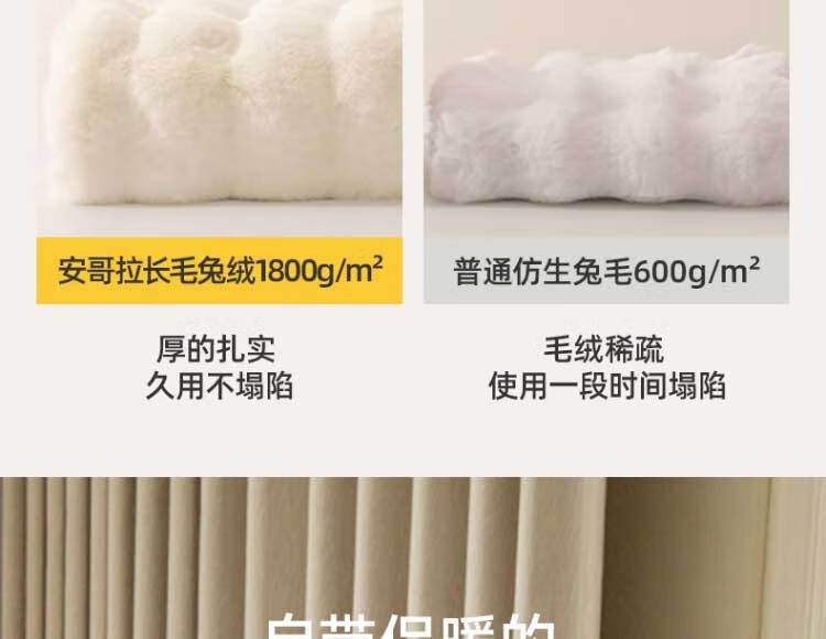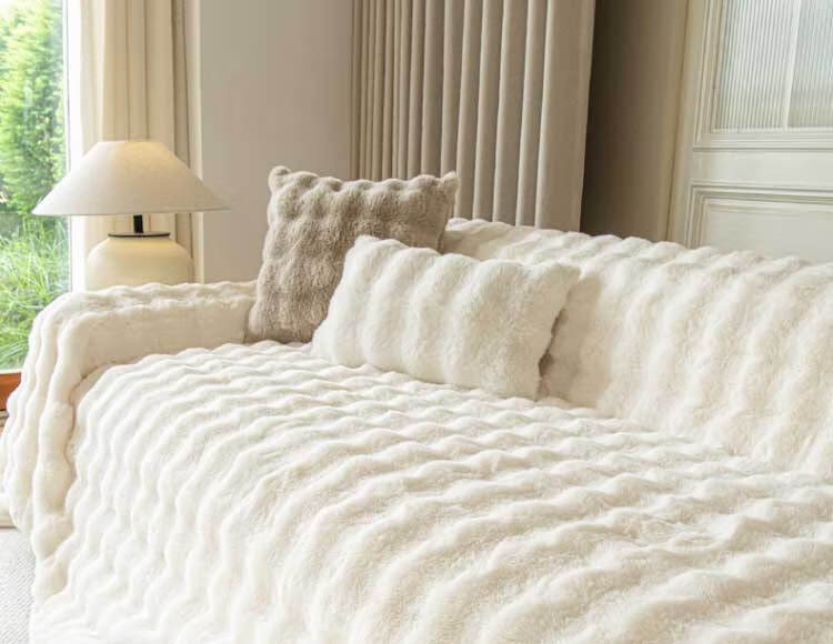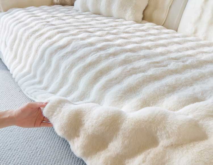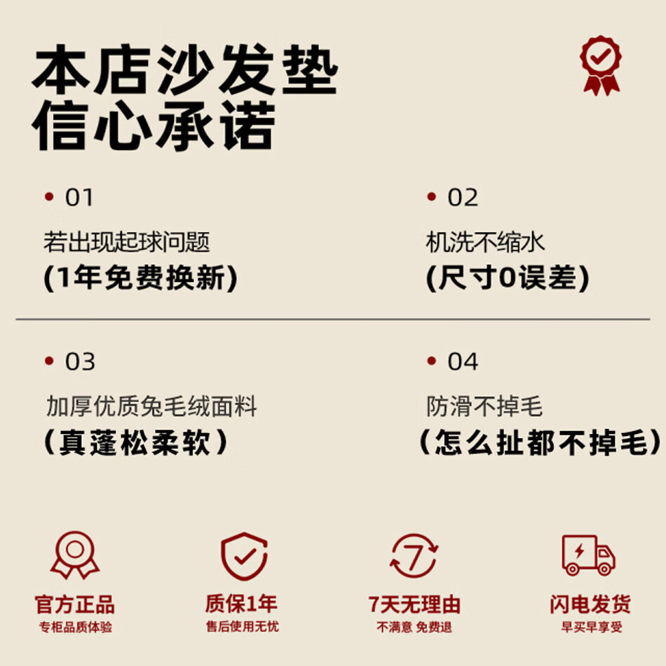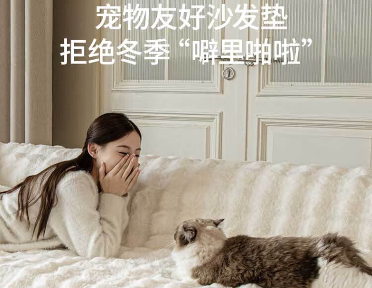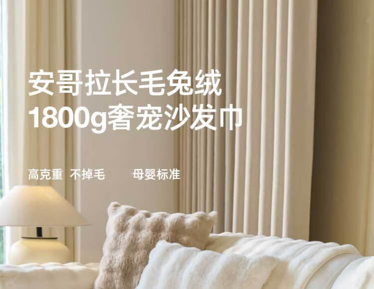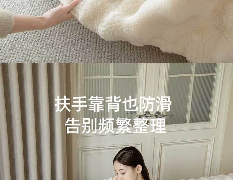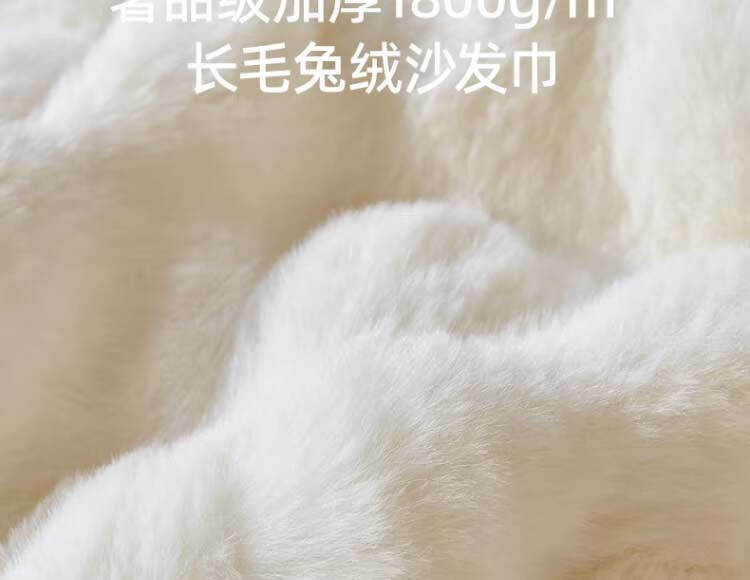 无印良品沙发垫冬季加厚毛绒沙发座垫皮沙发专用垫防滑沙发坐垫沙发盖罩布 1600g/m长毛兔兔绒-米白 90*240cm