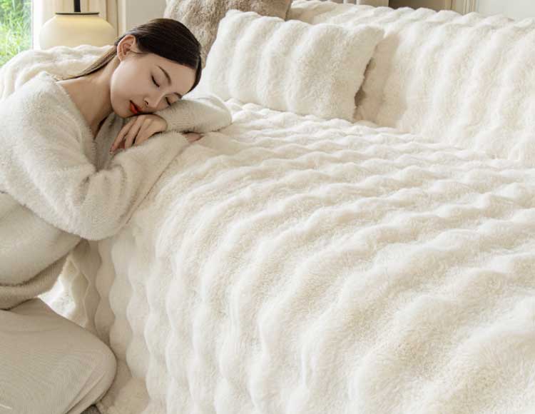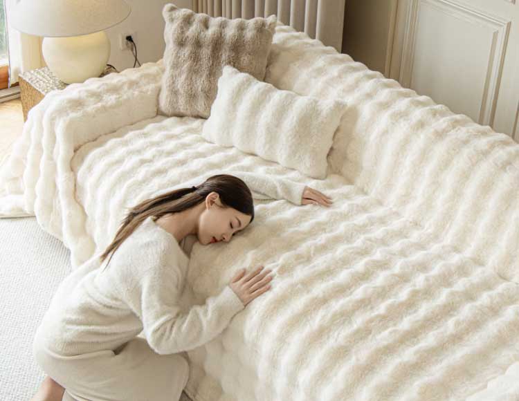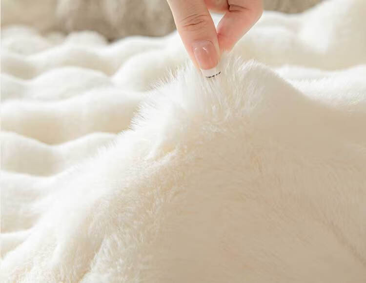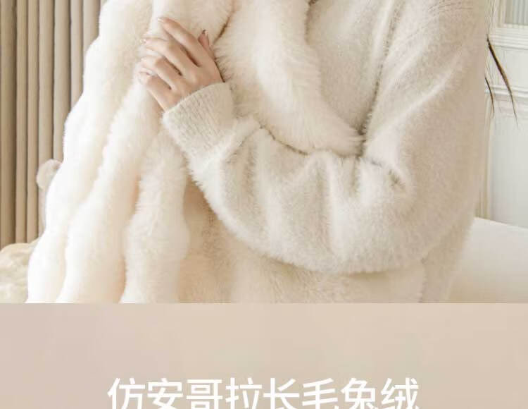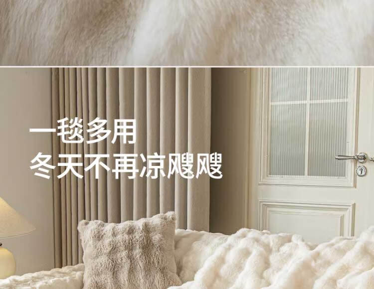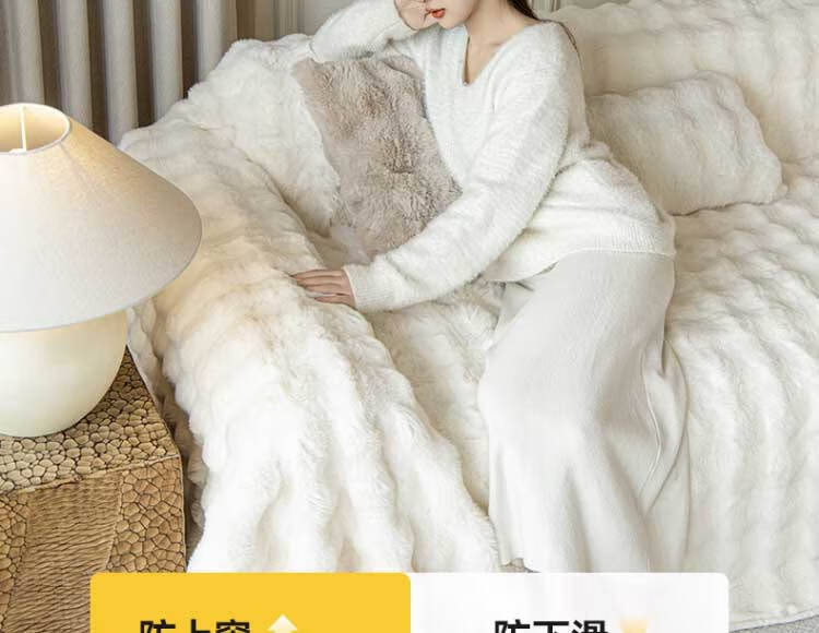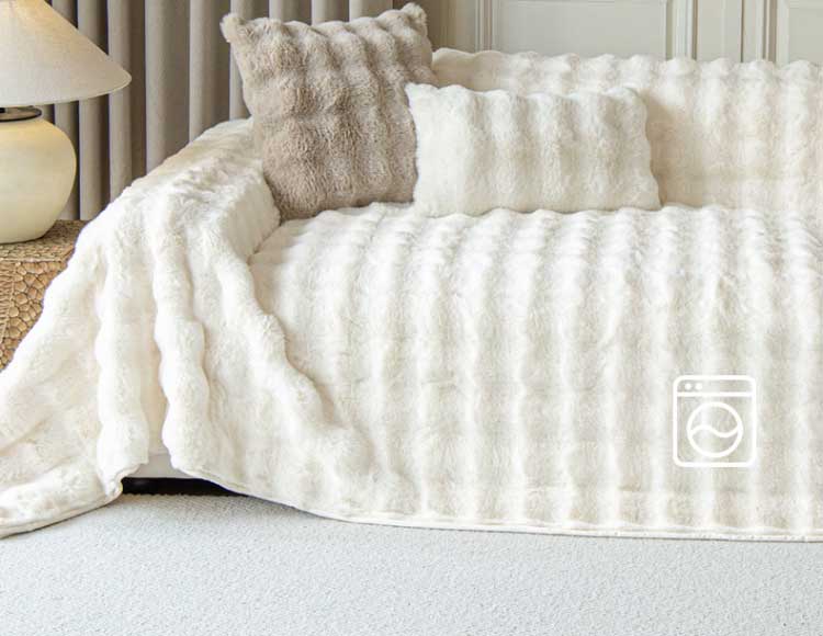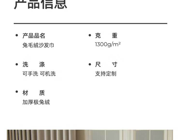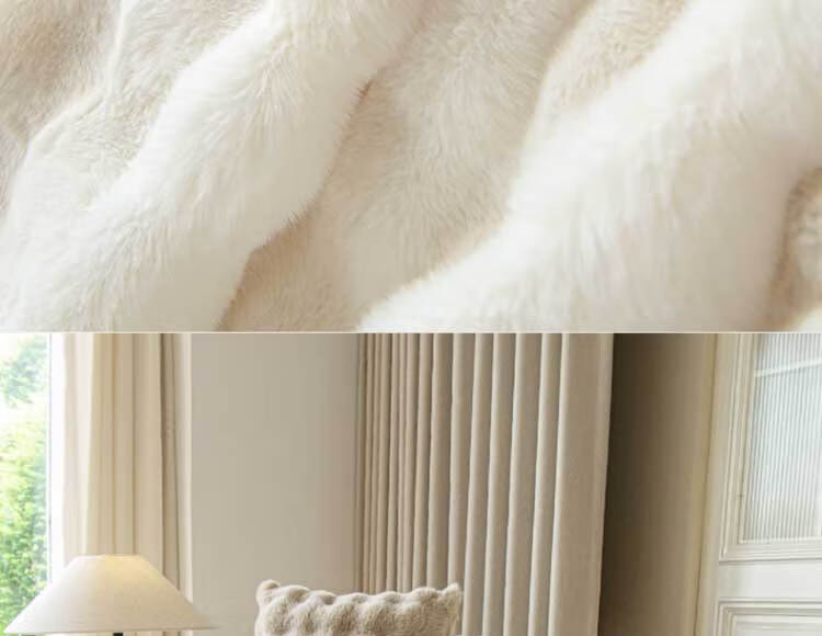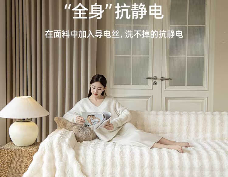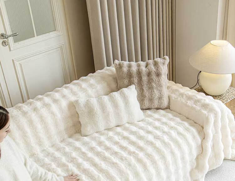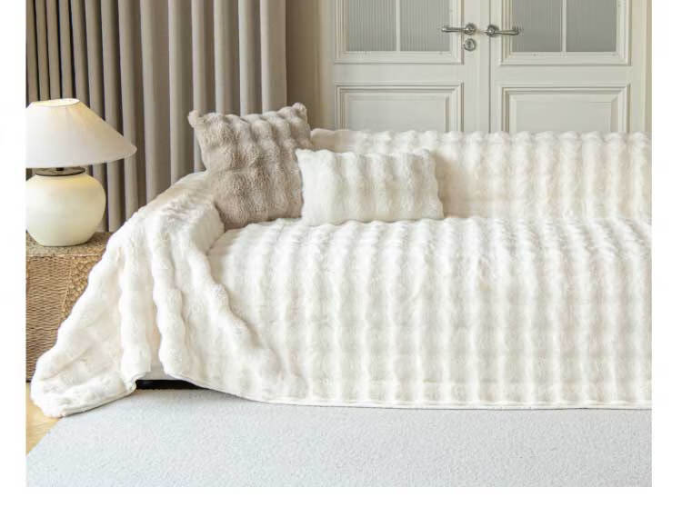 无印良品沙发垫冬季加厚毛绒沙发座垫皮沙发专用垫防滑沙发坐垫沙发盖罩布 1600g/m长毛兔兔绒-米白 90*240cm