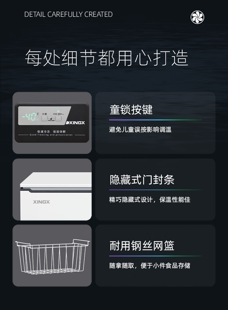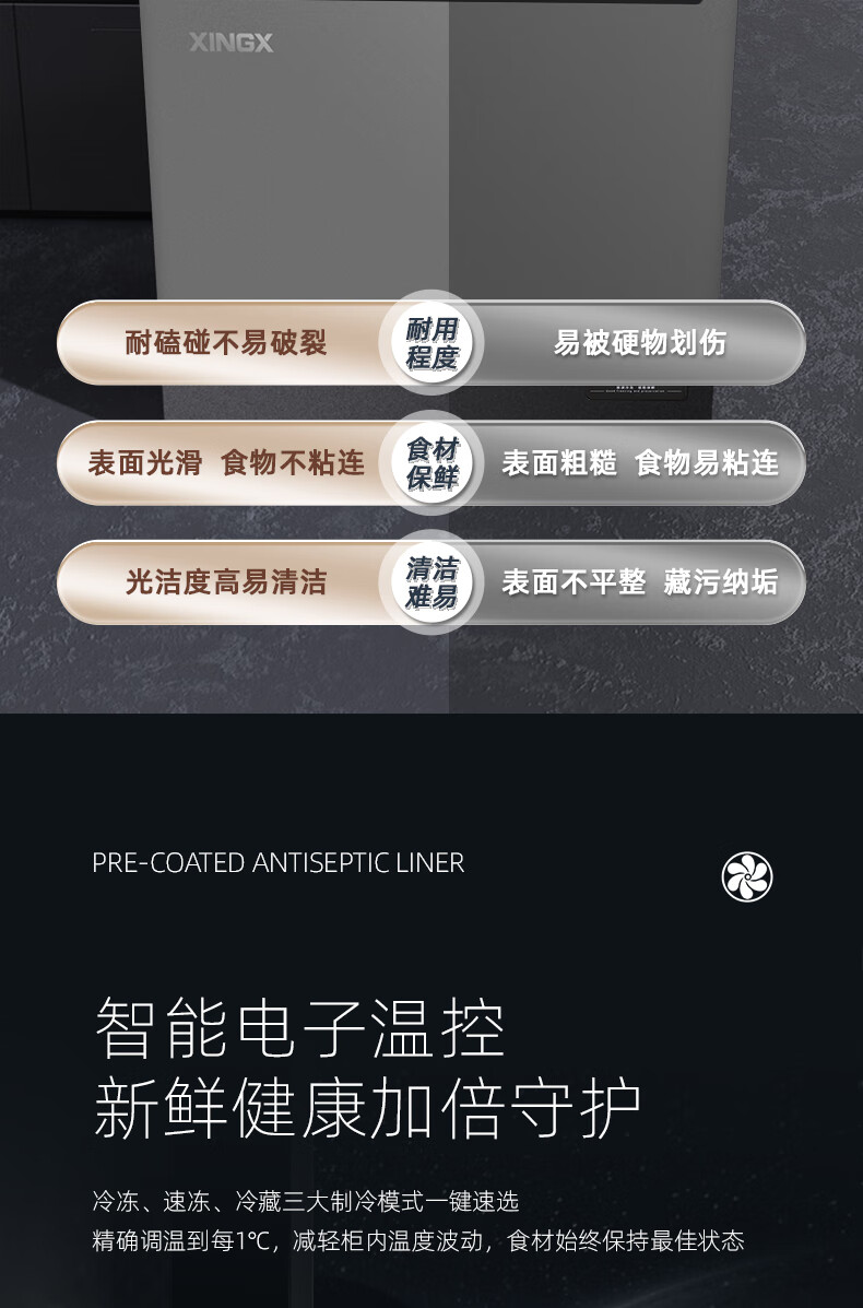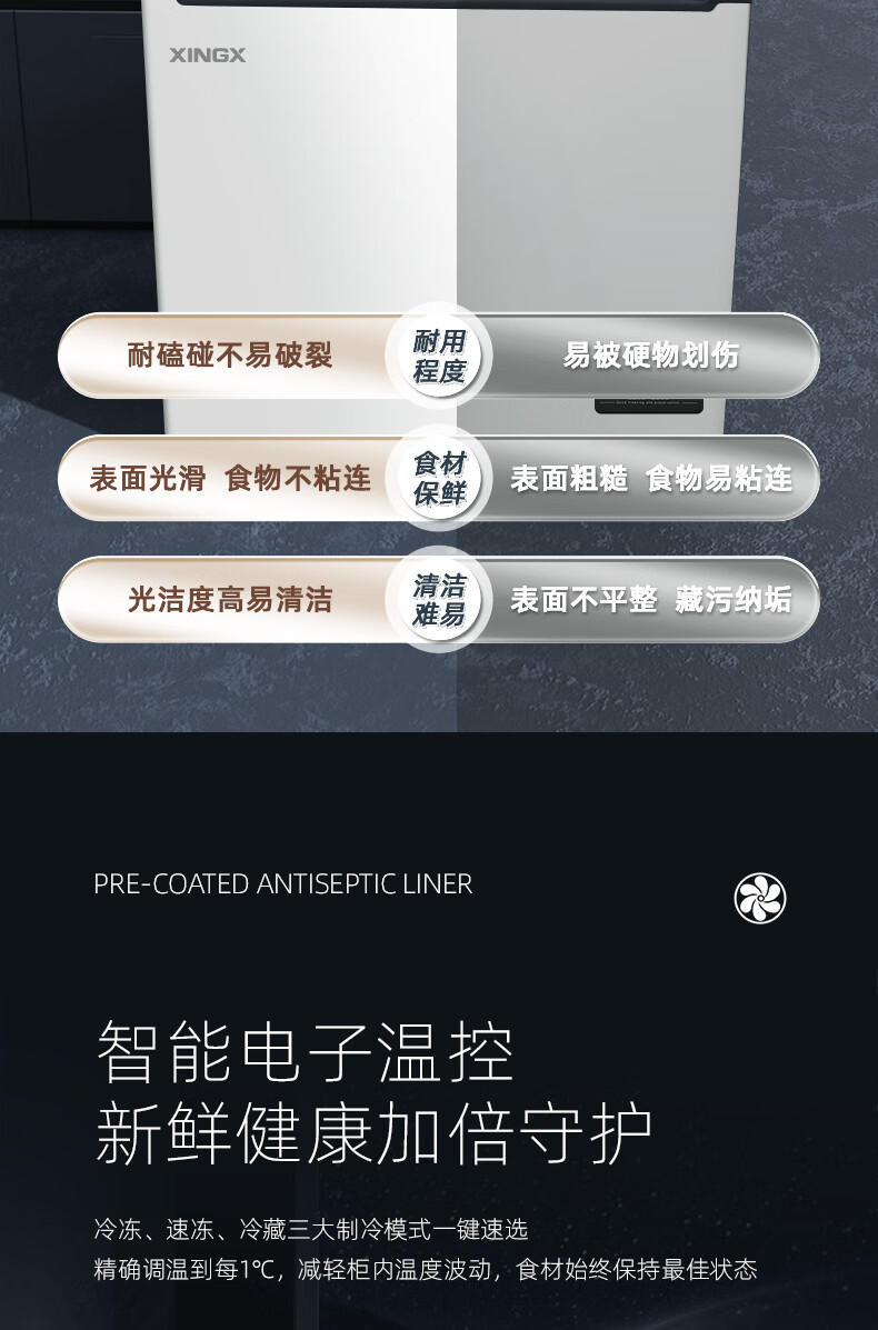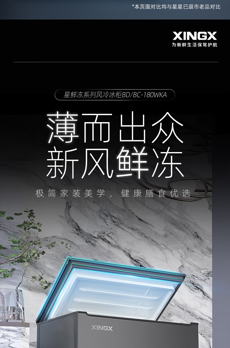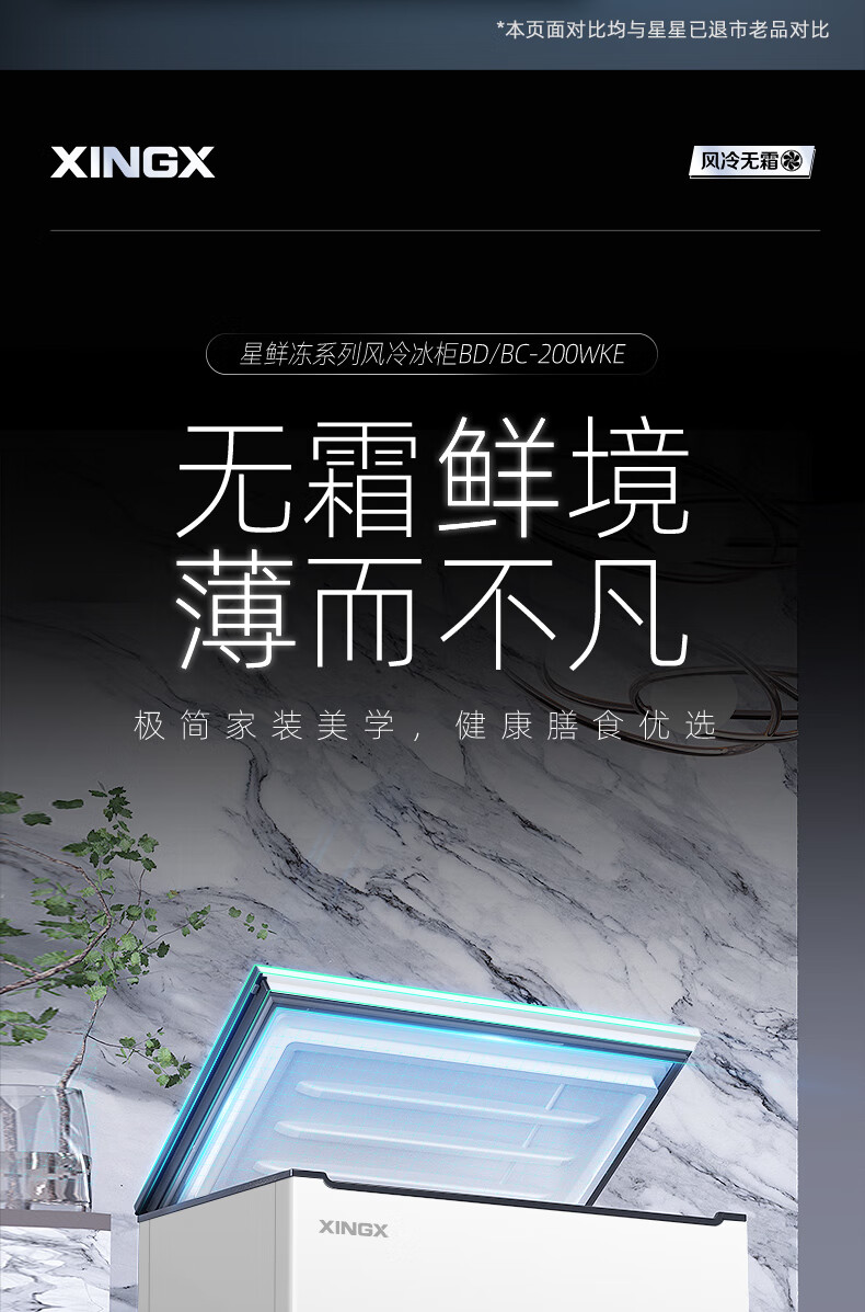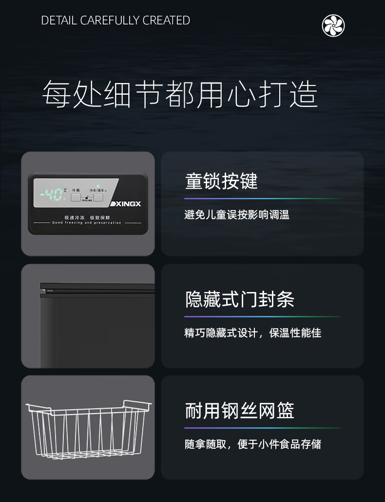 星星(XINGX)【专利风冷无霜冰柜】-40°C超低温细胞级冷冻海鲜速冻卧式家用冰柜 冷藏冷冻柜 新一级能效 补贴 170升 -30°C低温速冻|四代风冷无霜|电子控温
