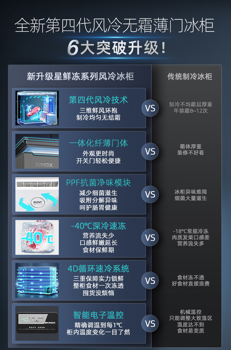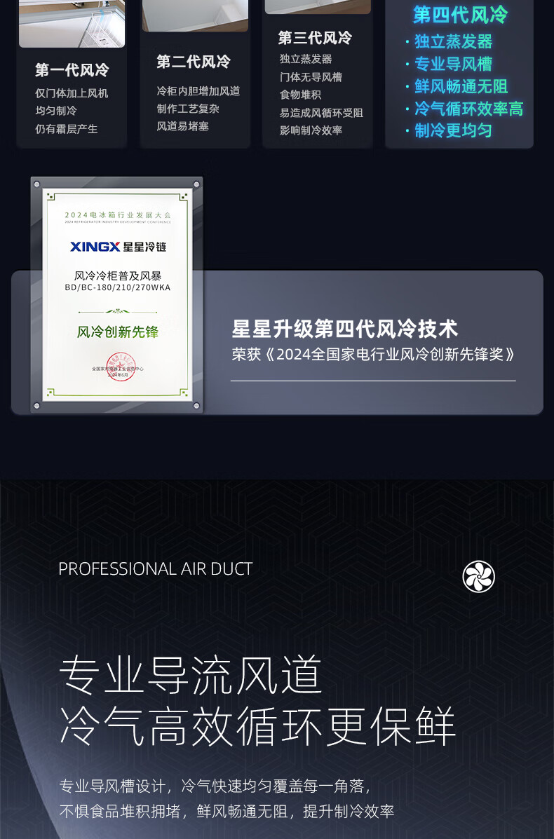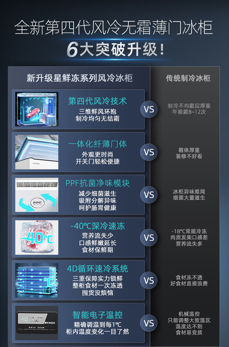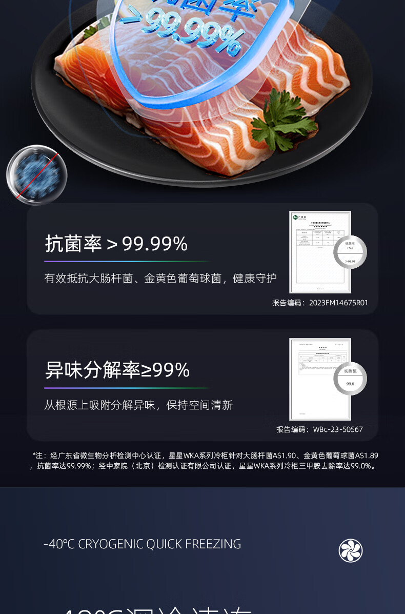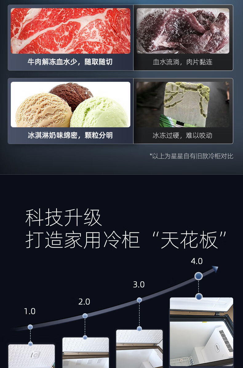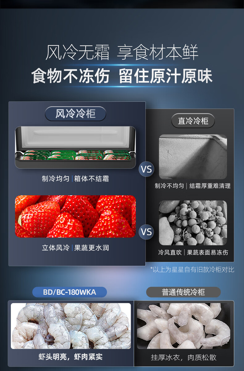 星星(XINGX)【专利风冷无霜冰柜】-40°C超低温细胞级冷冻海鲜速冻卧式家用冰柜 冷藏冷冻柜 新一级能效 补贴 170升 -30°C低温速冻|四代风冷无霜|电子控温