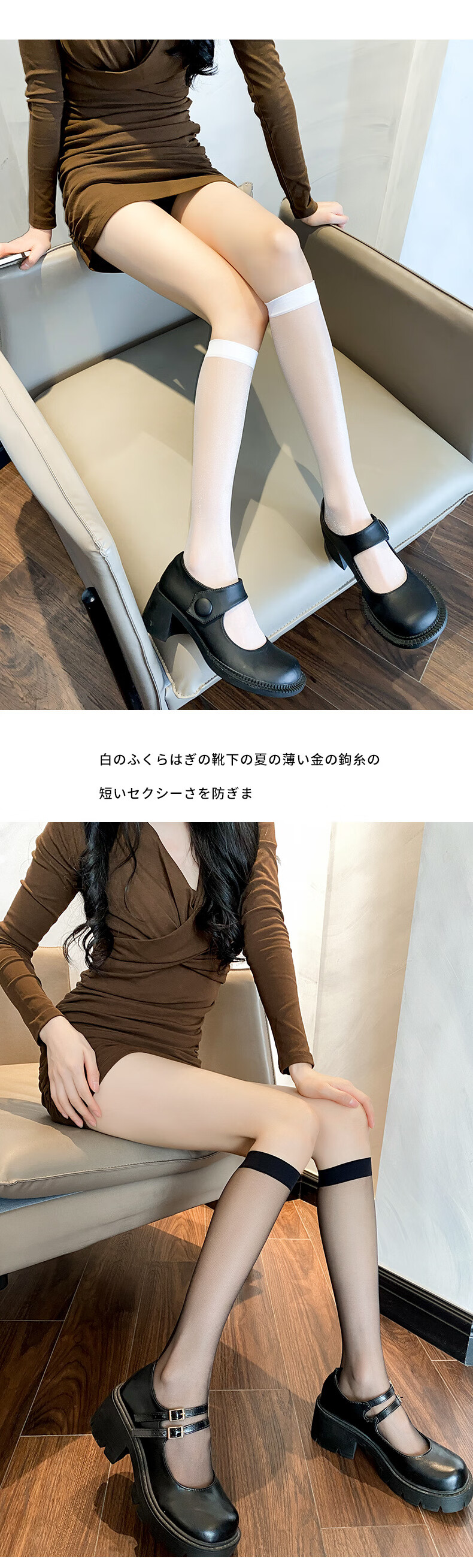 【现货现发】丝袜女夏超薄珠光小腿袜黑色性感防勾丝中筒袜jk过膝 5D小腿款大约40cm 黑色 均码