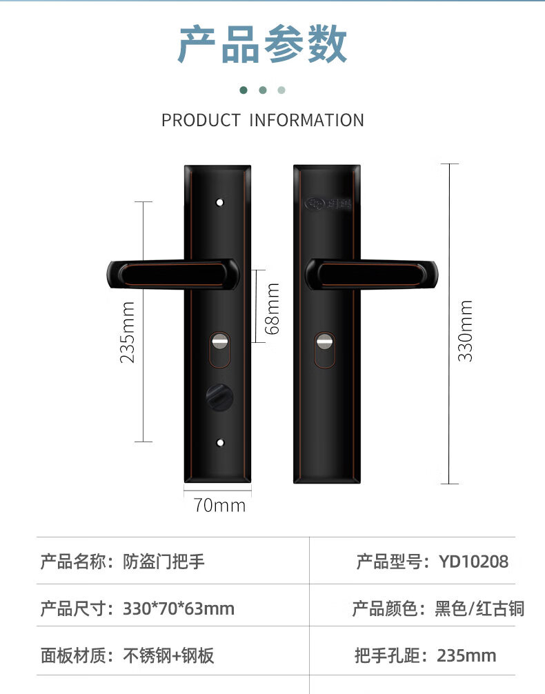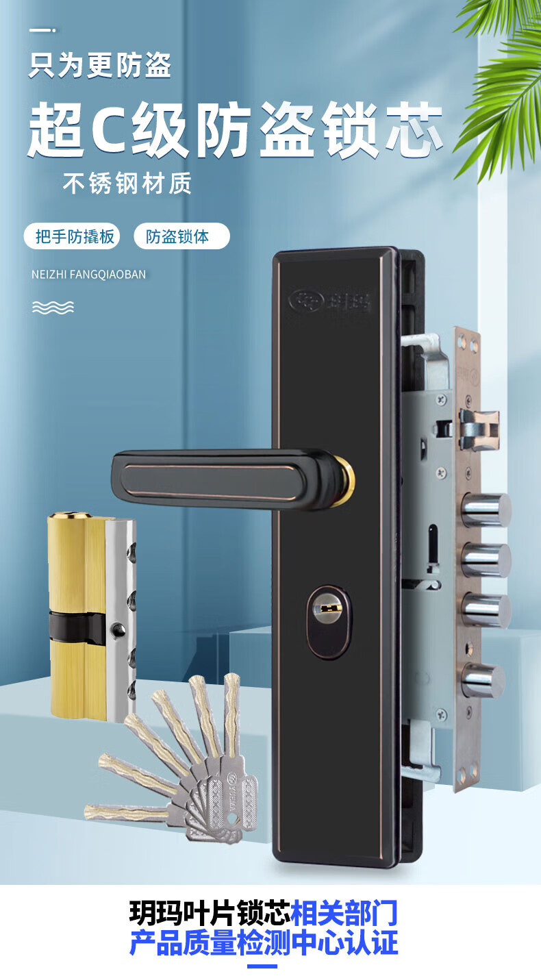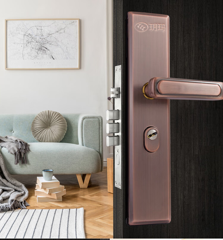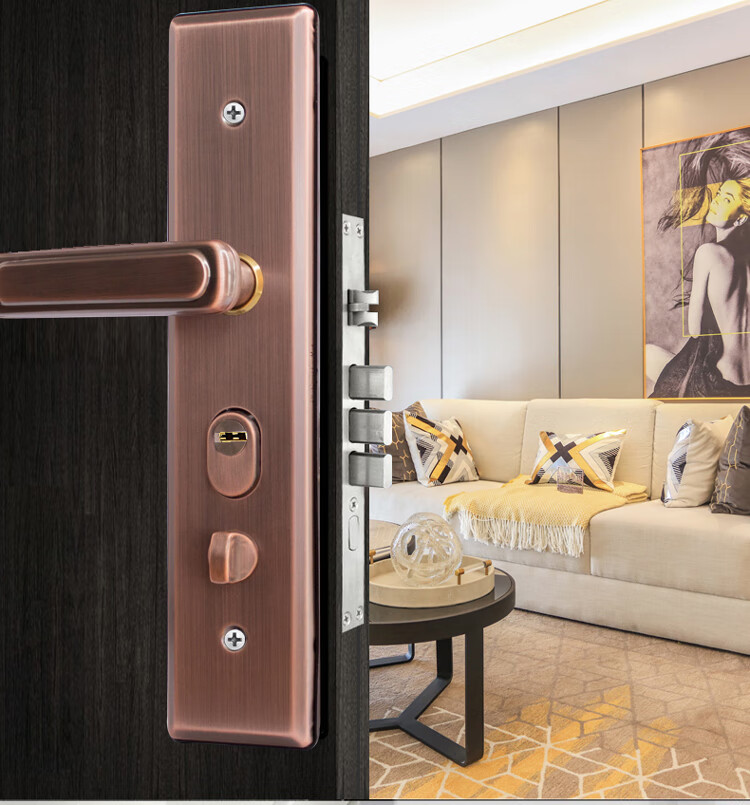 玥玛防盗门锁套装入户大门锁整套超C级锁芯不锈钢防盗门把手上门安装 红古铜套装上门安装
