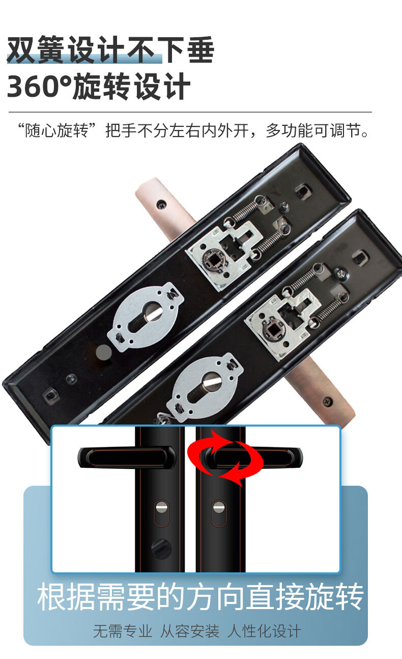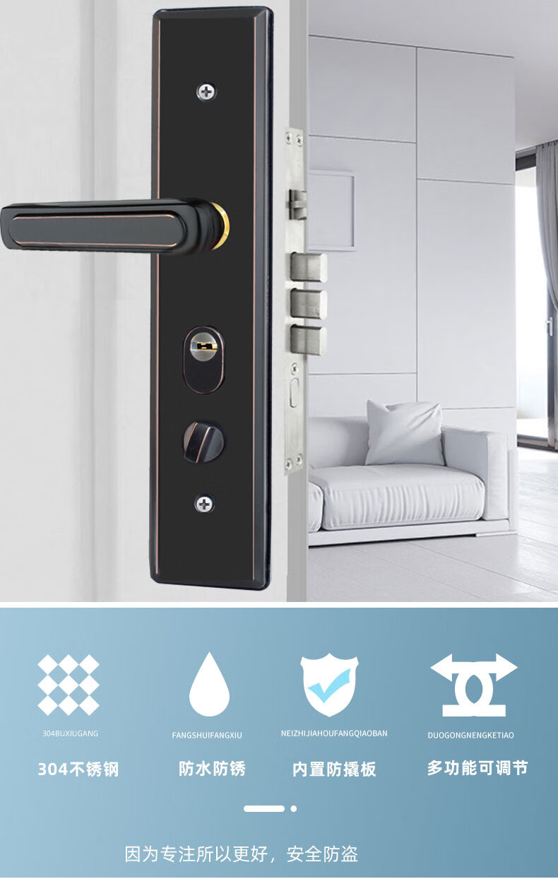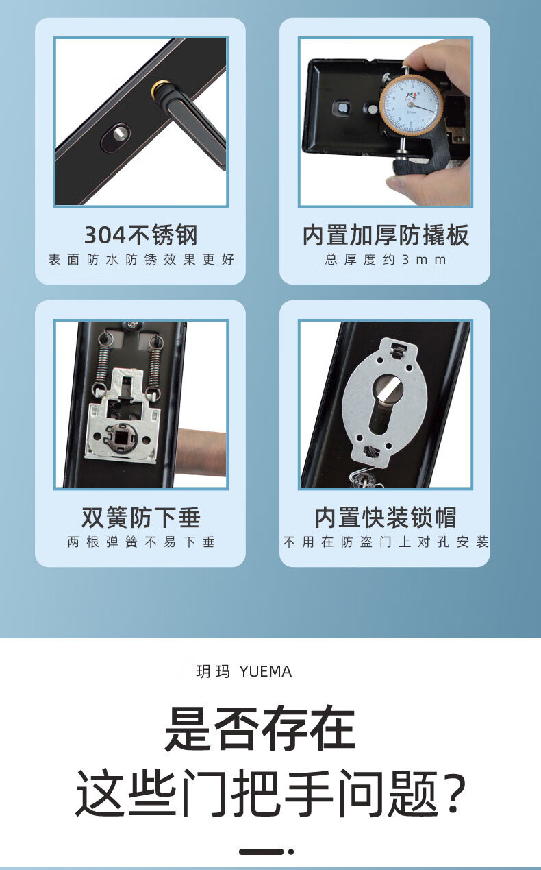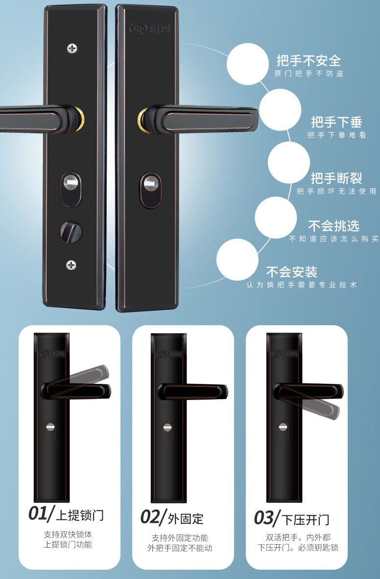 玥玛防盗门锁套装入户大门锁整套超C级锁芯不锈钢防盗门把手上门安装 红古铜套装上门安装