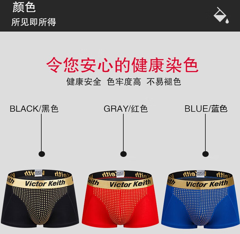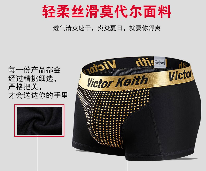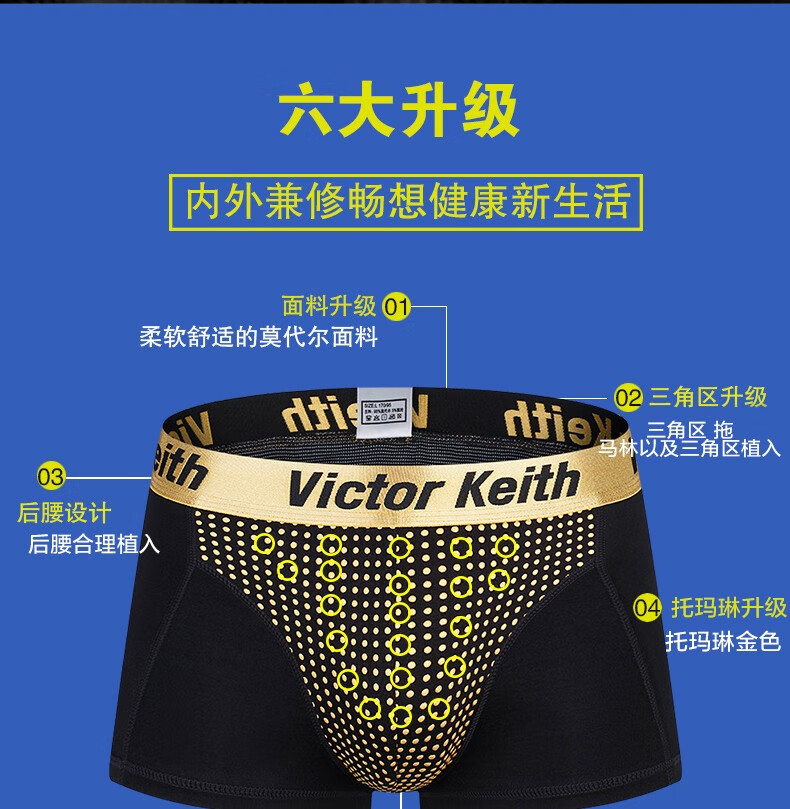 Victor Keith英国卫裤官方正品男士高档内裤保健莫代尔磁石疗大粗硬长多功能量 加强升级版2黑1红 3条 2XL (140斤到160斤左右)
