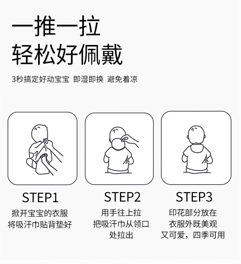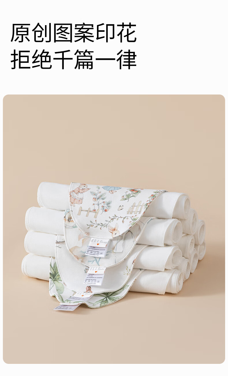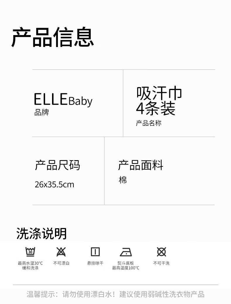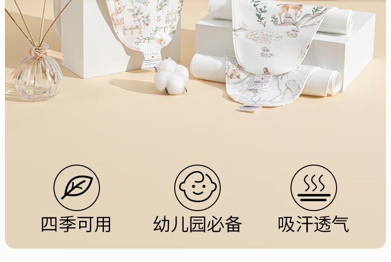 ELLE BABY儿童隔汗巾4条装宝宝吸汗巾纯棉纱布垫背巾四季通用透气防着凉 26 35.5条装 混合4色 26*35.5