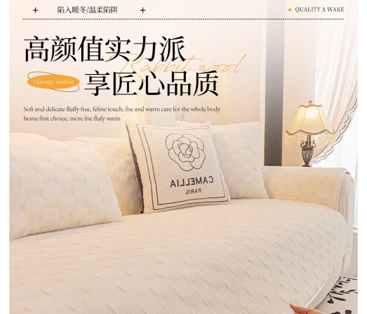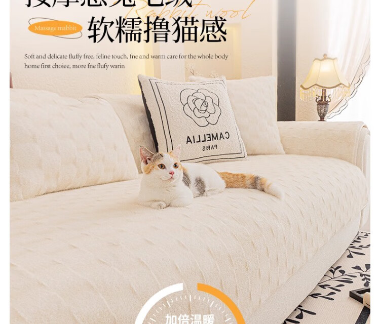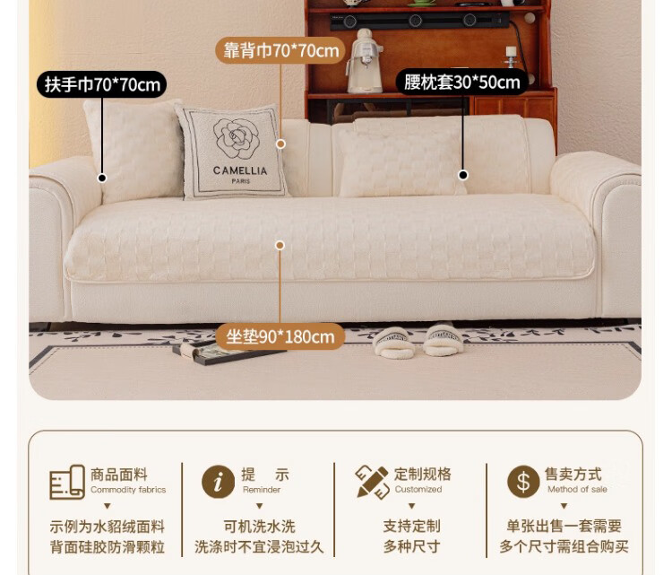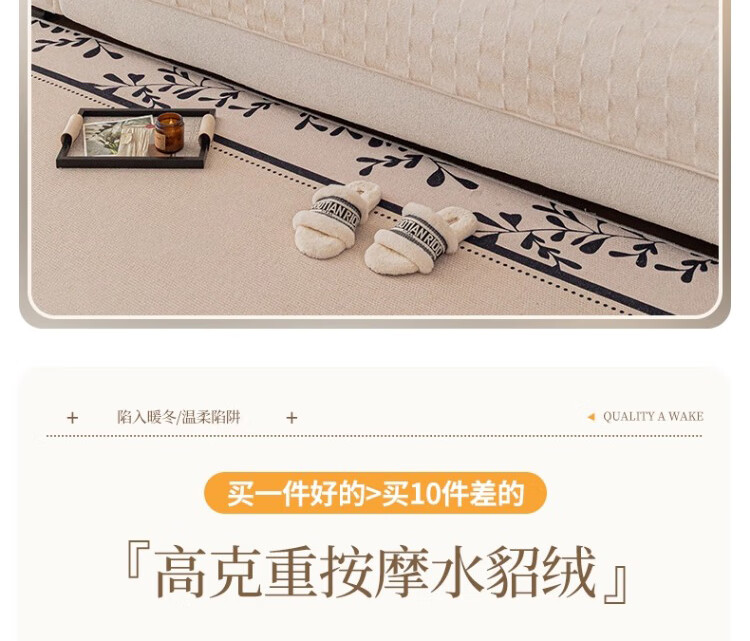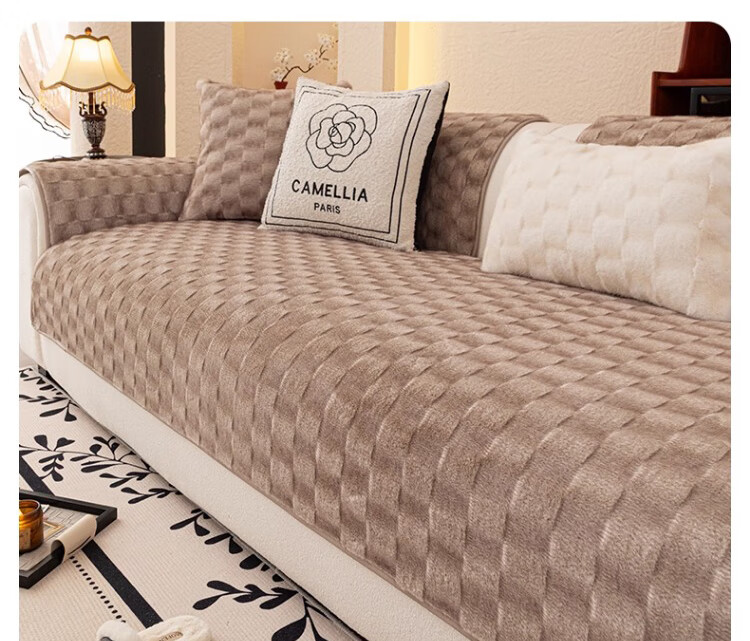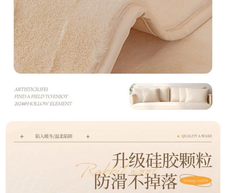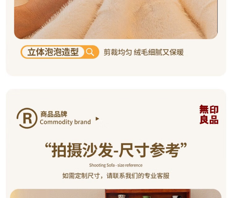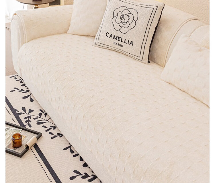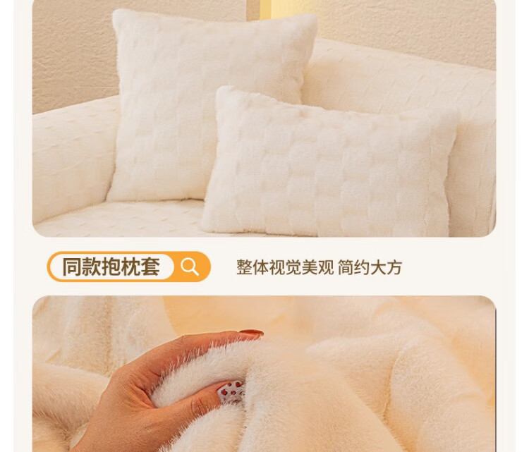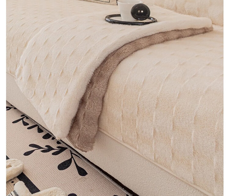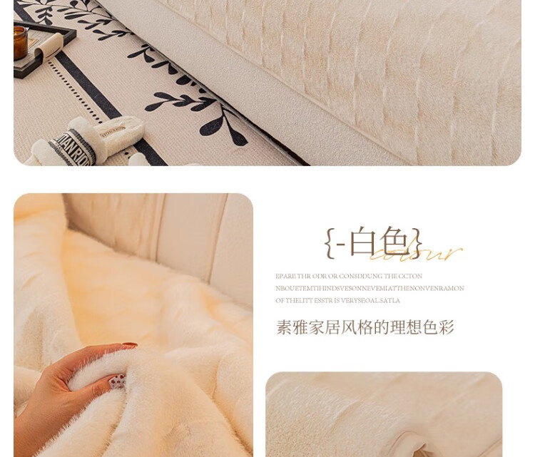 无印良品【防滑不掉毛】水貂绒沙发垫冬季加厚2025新款坐垫毛绒皮沙发座垫 双色水貂绒-米白【奢华皮草级水貂绒 加厚保暖不掉毛】 70*150cm (双人位)