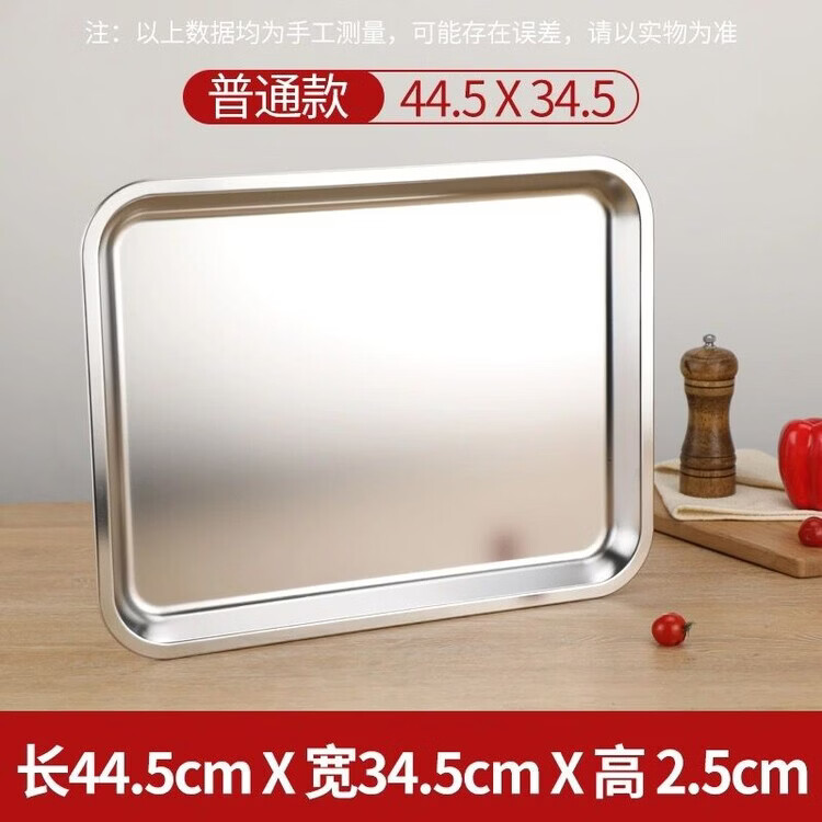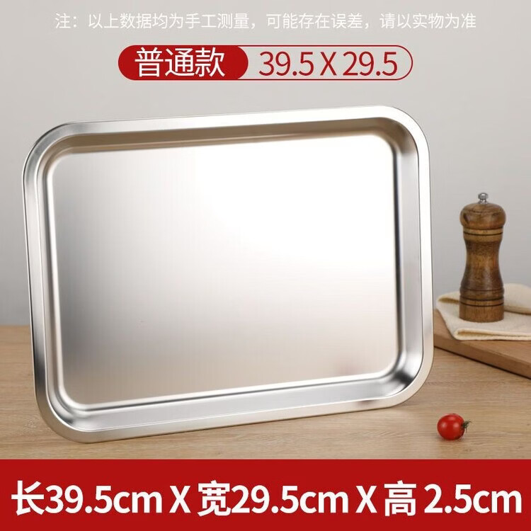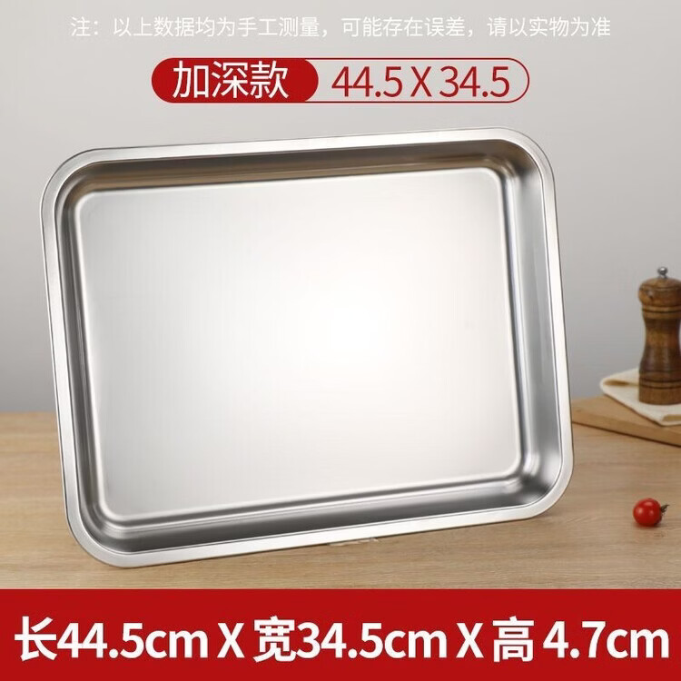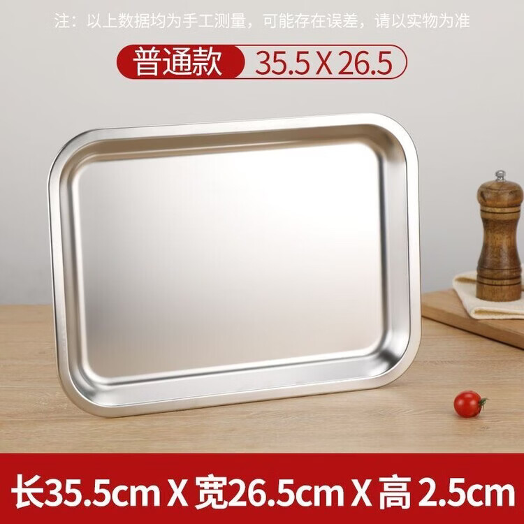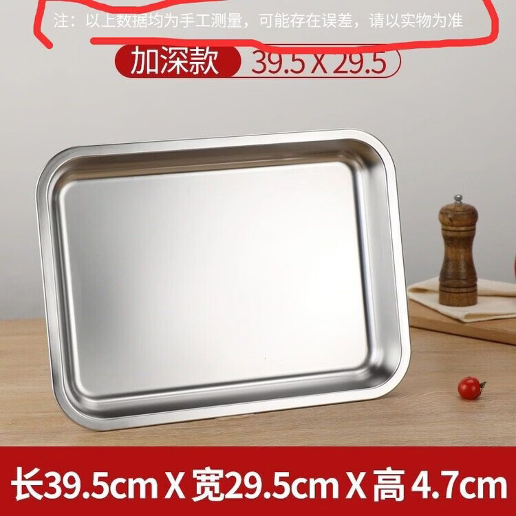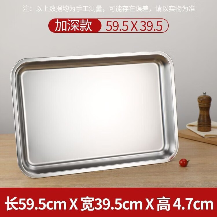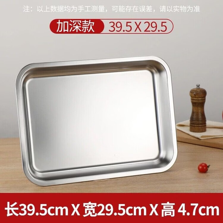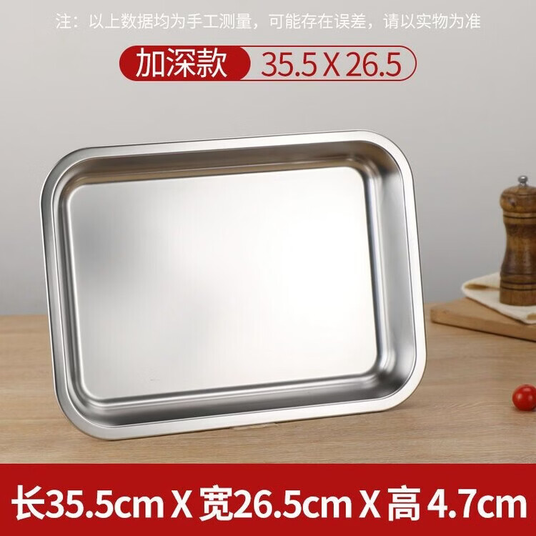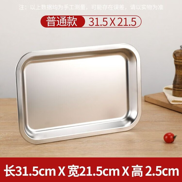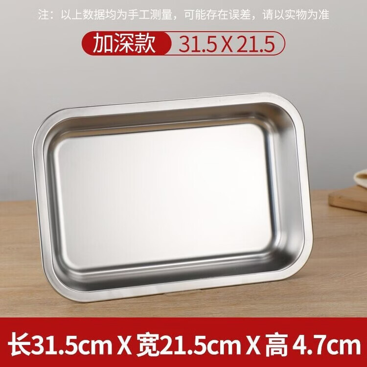 咏夏304不锈钢托盘方盘长方形蒸饭盘自助餐盘平底盘长方盘深盘浅盘 304特厚规格【32-22-2】 平底